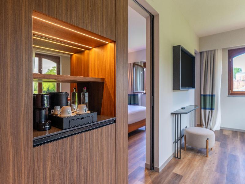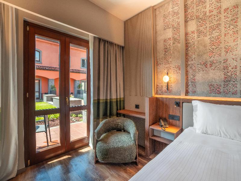 Este hotel se encuentra al pie del volcán, dentro del Parque Natural del Etna. Ofrece vistas inolvidables y el parque que lo rodea está repleto de viñedos, huertos y vegetación típica mediterránea, con hermosas playas y antiguas ruinas griegas cerca. Se sitúa a 1, 9 km del centro de Linguaglossa, a 7 km de Castiglione di Sicilia y a 10 km de Gole dell'Alcantara. La playa de Fondachello y Randazzo se encuentran a 15 km del hotel, Piano Provenzana a 20 km y Taormina a 25 km. El aeropuerto de Catania está a 50 km y el de Palermo a 200 km. Este encantador hotel de golf y spa es ideal tanto para viajeros de negocios como para turistas y cuenta con un total de 98 habitaciones. Dispone de un campo de golf de 18 hoyos, rodeado de naturaleza, y su ubicación a 650 m sobre el nivel del mar le permite disfrutar de una temperatura agradable y fresca durante todo el año. Las instalaciones que se ofrecen a los huéspedes en este establecimiento con aire acondicionado incluyen un vestíbulo con recepción 24 horas y servicio de salida, caja fuerte, guardarropa y ascensor. Hay un quiosco de prensa, una peluquería, una sala de televisión, una cafetería y un bar. Los huéspedes tienen a su disposición salas de conferencias, servicio de habitaciones y servicio de lavandería. Hay un aparcamiento y un garaje cubierto para quienes lleguen en coche. También es posible alquilar bicicletas en el hotel. Todas las habitaciones cuentan con baño privado con bañera y secador de pelo, y cama doble. Están equipadas con teléfono de línea directa, TV por cable/satélite, acceso a internet, caja fuerte y minibar. Además, todas las habitaciones disponen de balcón o terraza.