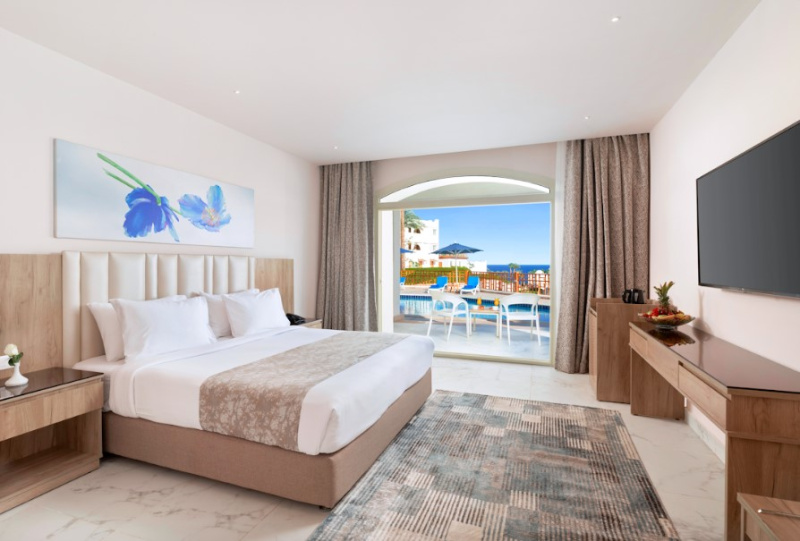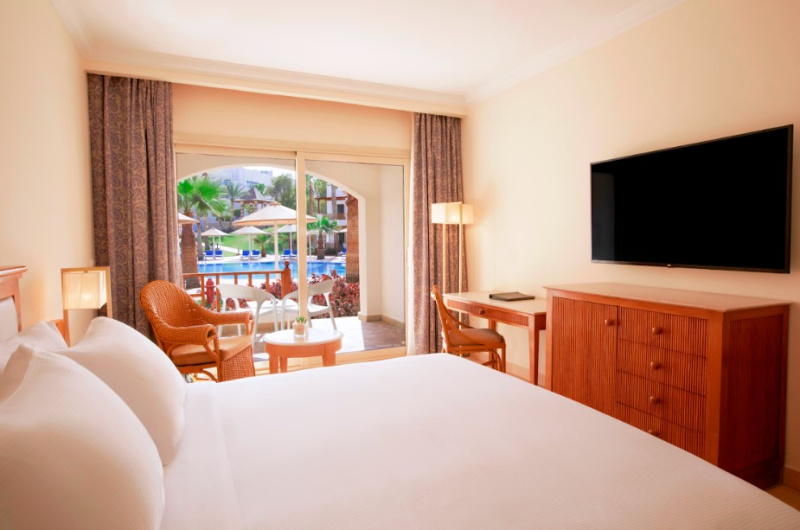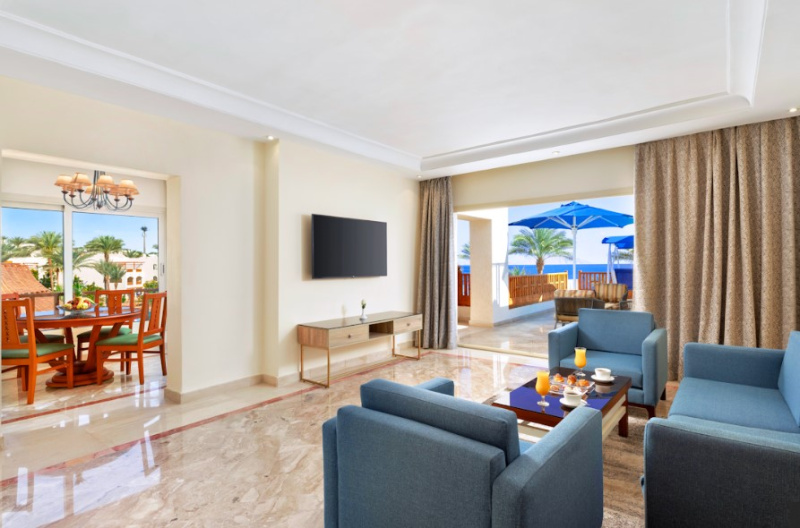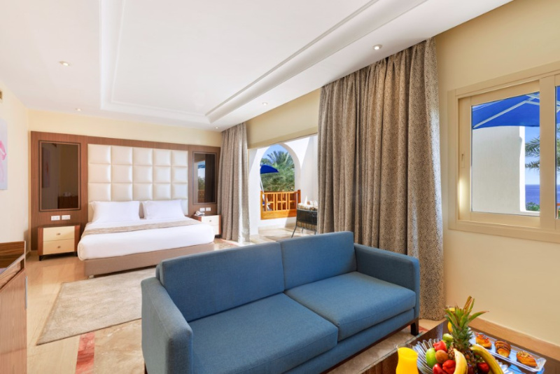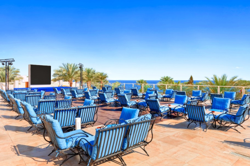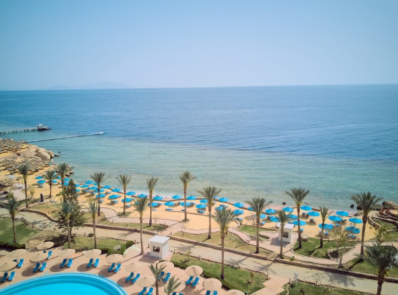 El hotel ofrece vistas al Mar Rojo y a la isla Tiran, esta a solo 18 Km del aeropuerto, a 2 Km del centro de la ciudad Sharm El Sheik y a 10 Km de la bahia de Naama.Este hotel ofrece un caracter especial gracias a su esplendida ubicacion frente al mar y su arquitectura. Cuenta con un total de 218 habitaciones, varios restaurantes y bares, servicio de habitaciones disponible las 24 horas y patio de recreo y club para ninos.Las comodas habitaciones estan amuebladas con mucho gusto y ofrecen vistas al mar, a la piscina o al jardin desde un balcon o terraza. Cuentan ademas con TV via satelite, mini nevera y caja fuerte.Se ofrece la oportunidad de practicar una gran variedad de deportes y actividades de ocio, como natacion en la piscina, waterpolo, voleiplaya, golf, mini golf, ping pong o entrenamiento en el gimnasio. Las actividades-instalaciones con sobrecargo son: canchas de tenis con iluminacion, sauna, hammam, servicio de masajes y jacuzzi. El hotel cuenta con su propio club de submarinismo en la playa. Por la noche se ofrece un programa regular de musica en vivo, espectaculos con baile y folclore.El restaurante Caravanserai es el restaurante principal del hotel y sirve comidas en buffet ademas de ofrecer vistas panoramicas. El restaurante Seppia es un restaurante a la carta con zona interior y al aire libre y ofrece cocina libanesa e internacional. Tambien esta disponible el bar de la piscina, el bar del vestibulo y el bar Shisha, donde los huespedes podran disponer de shishas en un ambiente oriental. Ademas, hay un divertido pub que ofrece un programa especial de entretenimiento.