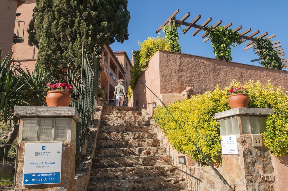 Pierre and Vacances Residence Villa Romana consiste en 3 edificios situado a lo alto de una colina, cerca de Tossa de Mar. El hotel dispone de una pequeña piscina exterior, caja fuerte (en la recepción y con cargo extra) y servicio de lavandería (cargo extra). Los apartamentos están equipados con A/C, cocina equipada (2 calienta platos, microondas, nevera, platos y otros utensilios de cocina), TV y balcón o terraza.Limpieza de apartamentos cada 7 días, incluyendo cambio de toallas y sábanas, sin cocina y/o lavado de vajilla. Se le requerirá el pago de 200 euros a la llegada, el cual le será devuelto a la salida al final de la estancia.***Horarios de recepción limitado en invierno (Noviembre-Avril): Lunes, Martes, Jueves, Viernes: 10h - 12h und 17h - 19h, Miercoles CERRADO, Sábado 9h - 12h und 15h - 20h, Domingo 10h - 12h En caso de llegada fuera de estos horarios, por favor contacta el hotel antes de la llegada.**** Tenga en cuenta que algunas de las instalaciones anteriores pueden estar cerradas debido a la temporada/condiciones climáticas.Dirección: Calle Villa Romana 11, 17320 Tossa de Mar, Spain