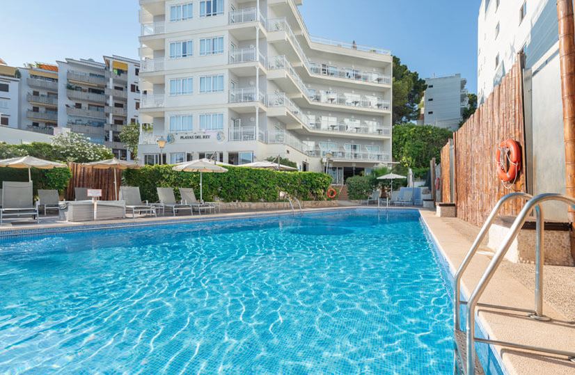 Playas del Rey Hotel es el espacio perfecto para disfrutar de unas vacaciones en Mallorca envueltos en la más pura esencia del mediterráneo. A pocos metros del centro de Santa Ponsa y de una de las playas más populares de Mallorca. Nuestra piscina exterior es ideal para refrescarse durante los días más calurosos del año. Además es ideal para el baño de los más pequeños mientras que tu disfrutas de un momento de relax y tranquilidad sin perderlos de vista desde la terraza. Las habitaciones con decoración elegante y funcional, especialmente diseñada para el disfrute de la estancia vacacional. **A partir del 1 de enero de 2026, el desayuno y la cena se servirán en el restaurante "Mercader del Mar", ubicado a aproximadamente 100 metros del hotel.**