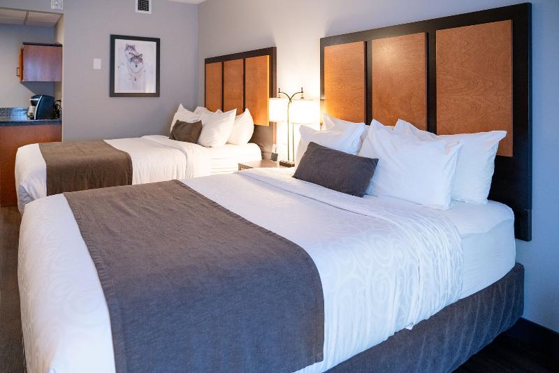 Ubicado en las Montañas Rocosas Canadienses con una vista espectacular de las Three Sisters Mountains, el Canmore Pocaterra Inn & Waterslide es una opción inteligente para unas vacaciones o un retiro de negocios. Nuestro hotel en Canmore, AB, ofrece alojamiento que admite mascotas y todas las comodidades del hogar. Duerme plácidamente en una cama cómoda y despiértate con un desayuno caliente de cortesía. Mantente conectado con internet de alta velocidad gratis y mira tus programas favoritos en televisores de pantalla plana con cable premium. Todas nuestras habitaciones tienen refrigeradores, microondas y cafeteras. Relájate en la piscina cubierta y el tobogán acuático o haz ejercicio en el moderno gimnasio. Consiéntete con una mejora de categoría y disfruta de una chimenea, una cama con dosel y un baño privado equipado con una bañera de hidromasaje para dos personas. Los viajeros corporativos aprecian nuestro práctico centro de negocios y el espacio flexible para reuniones, perfecto para conferencias, sesiones de trabajo en equipo o banquetes. Deja que nos encarguemos de todos los detalles, desde el catering hasta las necesidades audiovisuales y las reservas de grupo. Encontrarás una variedad de restaurantes tentadores cerca. Elige entre comida neo-canadiense, comida de pub, carnes, comida saludable, alta cocina y varios tipos de cocina étnica. Nuestra propiedad libre de humo ofrece una ubicación ideal para los amantes del aire libre y los turistas que desean relajarse y disfrutar del paisaje. El senderismo y los deportes acuáticos están cerca y hay cuatro estaciones de esquí importantes a menos de una hora de distancia. El cercano Nordic Centre es un lugar popular para el esquí de fondo y el ciclismo de montaña. Muchos de nuestros huéspedes que regresan están en la ciudad para el Canmore Folk Fest y los Canmore Highland Games. También encontrarás muchos campos de golf en la región.