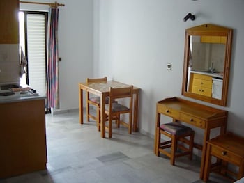 Los apartamentos Popi están situados justo al lado de la arenosa playa de Platanias (40 m) y a 100 metros del centro de este popular complejo turístico. Platanias es una zona de playa animada con sus típicas casas colocadas sobre la colina. Existe una genuina taberna griega en frente de los apartamentos y un pequeño mercado cercano.Los apartamentos están equipados con baño (ducha/wc), salón comedor con dos sofás, pequeña cocina, patio (en los de la planta baja) o balcón (en los de el primer piso) y aire acondicionado (con cargo adicional).Nota: El aire acondicionado funciona de Junio a Septiembre con cargo adicional. **El alojamiento para la 3ª y la 4ª persona será en el sofá cama de la sala de estar.**Nota para las llegadas tardías: nota en recepción, la llave estará en la puerta.Dirección: 73100 Platanias - Chania, Creta, Grecia.