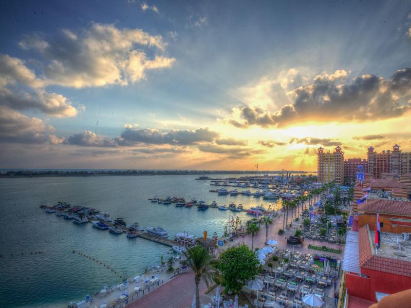 El Porto Marina Resort and Spa, ubicado en la Costa Norte de Egipto, a 90 km de Alejandría, ofrece impresionantes vistas al mar Mediterráneo. Ideal para familias, el resort cuenta con cuatro piscinas, una playa privada y acceso a la exclusiva White Paradise Island. Los huéspedes pueden disfrutar de una variedad de tratamientos en el spa del hotel, mientras que los niños se divierten en los clubes infantiles según sus edades.