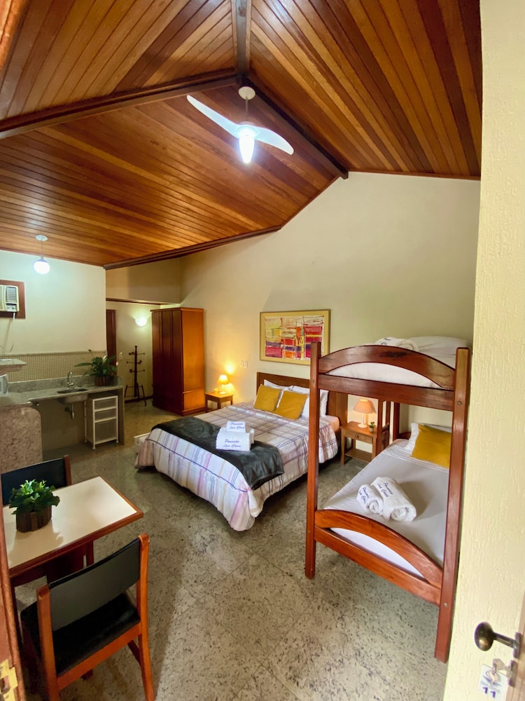 Si te alojas en Pousada Lua Cheia, en Búzios (Geribá), podrás llegar fácilmente a Lago Geriba y a Playa Geriba. Esta posada se encuentra cerca de Playa Ferradurinha y de Playa de Lagoinha.Habitaciones Te sentirás como en tu propia casa en una de las 16 habitaciones con aire acondicionado, minibar y televisor de pantalla plana. La conexión a Internet wifi gratis te mantendrá en contacto con los tuyos; también podrás ver tu programa favorito en el televisor con canales por cable. El cuarto de baño está provisto de ducha y secador de pelo. Las comodidades incluyen ventilador de techo, además de un servicio de limpieza disponible todos los días.Servicios Elige entre las numerosas instalaciones recreativas ofrecidas, que incluyen piscina al aire libre y baño turco. Se ofrece además conexión a Internet wifi gratis, televisor en zonas comunes y asistencia turística y para la compra de entradas.Para comer Tienes un restaurante a tu disposición para comer algo en Pousada Lua Cheia.Servicios de negocios y otros Tendrás servicio de recepción 24 horas, atención multilingüe y caja fuerte en recepción a tu disposición. Hay un aparcamiento sin asistencia gratuito disponible.