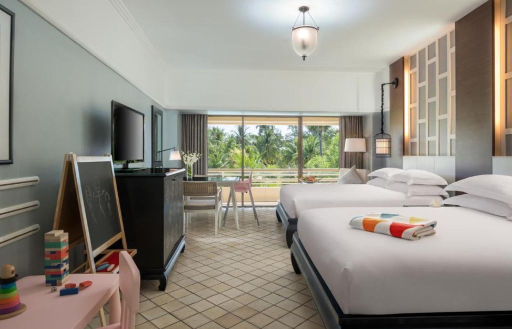Todas las amplias habitaciones cuentan con un balcón privado con impresionantes vistas del mar de Andamán, los jardines tropicales o la laguna de lotos. Las habitaciones están equipadas con una amplia estación de trabajo, un cómodo sofá, un minibar y una caja fuerte. También disponen de TV de pantalla plana y baño elegante con ducha a ras de suelo y bañera independientes.