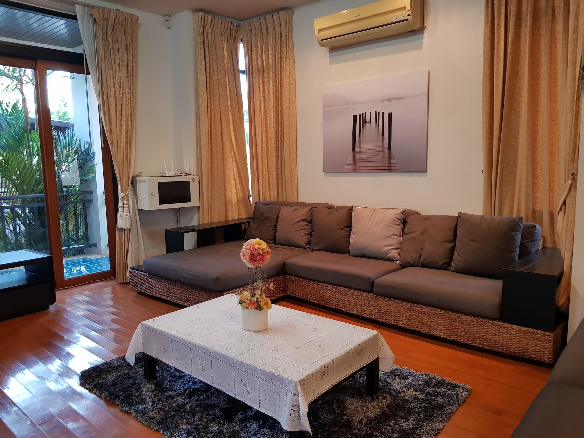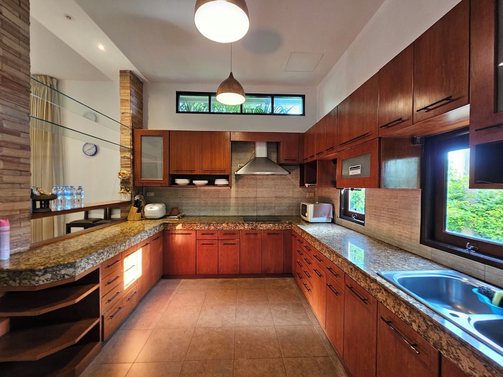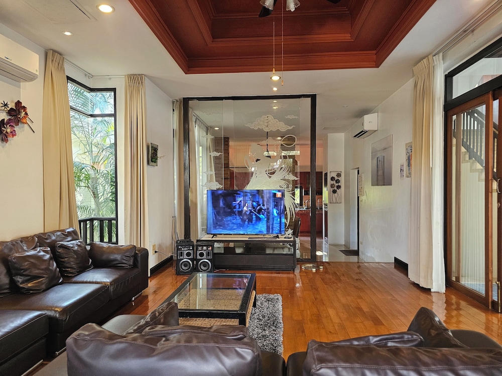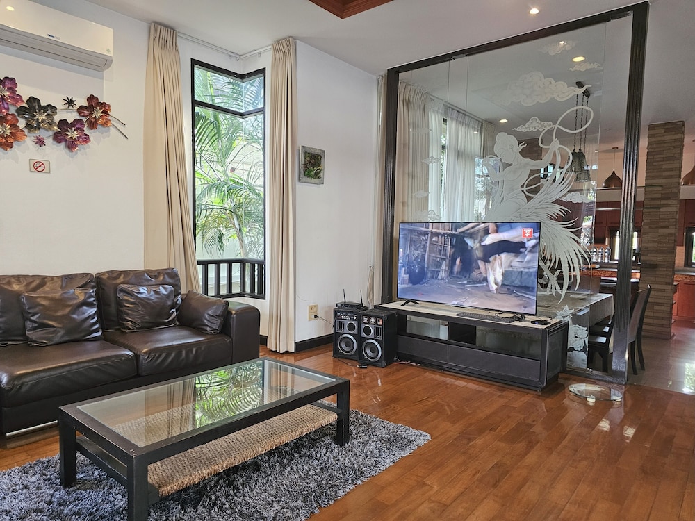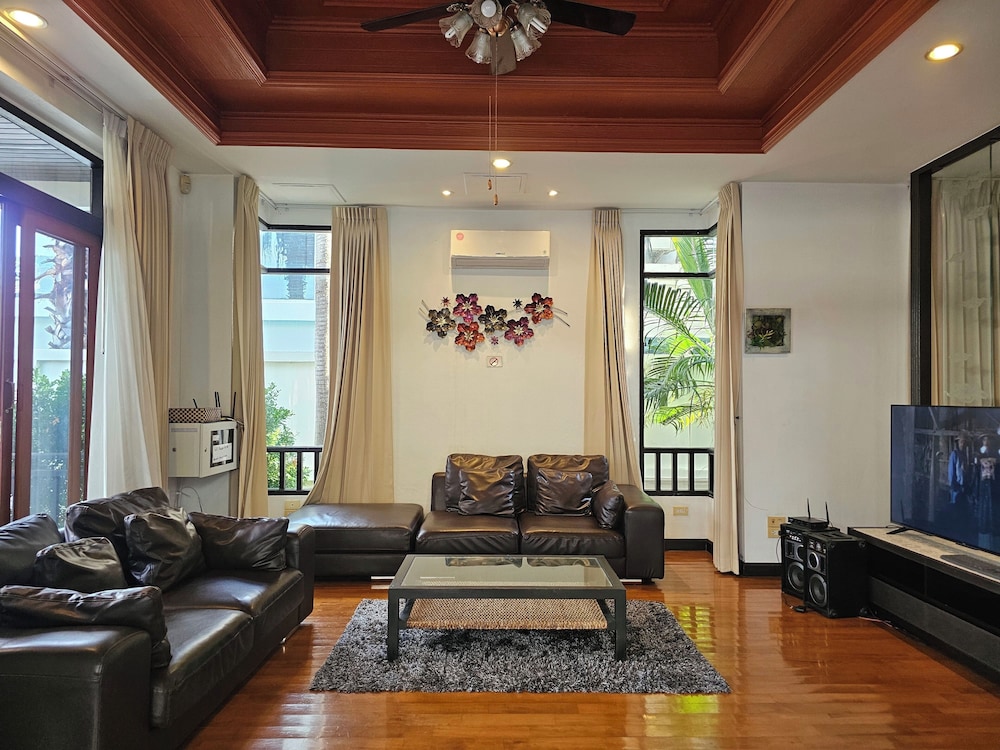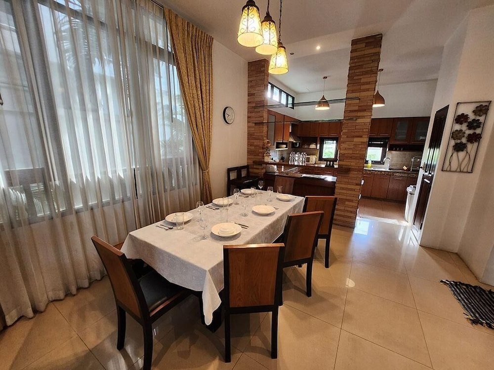 Si eliges esta villa en Pattaya, estarás a pocos minutos de Mundo Subacuático Pattaya y Mercado de Thepprasit. Esta villa se encuentra cerca de Outlet Mall Pattaya y de Centro comercial Big C South Pattaya. Regálate una estancia fantástica en esta villa, cuya decoración es de lo más original y donde tendrás una cocina, perfectamente equipada con frigorífico grande y placa de cocina. Y, si te apetece tomar el aire, puedes salir a su balcón o patio, que es de uso privado. Entre los servicios de ocio, te alegrará encontrarte un televisor de pantalla plana que te permitirá acceder a multitud de canales por satélite, así como conexión a Internet wifi gratis para mantenerte al día de tus cosas. Tendrás un microondas y un hervidor eléctrico. El servicio de limpieza se ofrece a petición. Con una terraza donde descansar y comodidades como conexión a Internet wifi gratis, ¡no te faltará de nada! Hay un aparcamiento sin asistencia gratuito disponible.