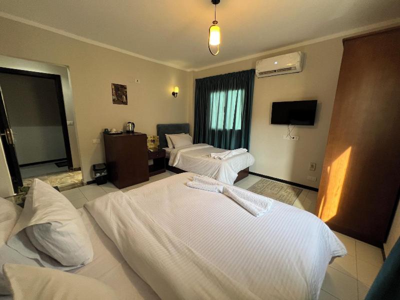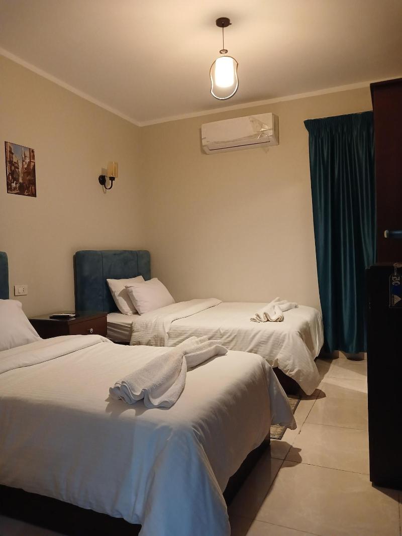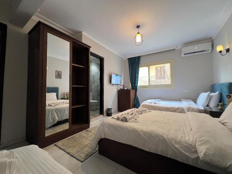 Disfruta de un desayuno completo gratuito todos los días de 7:00 a 11:00 en la cafetería del hotel. Comparte con otros huéspedes en la recepción gratuita diaria o relájate en el bar/salón. Este hotel ofrece 5 habitaciones equipadas con televisores LCD, camas Select Comfort y televisión por satélite. Los baños cuentan con bañera y ducha separadas, además de secador de pelo. La comodidad es clave con el registro de entrada/salida exprés y una recepción 24 horas. Hay un servicio de transporte de ida y vuelta al aeropuerto disponible (con suplemento) y aparcamiento gratuito. Ubicado en el distrito de Al Haram en Guiza, Pyramids Way Inn está a poca distancia en coche del complejo de las pirámides de Guiza, la pirámide de Keops, la Gran Esfinge y el Gran Museo Egipcio. El aeropuerto recomendado es el Aeropuerto Internacional de El Cairo (CAI).