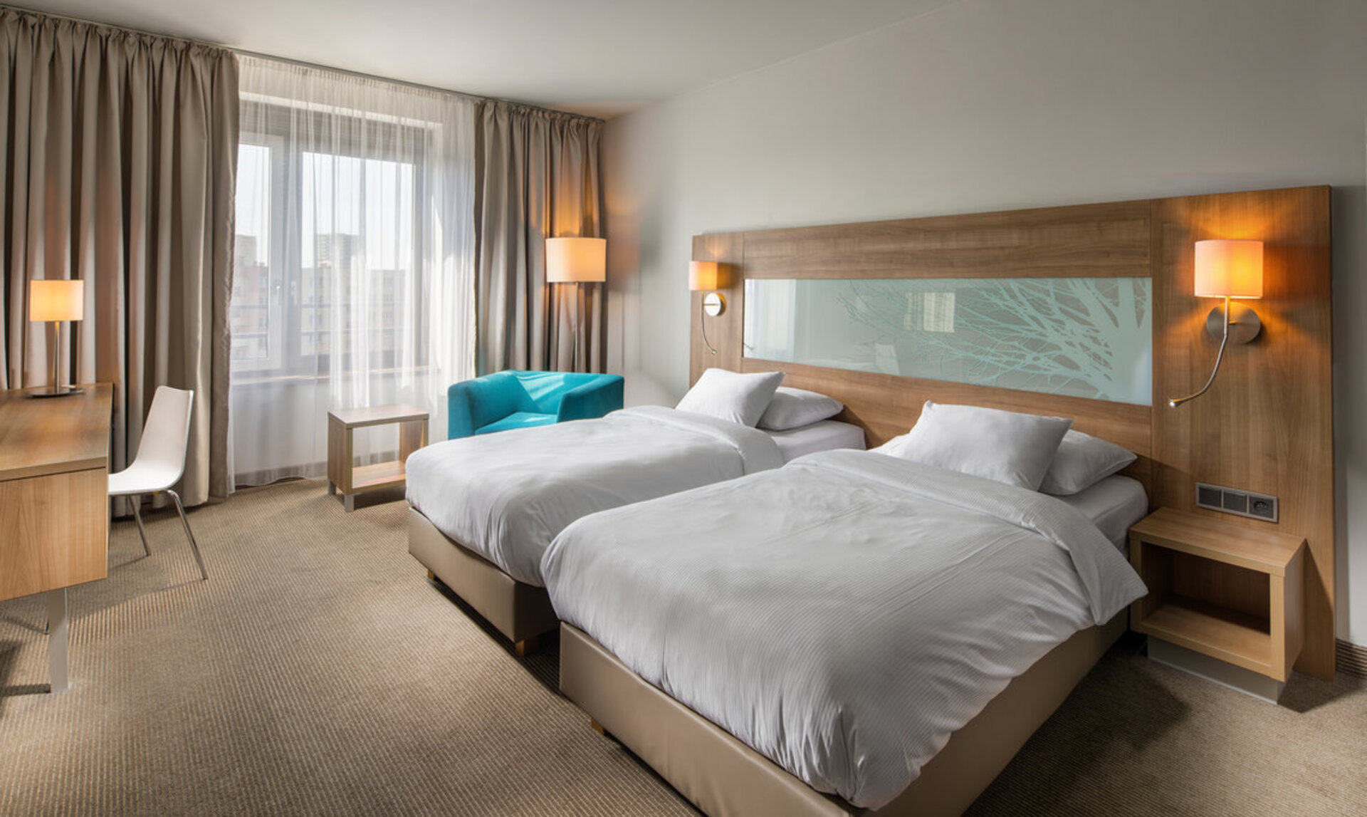 El alojamiento Quality Hotel Ostrava City está a unos 1,5 km de los bares y restaurantes más cercanos. La distancia hasta el aeropuerto es de unos 24 km. Como opciones de entretenimiento, hay en las inmediaciones un cine (a unos 1,8 km). El hotel con aire acondicionado cuenta con una recepción abierta las 24 horas del día, un bar en el vestíbulo, conexión WiFi, conexión a Internet, 2 ascensores, un botiquín, aparcamiento (plazas limitadas) así como una sala de televisión con SAT-TV. Puede guardar sus objetos de valor en la caja fuerte del hotel. Además, el hotel videovigilado las 24 horas. Sillas para niños pueden ser proporcionados. Para su ropa, hay a su disposición un servicio de lavandería y planchado. Equipo de planchado también puede ser alquilado en el hotel. Para congresos y otras reuniones de negocios, el hotel ofrece una zona de conferencias con un total de 400 asientos, impresora, retroproyector, conexión a Internet así como catering. Como animales de compañía solo los perros están permitidos en el hotel (bajo petición). Para quienes disfrutan de su viaje de novios, el hotel tiene preparadas algunas ofertas especiales como, por ejemplo, una habitación decorada de forma romántica, champán, vino espumoso, una cesta de frutas o flores sobre la cama. En su hotel de vacaciones se da mucho valor a la sostenibilidad. A este propósito responden, entre otros, un contenedor de reciclaje propio del hotel, la provisión de expendedores de jabón y champú y alimentos orgánicos. Se acepta Visa como método de pago. Gracias a sus instalaciones sin barreras, el hotel también es adecuado para personas en silla de ruedas. Comidas Por la mañana se sirve un desayuno de bufé. Para la cena se sirven platos de bufé, de menú o a la carta con entrantes, ensaladas y postres. Al reservar todo incluido se incluye agua (24h) así como café y té (24h). Del disfrute culinario se ocupan un restaurante de bufé (comidas sin gluten y también vegetarianas) y una cafetería. La carta de bebidas del hotel incluye agua, refrescos, café y té, cerveza y vino. Distancias