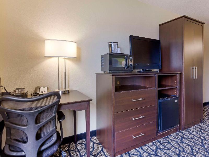 Al alojarte en Quality Inn en Oshkosh, estarás en el distrito financiero, a 3 minutos en coche del EAA AirVenture Museum y a 6 minutos de la University of Wisconsin-Oshkosh. Este hotel se encuentra a 4 km de Ford Festival Park y a 36, 2 km del Fox River Mall. Aprovecha las opciones de recreación, como una piscina cubierta, u otras comodidades, que incluyen acceso inalámbrico a internet de cortesía y una chimenea en el vestíbulo. Entre las comodidades adicionales de este hotel se incluyen el uso gratuito de un gimnasio cercano y una máquina expendedora. Tendrás un centro de negocios abierto las 24 horas, periódicos gratuitos en el vestíbulo y servicio de tintorería/lavandería a tu disposición. Hay un aparcamiento sin asistencia gratuito disponible. Se sirve un desayuno bufé gratuito entre semana de 5:30 a 9:00. Siéntete como en casa en una de las 64 habitaciones con frigorífico y microondas. La televisión de pantalla plana con canales por cable te ofrece entretenimiento, mientras que el acceso inalámbrico a internet de cortesía te mantiene conectado. El baño privado con ducha y bañera combinadas está provisto de artículos de higiene personal gratuitos y secadores de pelo. Las comodidades incluyen caja fuerte, escritorio y teléfono con llamadas locales gratuitas.