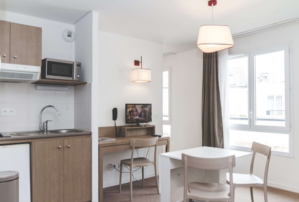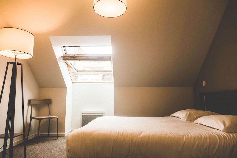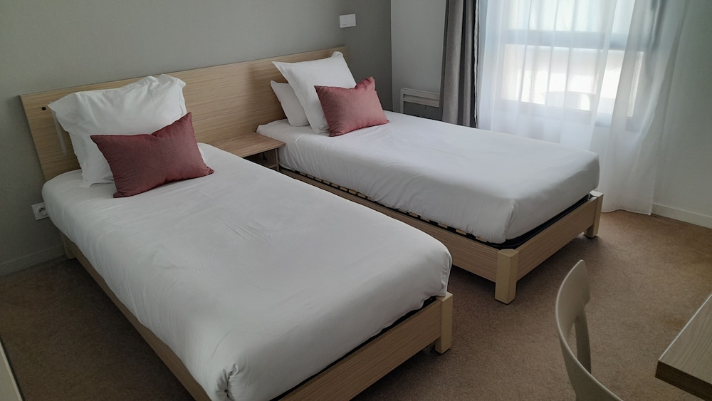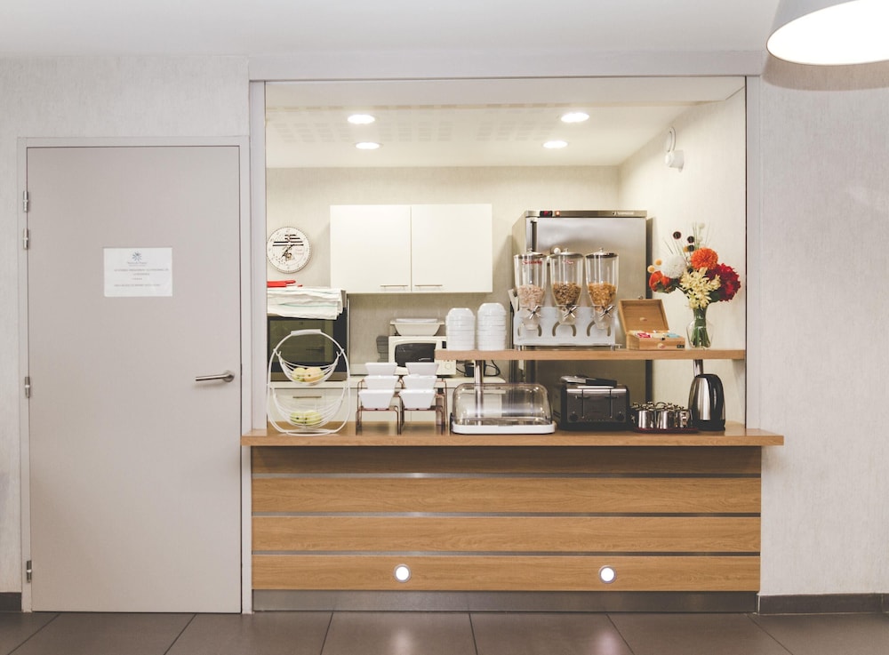 Appart'Hotel Quimper, en Quimper, se sitúa a pocos minutos de Teatro Cornouaille y Musee des Beaux-Arts. Esta residencia se encuentra cerca de Catedral de Quimper y de Museo regional bretón.Habitaciones Reserva una de las 95 habitaciones con cocina básica, frigorífico/congelador grande y microondas, y disfruta de una estancia inolvidable. La conexión a Internet por cable y wifi de pago te permite comunicarte con los tuyos, y en tus ratos libres tendrás un televisor de pantalla plana para entretenerte. Las comodidades incluyen teléfono y escritorio, además de un servicio de limpieza disponible cada semana.Servicios Con una terraza donde descansar y comodidades como conexión a Internet wifi gratis, ¡no te faltará de nada!Para comer Entre semana se sirve un desayuno bufé de pago.Servicios de negocios y otros Tendrás conexión a Internet de alta velocidad por cable (gratuita), centro de negocios y periódicos gratuitos en el vestíbulo a tu disposición. Hay un aparcamiento sin asistencia (de pago) disponible.