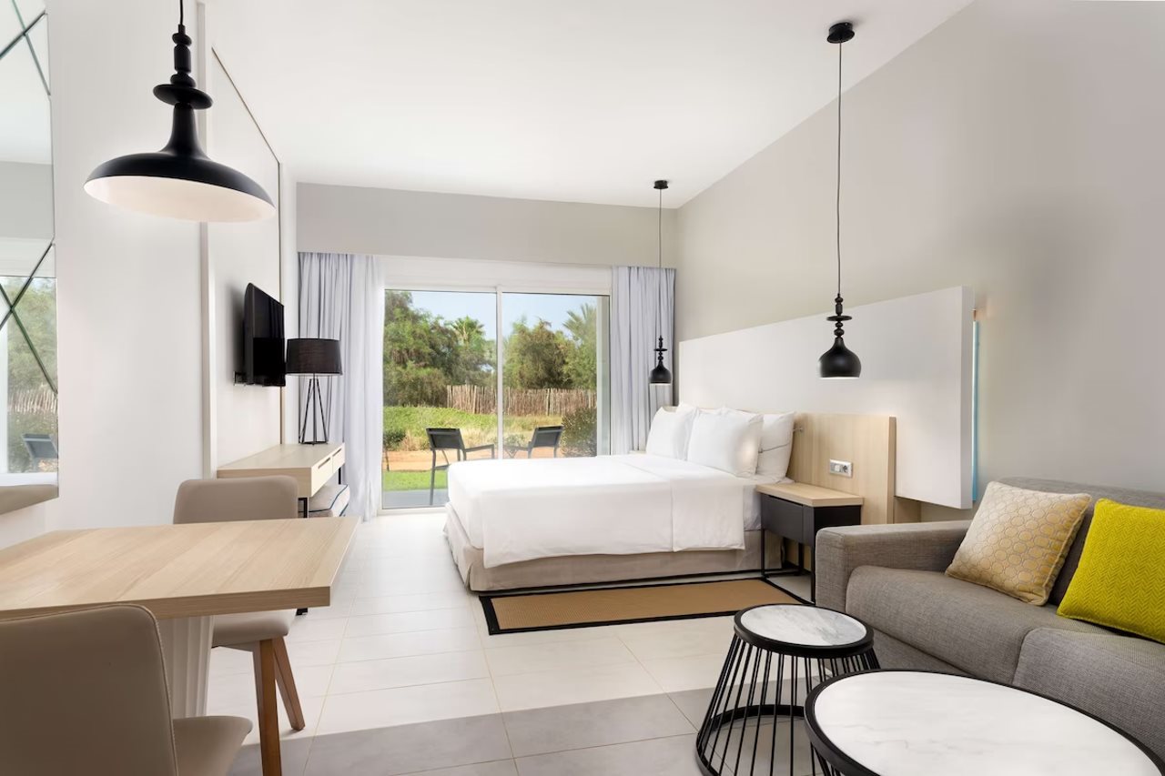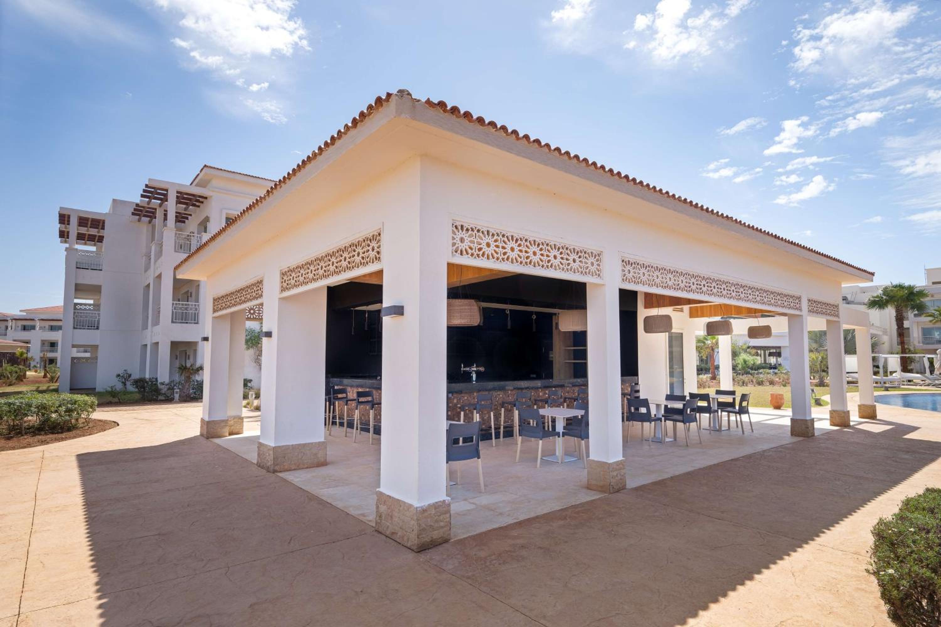 Facilities and services include Babysitting services, Bar, Car parking, Concierge facilities, Dry Cleaning, Free Wi-Fi, Multilingual staff, Outdoor pool(s), Restaurant, Shuttle services (extra charge) and Wheelchair access.All room features Balcony/terrace, Cable/satellite TV, Connecting rooms available, Cots on request, Individual heating, Kitchen(ette) and Wi-Fi - Free.Address: station balneaire Saidia, 63600, Saidia, Morocco.