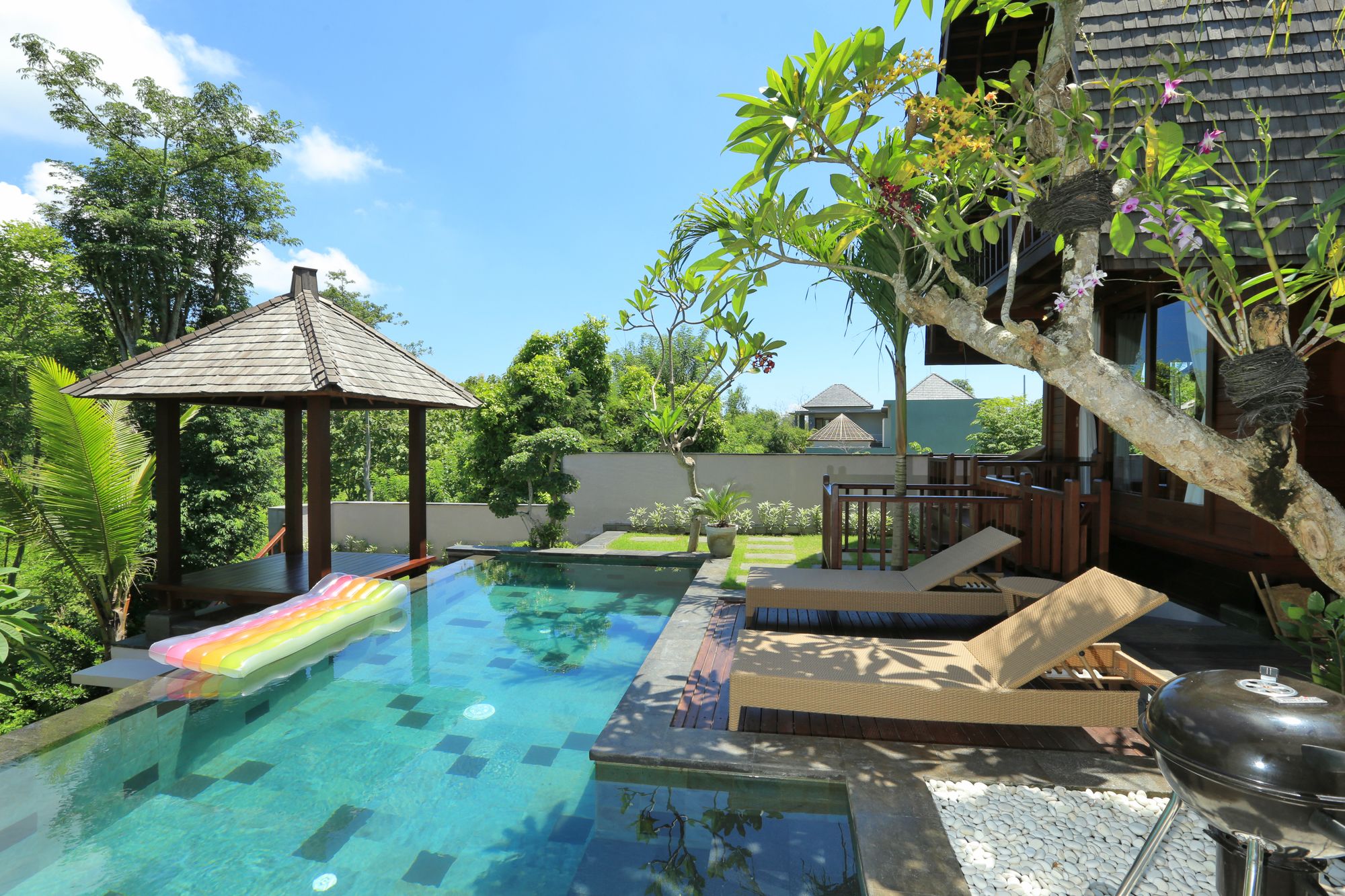 With a stay at this villa in Jimbaran (Kuta Selatan), you'll be within a 15-minute drive of Samasta Lifestyle Village and Tegal Wangi Beach. This villa is 8 mi (12.9 km) from Kuta Beach and 7.8 mi (12.6 km) from Tuban Beach. Make yourself comfortable in this air-conditioned villa, featuring a kitchenette with a refrigerator and a stovetop. There's a private balcony or patio. A flat-screen television with cable programming provides entertainment, while complimentary wireless Internet access keeps you connected. Conveniences include a desk and complimentary newspapers, and housekeeping is provided daily. Take advantage of recreation opportunities such as an outdoor pool or take in the view from a terrace and a garden. Additional amenities at this villa include complimentary wireless Internet access, concierge services, and barbecue grills. Take advantage of the villa's room service (during limited hours). Featured amenities include luggage storage, laundry facilities, and a safe deposit box at the front desk. A roundtrip airport shuttle is complimentary (available 24 hours).