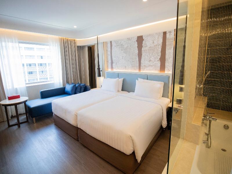 El Ramada Plaza Bangkok Menam Riverside, ubicado a orillas del río Chao Phraya, en el corazón de Bangkok, ofrece una combinación de servicios para negocios y placer. Sus 525 elegantes habitaciones y suites exhiben un diseño tailandés contemporáneo y cuentan con comodidades de nivel internacional, con magníficas vistas al río y a la ciudad. Con una ubicación céntrica, el hotel brinda fácil acceso a los distritos comerciales, de entretenimiento y compras de Bangkok, complementado por un servicio regular de barco gratuito a la estación del Skytrain. El hotel también dispone de 22 salones para eventos, con capacidad para entre 10 y 650 personas, y estacionamiento para 1000 coches, lo que lo convierte en el lugar ideal para reuniones y banquetes. Cinco restaurantes y tres bares ofrecen diversas experiencias culinarias. Los huéspedes pueden relajarse en el lujoso Massira Wellness and Spa, que cuenta con un gimnasio de última generación y una variedad de masajes y tratamientos corporales.
