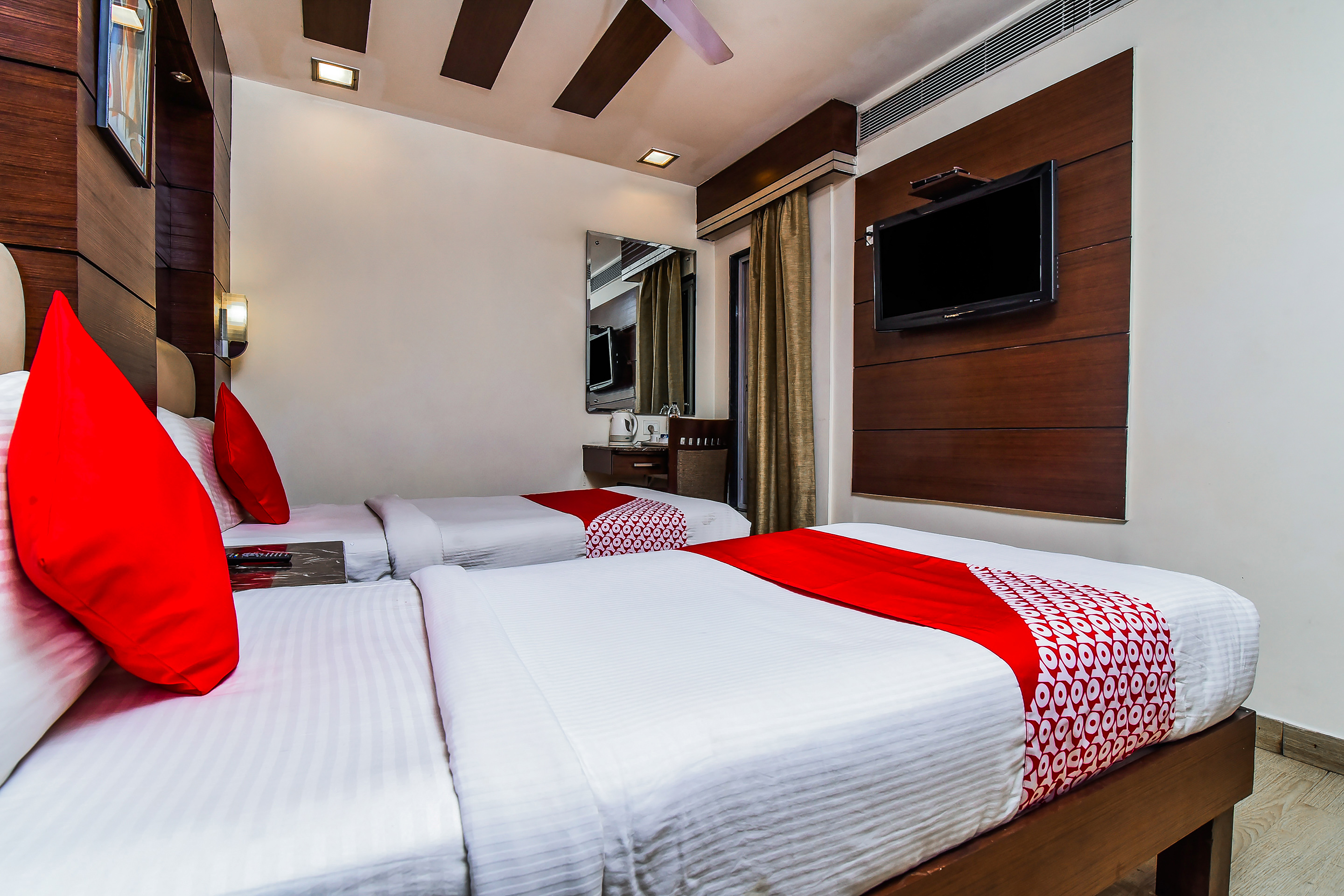 Facilities and services include: 24 h reception, restaurant, bar, room service, laundry service, WiFi in public areas, valet parking(extra charge) elevator and safe deposit box in reception.Guest rooms are equipped with bathroom, air condition, TV and coffee/tea makerAddress: 3/1, East Patel Nagar, Behind Metro Station,110008 New Delhi, India