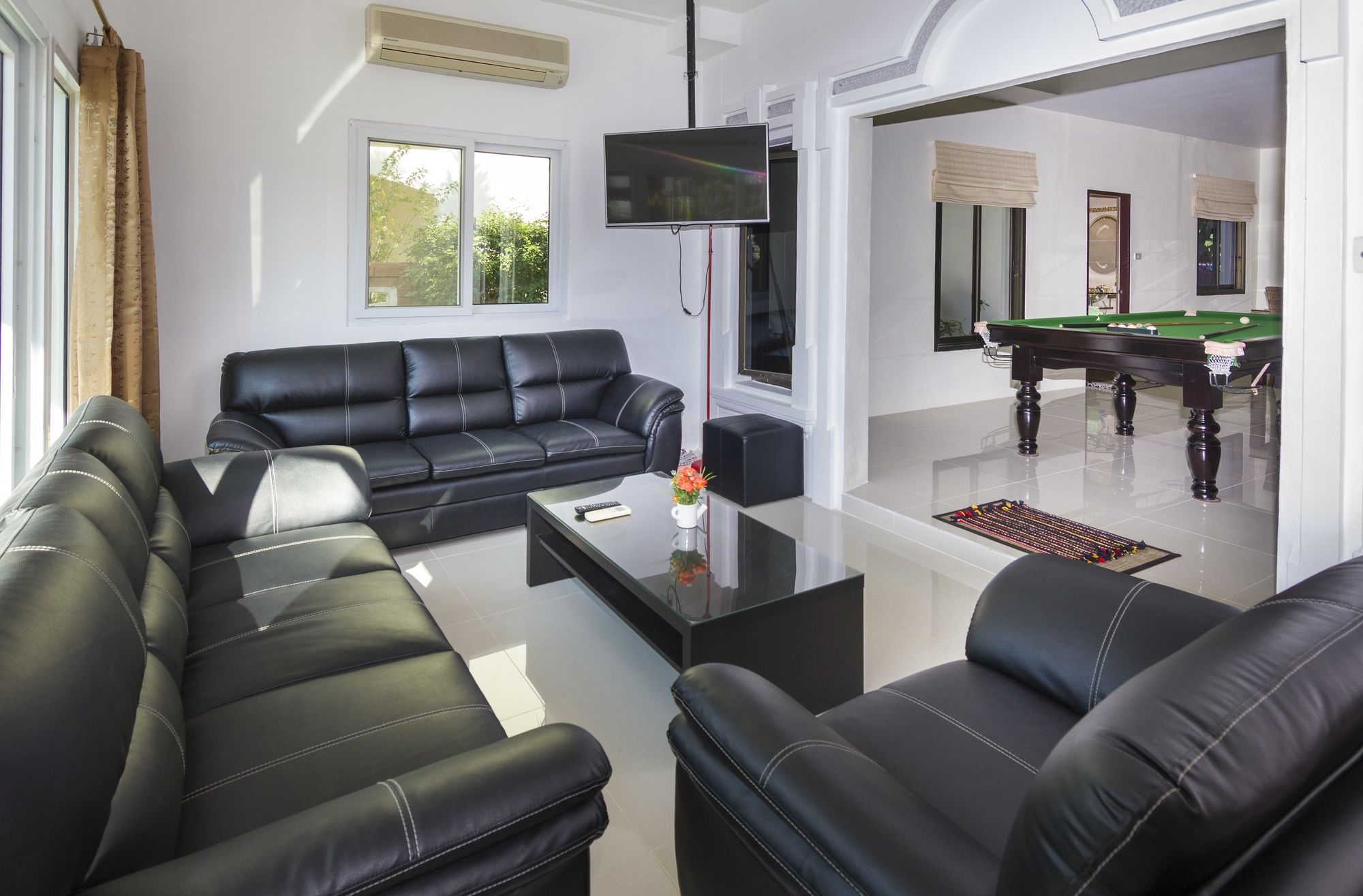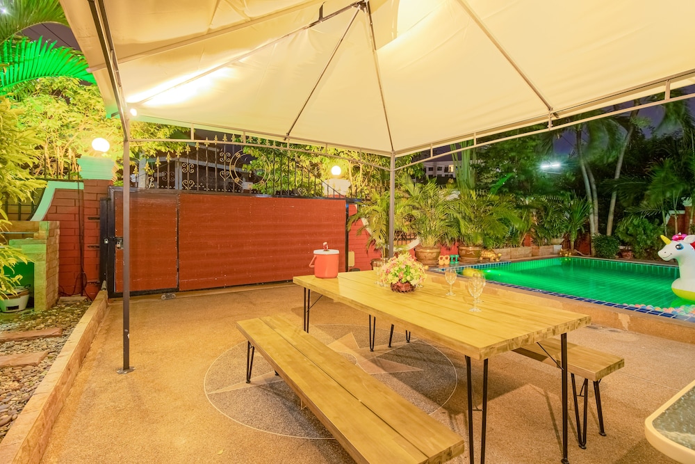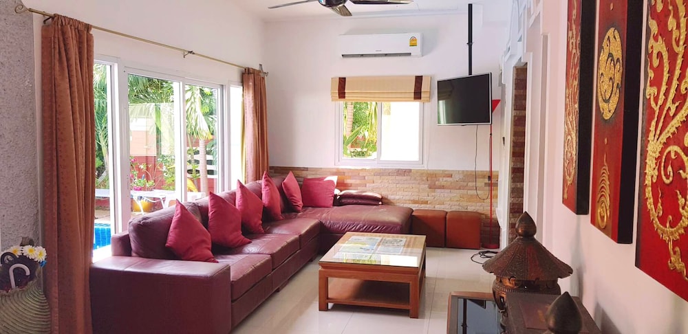 Si te alojas en Ratana Villa Pattaya Holiday House Walking Street, en Pattaya (Thepprasit), estarás a pocos minutos de Montaña Phrabat y Templo del Gran Buda. Esta villa se encuentra cerca de Khao Phra Tamnak y de Mini-Golf Pattaya.Habitaciones Te sentirás como en tu propia casa en una de las habitaciones con aire acondicionado, piscina privada y televisor LCD. Las habitaciones tienen patios privados amueblados. Las cocinas están equipadas con refrigeradores/congeladores grandes, estufas y microondas. Se ofrece programación por cable y reproductores de DVD para su entretenimiento, mientras que el acceso inalámbrico a Internet de cortesía lo mantiene conectado.Servicios Aproveche los convenientes servicios, que incluyen acceso inalámbrico a Internet de cortesía y parrillas para barbacoa.Servicios de negocios y otros Hay estacionamiento sin valet parking gratuito disponible en el lugar.