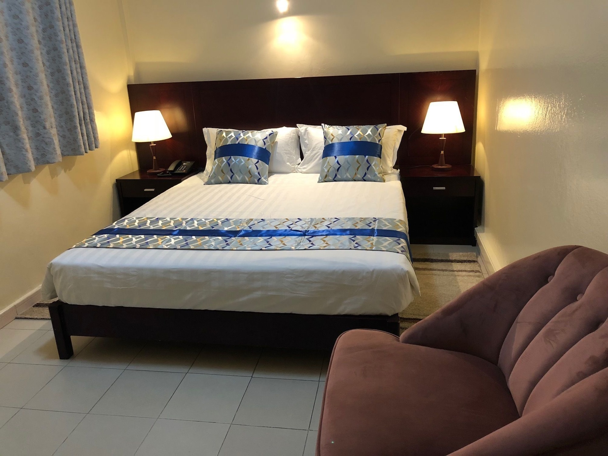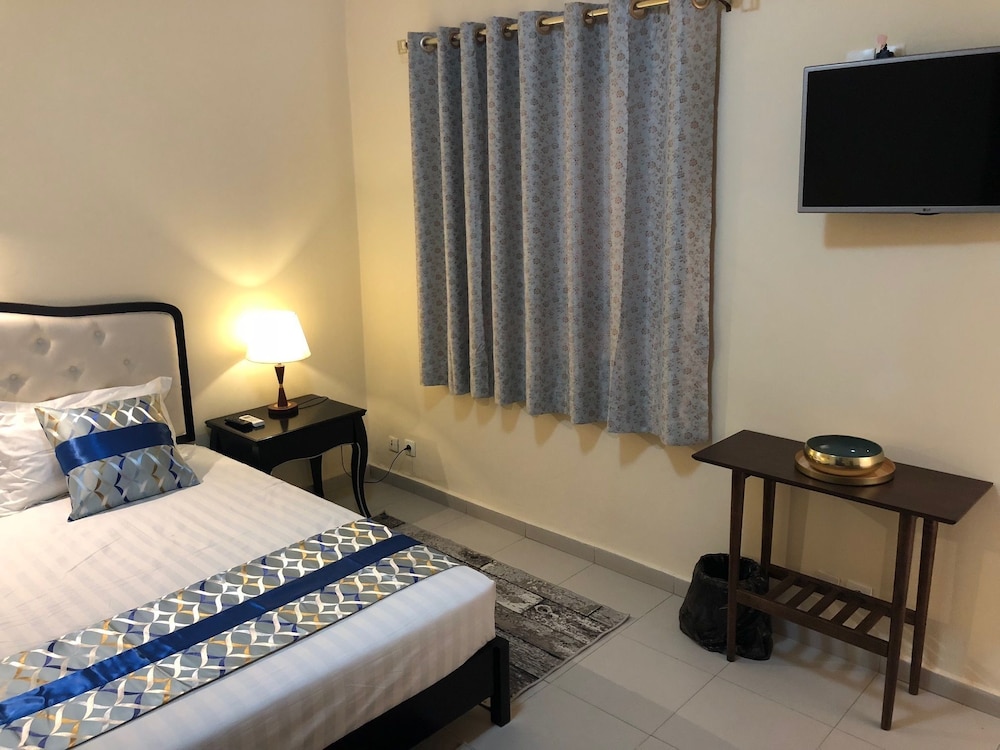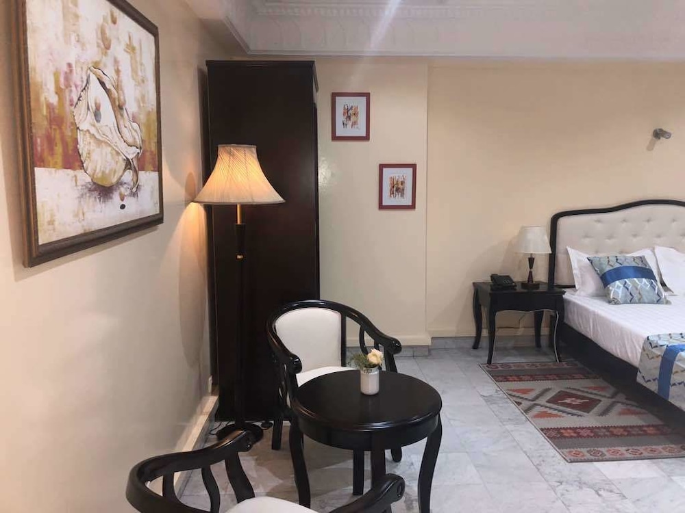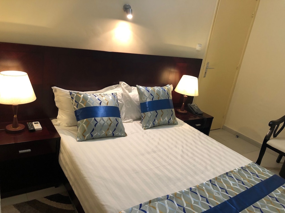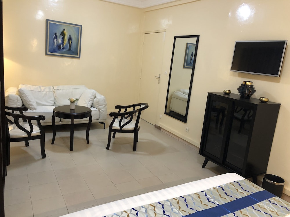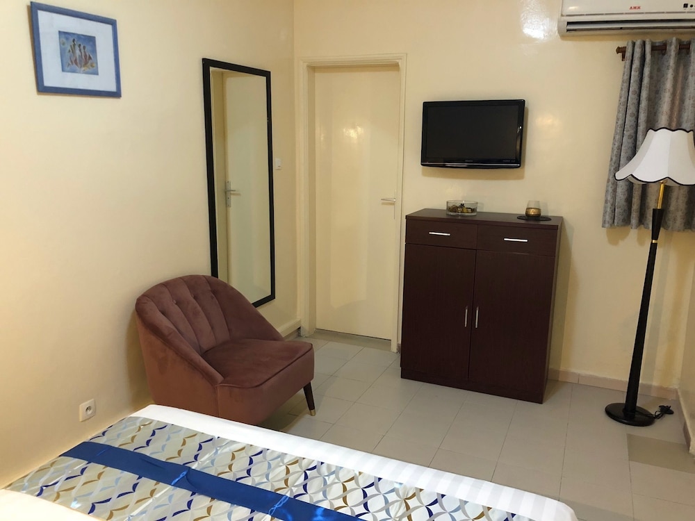Si eliges Résidence De L'Amitié en Dakar, estarás a pocos minutos de Stade Leopold Senghor (estadio) y Village des Arts. Este hotel se encuentra cerca de Parque Hann y de Monumento al Renacimiento Africano. Te sentirás como en tu propia casa en cualquiera de las 17 habitaciones con aire acondicionado y televisor de pantalla plana. La conexión a Internet wifi gratis te mantendrá en contacto con los tuyos; también podrás ver tu programa favorito en el televisor con canales por satélite. El cuarto de baño está provisto de ducha y artículos de higiene personal gratuitos. Entre las comodidades, se incluyen tabla de planchar con plancha, cortinas opacas y teléfono. Con una terraza donde descansar y comodidades como conexión a Internet wifi gratis y asistencia turística (adquisición de entradas), ¡no te faltará de nada! Si tienes hambre, pasa por el restaurante de este hotel, que ofrece almuerzos y cenas, o llama al servicio de habitaciones con horario limitado. Se ofrece un desayuno continental todos los días de 6:30 a 10:30 con un coste adicional. Tendrás un centro de negocios abierto las 24 horas, tintorería o lavandería y un servicio de recepción las 24 horas a tu disposición. Este hotel pone a tu disposición 3 salas de reuniones donde celebrar todo tipo de eventos. Pagando un pequeño suplemento podrás aprovechar prestaciones como servicio de transporte al aeropuerto (ida y vuelta) (disponible las 24 horas) y aparcamiento sin asistencia gratuito.