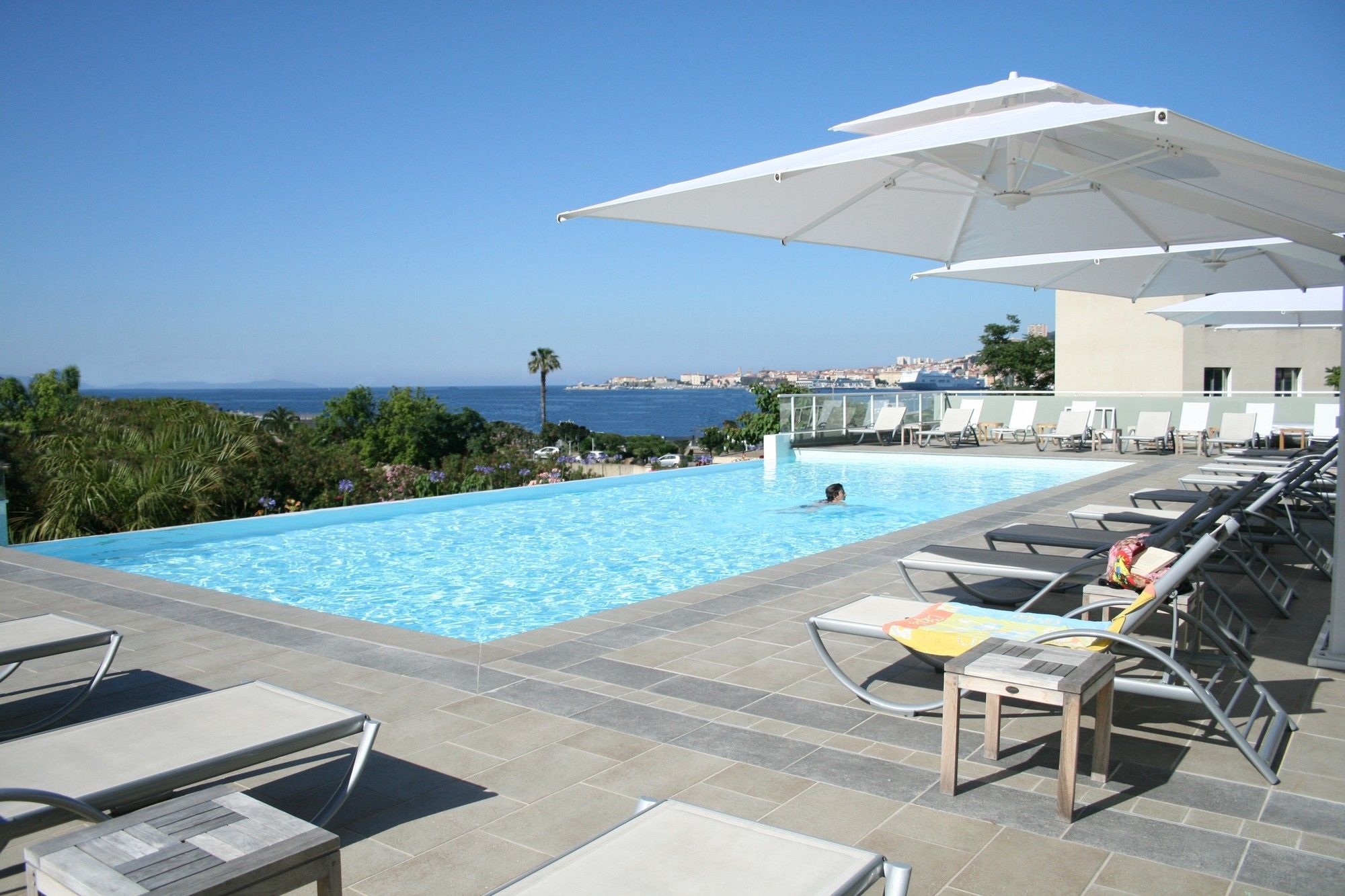 En Résidence de Tourisme Ajaccio Amirauté gozarás de una buena ubicación en Ajaccio, junto al mar, desde donde podrás llegar cómodamente a Puerto deportivo Charlese Ornano y Musée Fesch. Esta residencia de 4 estrellas se encuentra muy cerca de Palais Fesch – Musée des Beaux-Arts y Chapelle Imperiale.Habitaciones Reserva una de las 57 habitaciones climatizadas, todas dotadas de cocina con frigorífico/congelador grande y horno. Las habitaciones disponen de balcón amueblado. La conexión a Internet wifi gratis te permite comunicarte con los tuyos, y en tus ratos libres tendrás un televisor de pantalla plana con canales digitales para entretenerte. Las comodidades incluyen caja fuerte y escritorio, además de un servicio de limpieza disponible de forma limitada.Servicios No te pierdas instalaciones recreativas como piscina al aire libre o bañera de hidromasaje: ¡lo pasarás en grande! Se ofrece además conexión a Internet wifi gratis, actividades para los niños/guardería y televisor en zonas comunes.Para comer Si tienes hambre, pasa por el restaurante de esta residencia, que ofrece almuerzos y cenas, o por la cafetería. Apaga la sed con tu bebida favorita en el bar o lounge.Servicios de negocios y otros Tendrás centro de negocios abierto las 24 horas, periódicos gratuitos en el vestíbulo y servicio de tintorería a tu disposición. ¿Estás organizando un evento en Ajaccio? En esta residencia tienes a tu disposición 300 metros cuadrados de espacio con zonas para conferencias y salas de reuniones. Hay un aparcamiento sin asistencia gratuito disponible.