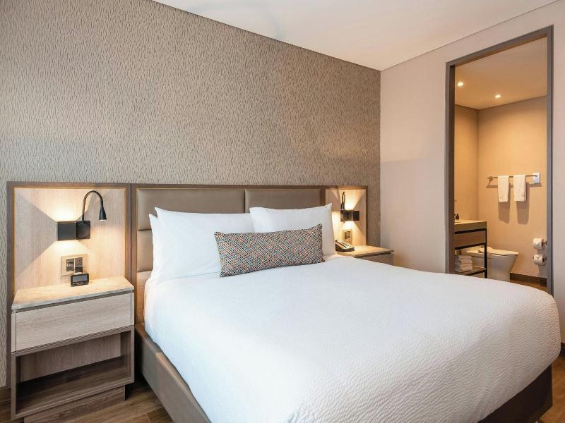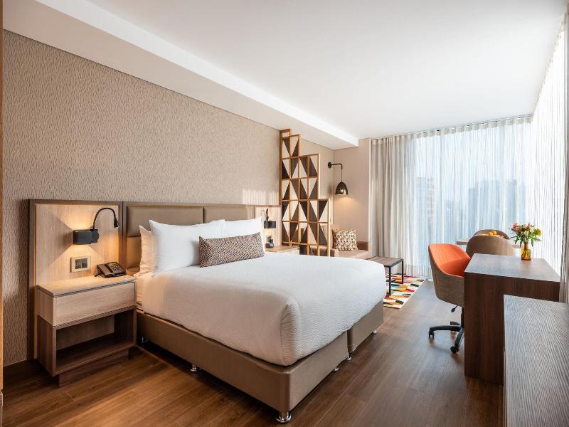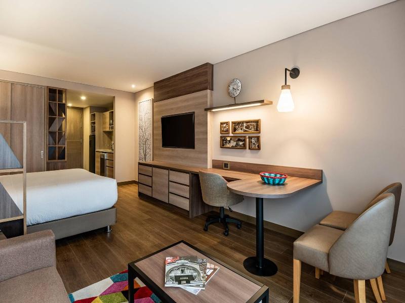 Alójate en el lujoso Residence Inn by Marriott Bogota, en el elegante distrito de Chicó en Bogotá, a pocos pasos del Parque del Virrey y a 10 minutos a pie del Parque de la 93. Este hotel ofrece convenientes servicios como wifi gratis y conserjería. Las 131 habitaciones con aire acondicionado disponen de cocinas pequeñas equipadas con refrigeradores y microondas, televisores de plasma de 43 pulgadas con programación por satélite y wifi gratis. Disfruta de una comida en el restaurante del hotel, un bocadillo en la cafetería o una bebida en el bar/salón. Los servicios adicionales incluyen recepción 24 horas, consigna de equipaje, lavandería y estacionamiento sin cargo. El hotel también ofrece 195 metros cuadrados de espacio para eventos, incluyendo un espacio para conferencias y una sala de reuniones.