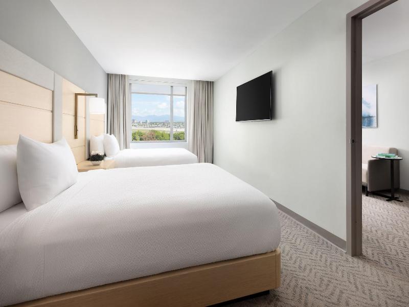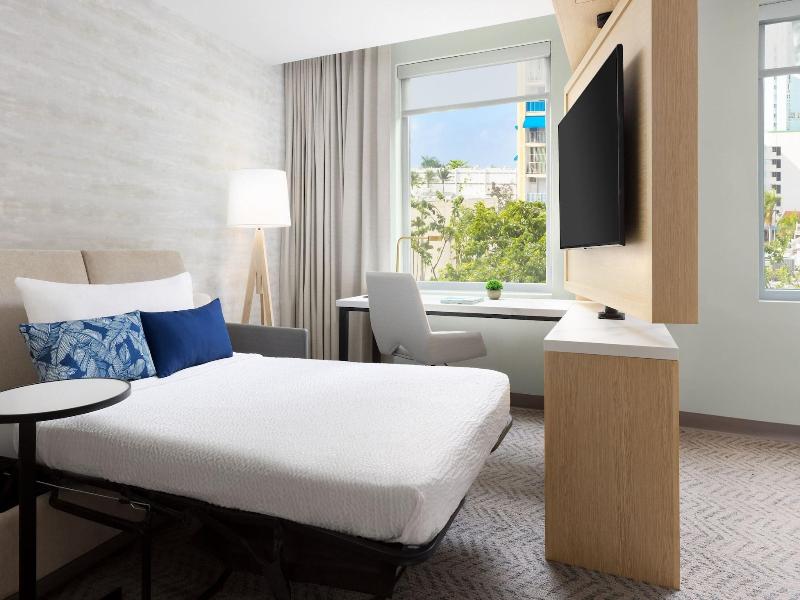 Disfruta de impresionantes vistas desde la terraza y el jardín del Residence Inn by Marriott San Juan Isla Verde, un hotel con certificación ecológica en el corazón de Carolina. Comienza el día con un desayuno bufé gratuito, servido entre semana de 6:30 a 9:00 y los fines de semana de 7:00 a 9:30. Saborea una comida en el restaurante, disfruta de un aperitivo en la cafetería o relájate con una copa en el bar/salón. Mantente conectado con wifi gratuito. El hotel ofrece 231 habitaciones con aire acondicionado, cada una con cocina equipada con refrigerador y placa de cocina, televisor de pantalla plana y prácticas comodidades como teléfono, caja fuerte para computadora portátil y escritorio. Para eventos, dispone de dos salas de reuniones y un centro de negocios abierto las 24 horas. Otras comodidades incluyen recepción 24 horas y servicio de consigna de equipaje. Hay aparcamiento disponible (sujeto a cargos). El hotel se encuentra a poca distancia en coche de la playa de Isla Verde, la playa de Carolina y el Aeropuerto Internacional Luis Muñoz Marín (SJU). Explora atracciones cercanas como el centro comercial Plaza Las Américas, la playa del Condado y el Coliseo José Miguel Agrelot.