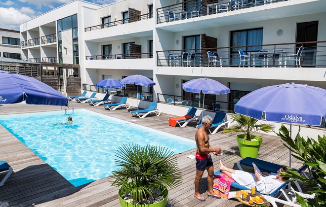 Ubicación - El hotel se encuentra entre las playas y el casino, a sólo 300 m del Port des Minimes y a 600 m del puerto viejo y del barrio comercial de la ciudad. Es ideal para viajes de negocios y para visitantes que esperan descubrir las profundidades de la vida cultural y el fondo histórico de La Rochelle. El aquarium está a sólo 5 minutos a pie, así como el centro de exhibiciones. En media hora en coche se puede llegar a Île de Ré y Île d'Aix. El aeropuerto La Rochelle - Île de Ré está a 6 Km del hotel.. Instalaciones - El apartotel se construyó en el año 2007. El hotel ofrece a los viajeros un total de 86 habitaciones. Las plantas son fácilmente accesibles en ascensor o bien por las escaleras. Las instalaciones incluyen un guardarropa, una sala de desayunos, un bar, una lavandería y una lavandería de moneda. En las zonas públicas hay Wi-Fi (por un cargo extra) a disposición de los huéspedes. Los huéspedes que lleguen en coche pueden dejarlo en un garaje o en el aparcamiento. Los huéspedes más activos, con ganas de descubrir los alrededores en bicicleta, sabrán apreciar el servicio de alquiler de bicicletas.. Habitaciones - Se ofrecen habitaciones con calefacción central y un cuarto de baño. El equipamiento estándar de la mayoría de las habitaciones incluye un balcón. Las habitaciones disponen de cama doble o sofá cama. Hay disponibles dormitorios separados. Hay cunas para los más pequeños. El rincón de cocina está bien equipado con una nevera, un horno, un microondas, una cafetera/tetera y un lavavajillas para quien desee prepararse su propia comida. Hay un set de plancha para mayor comodidad de los huéspedes. Pequeños extras se encargan de proporcionar una estancia agradable, como conexión a Internet, teléfono, televisor y Wi-Fi. Es posible reservar habitaciones aptas para personas en silla de ruedas. Los cuartos de baño están provistos de una ducha y una bañera. Los huéspedes podrán disfrutar de una selección de toallas. El alojamiento ofrece habitaciones de no fumadores.. Deporte y ocio - Las actividades deportivas y de ocio completan la oferta del apartotel. Un chapuzón refrescante en la piscina hace que uno se sienta de verdad de vacaciones. En la zona de ocio, el hotel ofrece bicicleta/bicicleta de montaña y un gimnasio, así como, por un cargo extra, masajes. Comidas - Se puede reservar alojamiento con desayuno. De forma opcional, es posible reservar desayuno.. Tarjetas de crédito - En el alojamiento se aceptan las siguientes tarjetas de crédito: American Express, Visa y MasterCard..