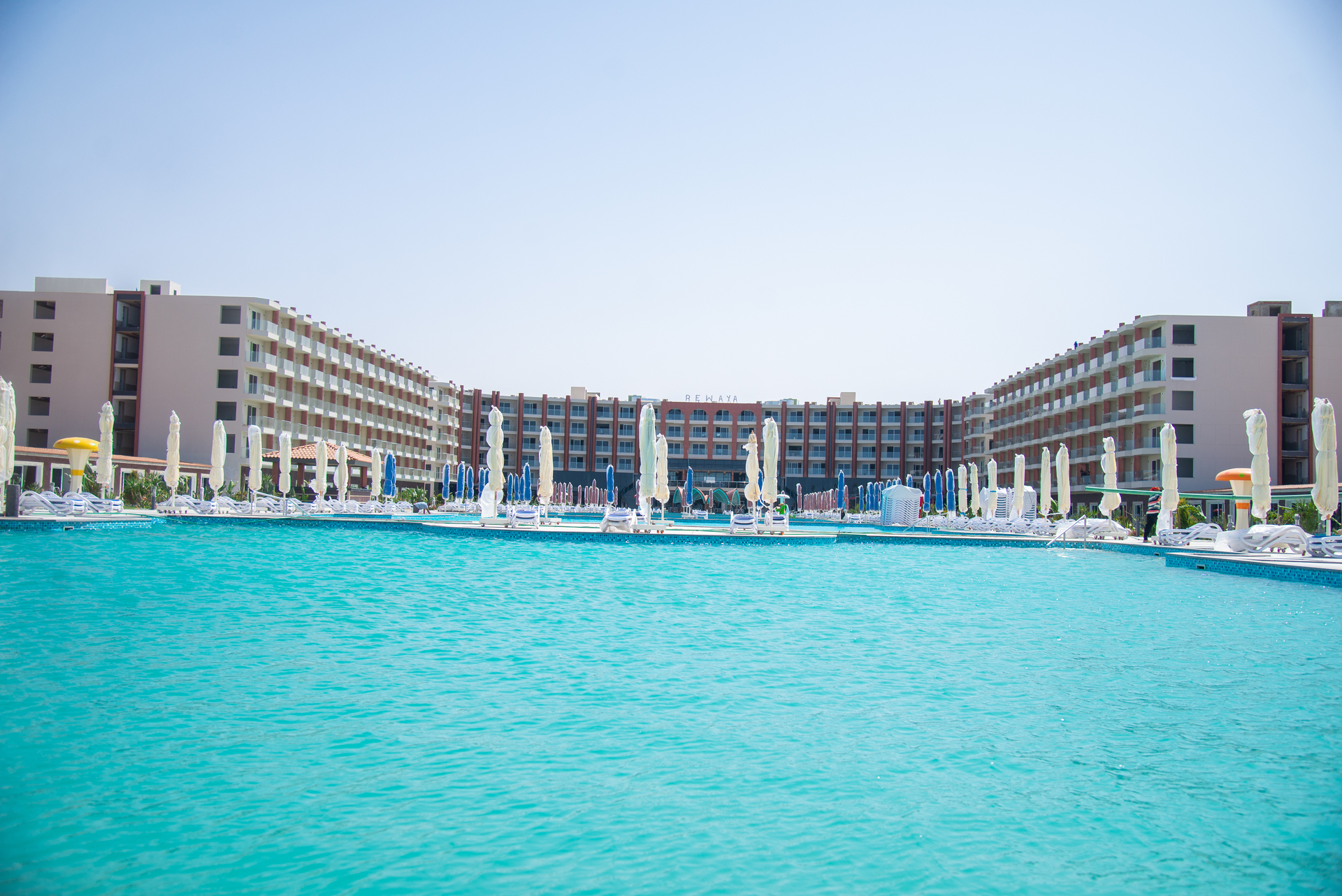El hotel Rewaya Majestic Resort está situado a unos 500 m de la playa privada de arena. El casco histórico está a unos 20 km. La distancia hasta el aeropuerto es de unos 25 km. Entre el hotel y el aeropuerto opera un servicio de traslado durante 24 horas al día. Como opciones de entretenimiento, hay en las inmediaciones un parque de atracciones (a unos. 20 km) y un cine (a unos 20 km). La playa es supervisada por un socorrista. Aquí hay disponibles hamacas, colchonetas, sombrillas y toallas de baño. Puede obtener bebidas frías directamente en el bar de la playa. El hotel con aire acondicionado y verificado por GPS cuenta con una recepción abierta las 24 horas del día (posibilidad de registrarse las 24 horas del día), un bar en el vestíbulo, conexión WiFi, conexión a Internet, 8 ascensores en total, un supermercado y varias tiendas, una boutique, una peluquería, un jacuzzi, ducha y vestuarios, un botiquín, aparcamiento (plazas limitadas) así como una sala de televisión con SAT-TV. En la parte exterior , junto a un jardín, hay una piscina climatizada (abierto todo el año), en la cual puede disponerse de hamacas, sombrillas y toallas de baño gratuito. Aquí hay también 5 piscinas separadas y integradas para niños con área para no nadadores, 8 toboganes de agua (tipo twister/tobogán tunel) así como con 6 toboganes infantil. Para su seguridad, el área de la piscina está supervisada por un salvavidas. Además, al aire libre encontrará una terraza. Usted puede pasar buenos momentos en la discoteca del establecimiento. Asimismo, el hotel dispone de un cajero automático. Puede guardar sus objetos de valor en la caja fuerte y su equipaje en la consigna del hotel. Además, el hotel videovigilado las 24 horas. Para su entretenimiento, el hotel ofrece un teatro. Para los niños hay un parque infantil. También pueden proporcionarse cunas, sillas altas y sillas para niños. Para la limpieza de su ropa hay a su disposición un servicio de lavandería. Además del botones del hotel y del servicio de conserjería se ocupa de su comodidad. En caso de necesidad puede dirigirse al servicio médico todo el día. El voltaje del hotel es de 220 voltios. Para congresos y otras reuniones de negocios, el hotel ofrece un centro de negocios así como una zona de conferencias (tipo auditorio) con un total de 100 asientos, recepción, atril, mesas, videoproyector, impresora, escáner, conexión a Internet así como servicio de traducción. El hotel también puede poner a su disposición un fotógrafo. Si desea explorar la región de sus vacaciones, puede utilizar el servicio de alquiler de coches próximo al hotel. En su hotel de vacaciones se da mucho valor a la sostenibilidad. A este propósito responden, entre otros, la provisión de expendedores de jabón y champú, comida ecológica y alimentos orgánicos, un sistema de ventilación centralizado de la habitación y un sistema de limpieza compatible con el medio ambiente. Se aceptan Euro/Master Card o Visa como método de pago. Gracias a sus instalaciones sin barreras, el hotel también es adecuado para personas en silla de ruedas. Comidas Como servicios de restauración, el hotel ofrece: todo incluido y todo incluido light. Por la mañana se sirve un desayuno de bufé. Los almuerzos y cenas se servirán también como bufé con ensaladas y postres. Para la cena, se pide a los huéspedes que acudan al restaurante con ropa adecuada. Al reservar el todo incluido una bebida de bienvenida y algunas comidas en el restaurante a la carta se incluyen. Además, el servicio todo incluido incluye agua (24h), bebidas sin alcohol (24h), café y té (24h) así como bebidas alcohólicas locales (24h). Del disfrute culinario se ocupan un restaurante de bufé con terraza (comidas italiana, mediterránea, sin gluten y también vegetarianas) y una cafetería, un snackbar 24h así como un bar de la piscina. La carta de bebidas del hotel incluye agua, refrescos, café y té, cerveza y vino. Distancias
