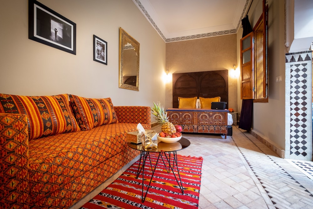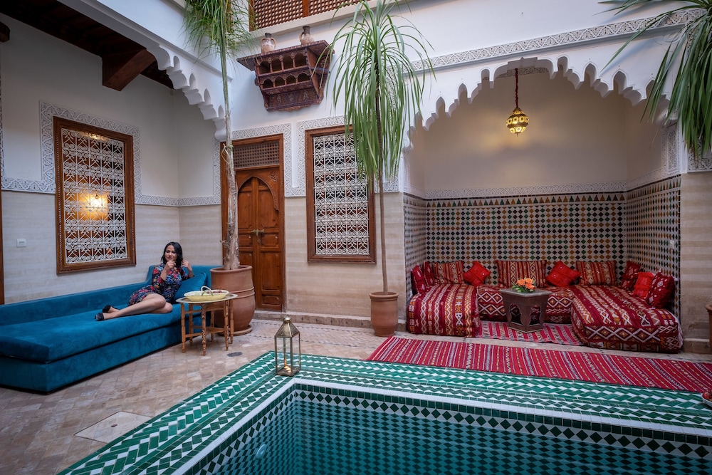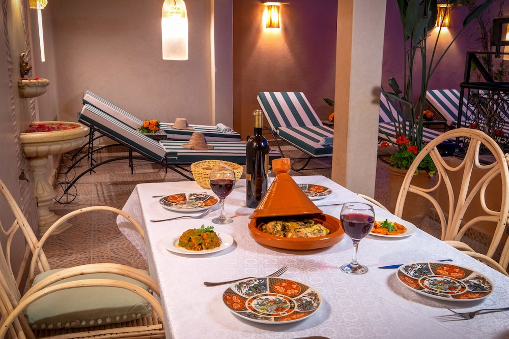 Si te alojas en Riad Baba Ali, en Marrakech (Medina), estarás a pocos minutos de Casa de la fotografía y de Museo de Marrakech. Este riad se encuentra cerca de Ali ben Youssef Medersa y de Musée de Marrakech.Habitaciones Te sentirás como en tu propia casa en una de las 4 con decoraciones diferentes habitaciones. Mantén el contacto con los tuyos gracias a la conexión a Internet wifi gratis. El baño privado con ducha está provisto de artículos de higiene personal gratuitos y secador de pelo. Las comodidades incluyen caja fuerte, además de un servicio de limpieza disponible todos los días y la posibilidad de solicitar cunas gratuitas.Servicios Recibe los cuidados que te mereces gracias al servicio de masajes o aprovecha instalaciones recreativas como piscina al aire libre y muchas más. Se ofrece además conexión a Internet wifi gratis, servicios de conserjería y servicio de canguro (de pago). Recorre rápida y cómodamente las principales atracciones de la zona gracias al servicio de transporte (de pago).Para comer Si tienes hambre, pasa por el restaurante de este riad, que ofrece desayunos, almuerzos y cenas o utiliza el servicio de habitaciones con horario limitado. Apaga la sed con tu bebida favorita en el bar o lounge.Servicios de negocios y otros Tendrás servicio de recepción 24 horas, depósito de equipaje y caja fuerte en recepción a tu disposición. Pagando un pequeño suplemento podrás aprovechar prestaciones como servicio de transporte al aeropuerto (ida y vuelta) (disponible las 24 horas) y servicio de traslado desde la estación de trenes.