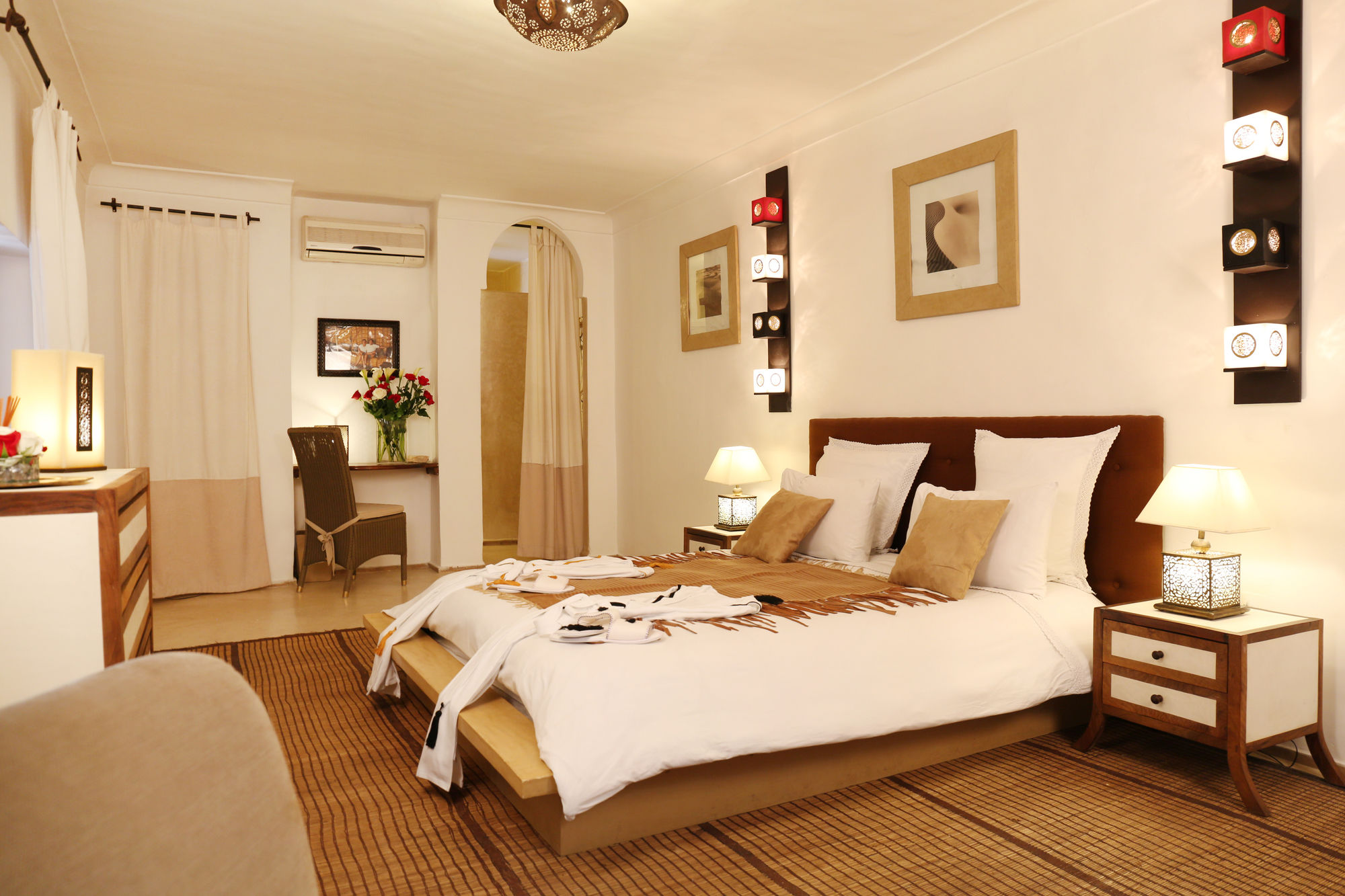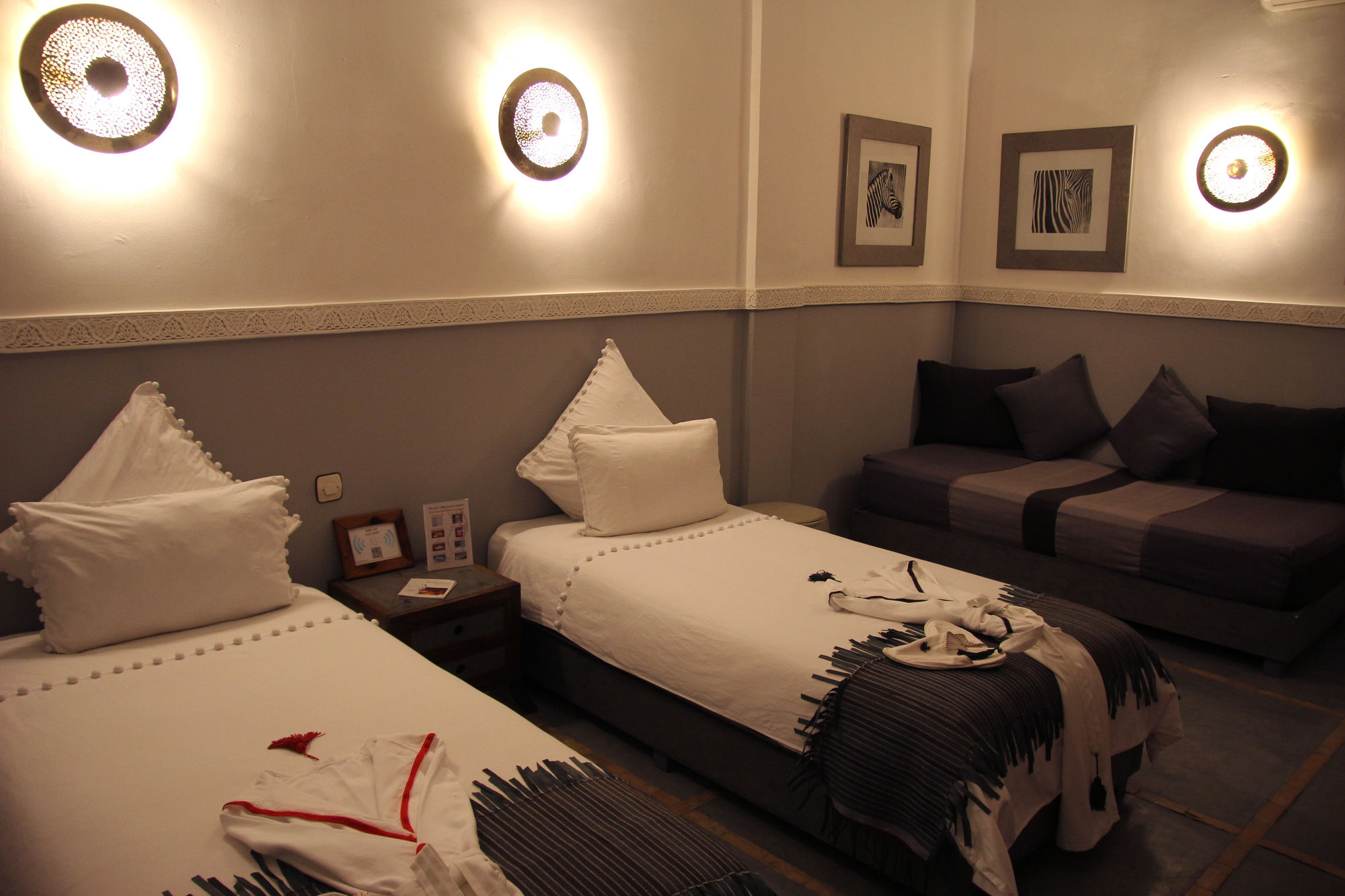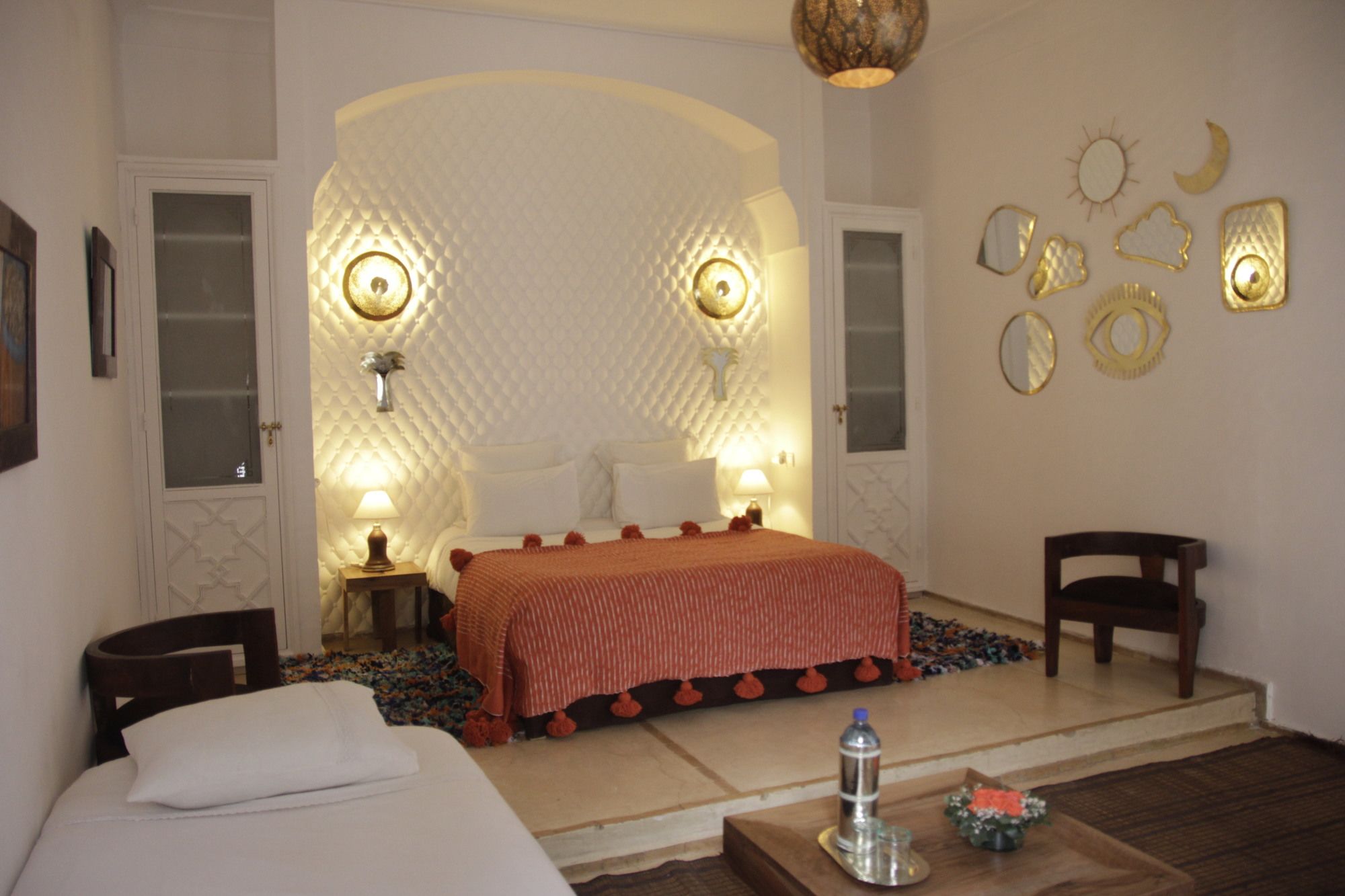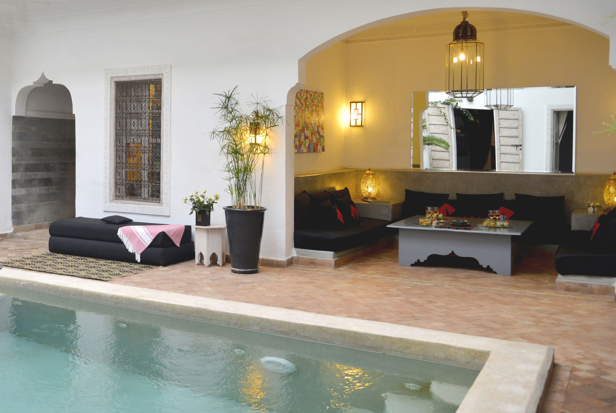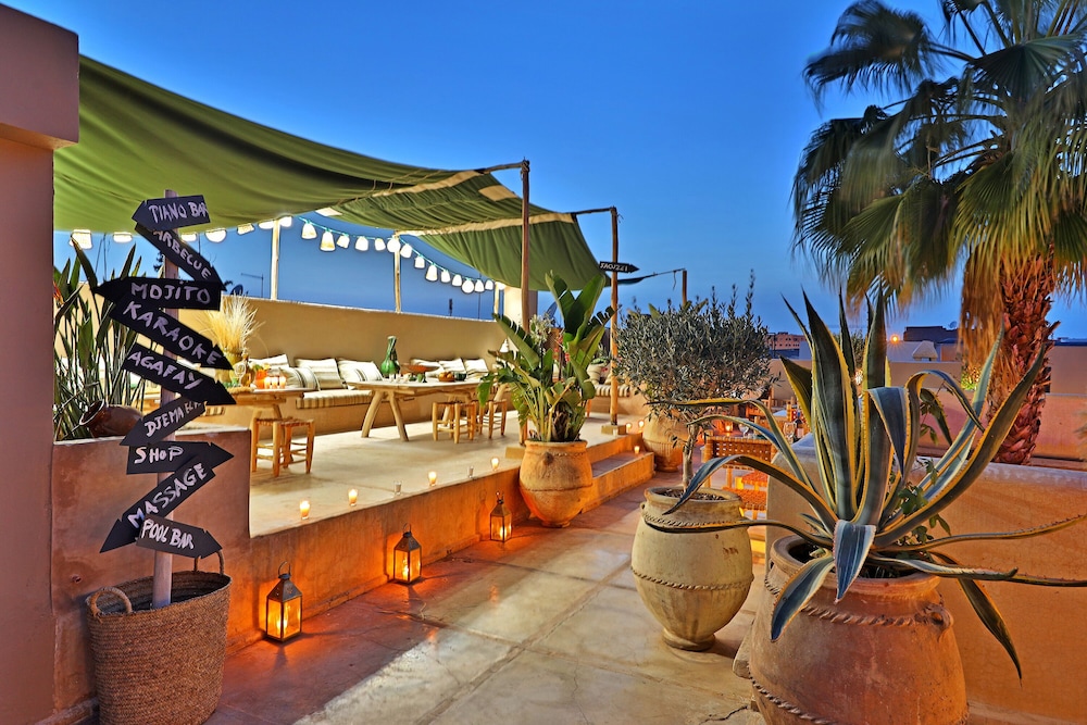 Si te alojas en Riad Anyssates, en Marrakech (Medina), podrás llegar fácilmente a Palacio Dar el Bacha y a Plaza Jamaa el Fna. Este riad de 4 estrellas se encuentra muy cerca de Jardín Majorelle y Mezquita de Ben Youssef.Habitaciones Te sentirás como en tu propia casa en una de las 9 habitaciones con aire acondicionado. Mantén el contacto con los tuyos gracias a la conexión a Internet wifi gratis. El baño privado está provisto de artículos de higiene personal gratuitos y secador de pelo. Las comodidades incluyen agua embotellada gratuita, además de un servicio de limpieza disponible todos los días y la posibilidad de solicitar cunas gratuitas. Para un relax sin igual, nada como una visita al spa, que ofrece masajes, tratamientos corporales y tratamientos faciales. Se ofrece además conexión a Internet wifi gratis, servicios de conserjería y servicio de niñera (de pago).Para comer Si tienes hambre, pasa por el restaurante de este riad, que ofrece desayunos, almuerzos y cenas o utiliza el servicio de habitaciones con horario limitado. Apaga la sed con tu bebida favorita en el bar o lounge.Servicios de negocios y otros Tendrás servicio de tintorería, atención multilingüe y depósito de equipaje a tu disposición. Se ofrece servicio de transporte al aeropuerto (ida y vuelta) de pago.