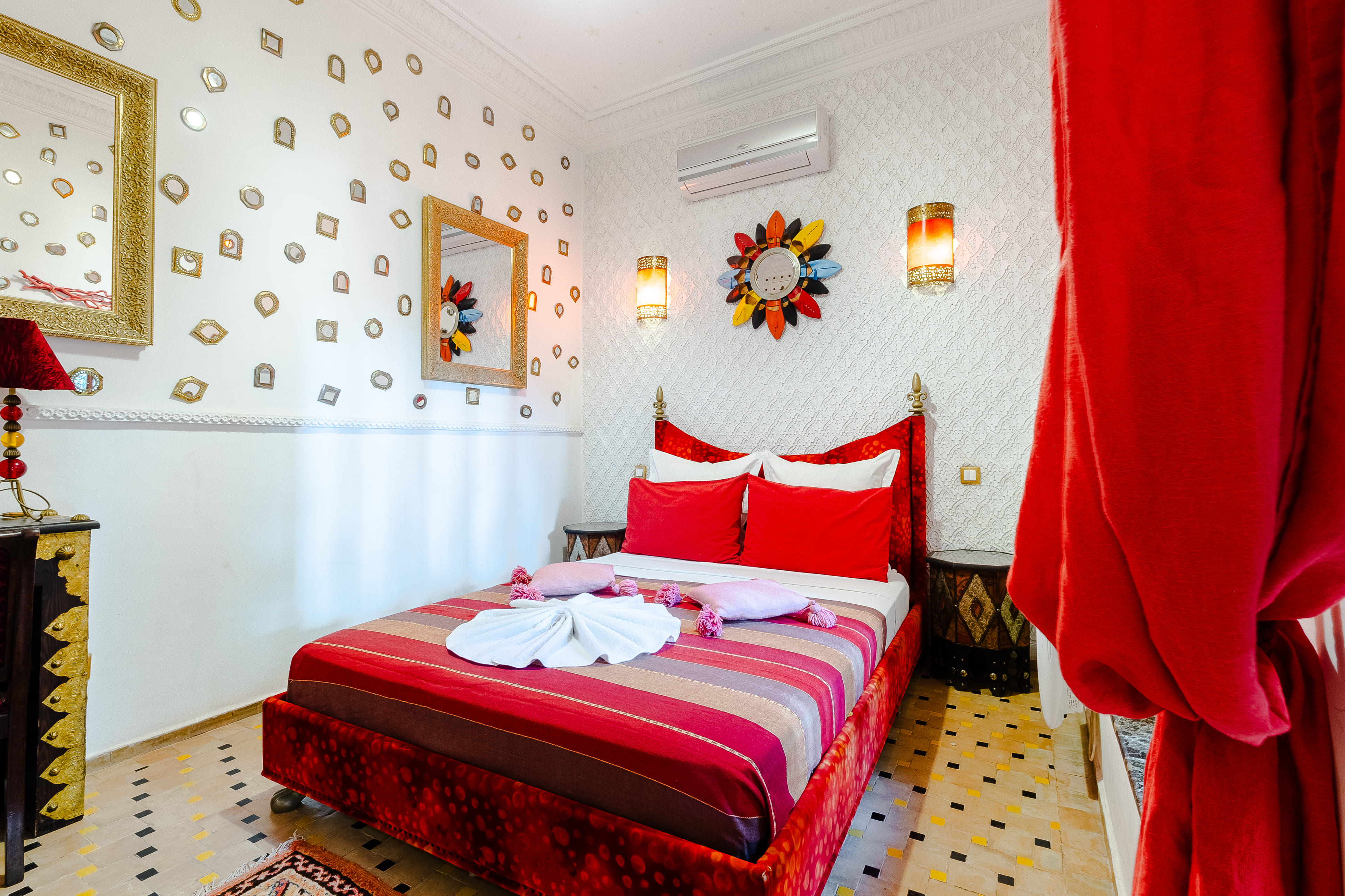 El alojamiento Riad Asrari se encuentra a sólo 100 m de los bares y restaurantes más cercanos. El casco histórico está a unos 500 m. A unos 300 m puede encontrarse un supermercado. La distancia hasta el aeropuerto es de unos 4 km. Entre el hotel y el aeropuerto opera un servicio de traslado (de pago) durante 24 horas al día. En la playa hay disponibles colchonetas, sombrillas y toallas de baño. Este hotel está equipado con una recepción abierta las 24 horas del día, sala lounge, conexión WiFi y aparcamiento. También puede encontrarse en el hotel una peluquería. En la piscina se pueden usar toallas de baño gratuito. En el exterior del establecimiento podrá relajarse en una terraza y un jardín. El voltaje del hotel es de 220 voltios. Si desea explorar la región de sus vacaciones, puede utilizar el servicio de alquiler de coches próximo al hotel (de pago). Además, en el hotel se venden entradas para excursiones. Comidas Como servicios de restauración, el hotel ofrece: media pensión y solo desayuno. Los almuerzos y cenas se servirán como a la carta. Del disfrute culinario se ocupa un restaurante con terraza. La carta de bebidas del hotel incluye agua, refrescos y café y té. Distancias