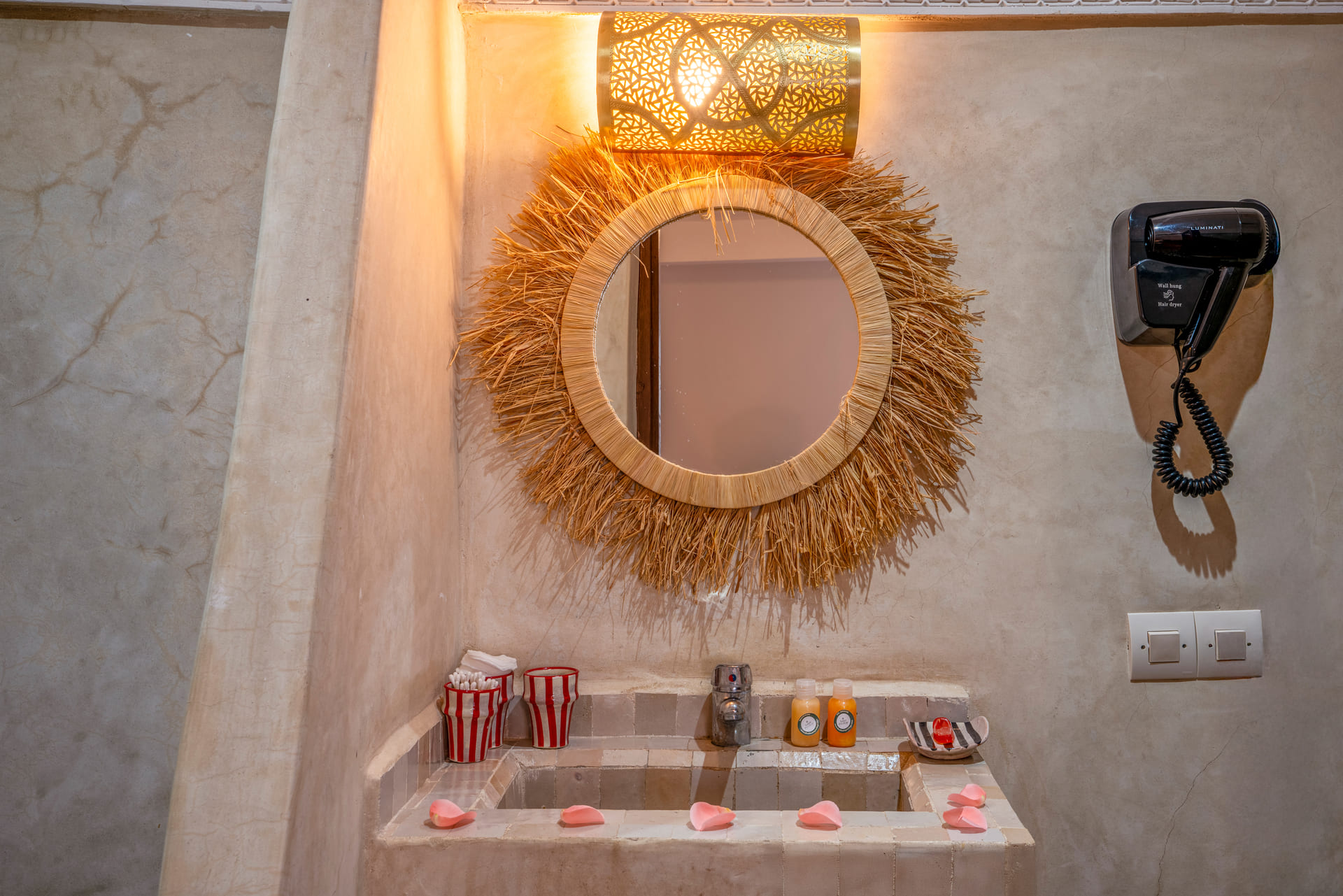 Unos 176 km de la playa privada está el hotel Riad L'Oriental & Spa. Los bares y restaurantes más próximos se encuentran a unos 500 m de distancia. El centro de la ciudad está a unos 3 km. Las tiendas y comercios están aprox. a 300 m del hotel. Entre el hotel y el aeropuerto opera un servicio de traslado durante 24 horas al día. Como opciones de entretenimiento, hay en las inmediaciones una discoteca (a unos 3 km de distancia), un parque acuático (a unos 273 km), un cine (a unos 4 km) y un campo de golf (a unos 3,5 km). Este hotel está equipado con conexión WiFi, conexión a Internet y un botiquín. El registro de entrada es posible durante todo el día. Además, el hotel videovigilado las 24 horas. Para la limpieza de su ropa hay a su disposición un servicio de lavandería. Además del botones del hotel se ocupa de su comodidad. Si desea explorar la región de sus vacaciones, puede utilizar el servicio de alquiler de coches próximo al hotel (de pago). En la recepción del hotel se venden entradas para excursiones por los alrededores. Se aceptan Euro/Master Card o tarjetas de débito como método de pago. Comidas Como servicios de restauración, el hotel ofrece: todo incluido y media pensión. Para el almuerzo se sirven platos de menú o a la carta con entrantes, ensaladas así como postres (extras bajo petición y por un suplemento). Para la cena se sirven platos de menú o a la carta con entrantes y postres (extras bajo petición y por un suplemento). La media pensión incluye desayuno y cena. Al reservar media pensión plus están desayuno así como almuerzo incluidas. Al hacer la reserva de todo incluido una bebida de bienvenida se incluye. Además, el servicio todo incluido incluye bebidas sin alcohol (24h). Del disfrute culinario se ocupan un restaurante con terraza (comidas mediterránea, bajas en calorías y también vegetarianas) y una cafetería. La carta de bebidas del hotel incluye agua, refrescos y café y té. El Hotel no sirve bebidas alcohólicas. Distancias