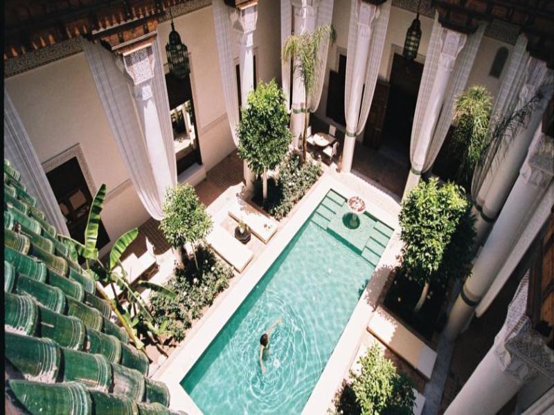 Esta propiedad fue construida a finales del siglo XVIII y anteriormente perteneca a miembros de la alta sociedad de Marrakshi. Comprende cuatro riads y se extiende por ms de 1.100 m2. La propiedad ofrece a sus huspedes cinco esplndidos patios, as como una terraza cubierta con rosas blancas y salpicadas de palmeras, naranjos y plataneros. Completan sus servicios una piscina, con una vista impresionante de los tejados de Marrakech, salas de vapor, solrium, masajes y tratamientos que de belleza ofrecen a los huspedes lo ltimo en relajacin. Tambin dispone de servicio de traslados al aeropuerto, servicio de lavandera, servicio de conserjera y sala de recepcin para seminarios.