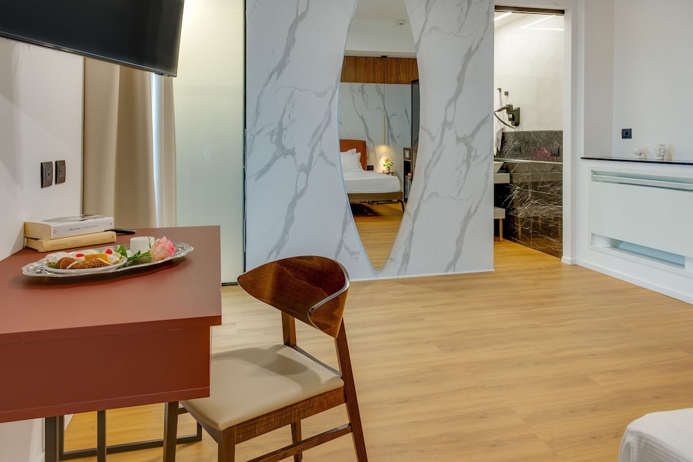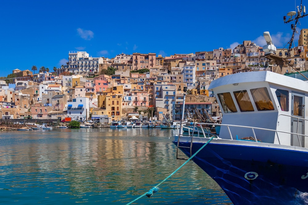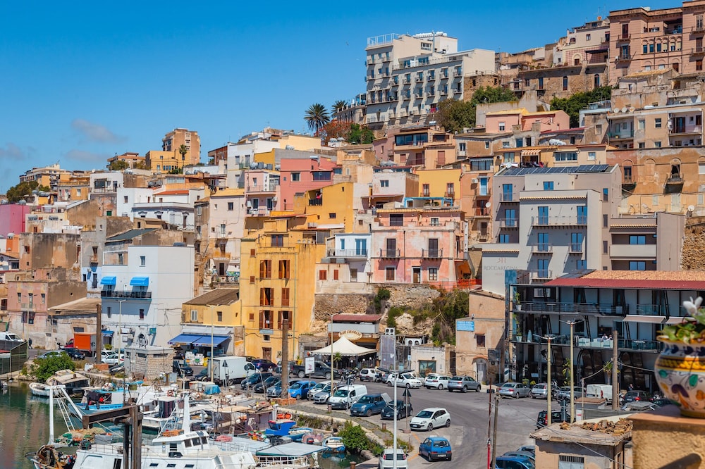 Facilities and services include Air Conditioning, Bar, Car parking, Conference/banquet facilities (extra charge), Elevator, Pets allowed on request (extra charge), Shuttle services (extra charge), Television and Wireless internet.Room feature Air conditioning, Coffee/tea making facilities, Desk, Hairdryer, Mini bar/fridge, Non-smoking rooms, Private bathroom, Shower, Soundproof rooms, Telephone, Television and Wi-Fi in Room.Address: Vicolo II Grande Caricatore (Lungomare Cristoforo Colombo), 92019 Sicily Italy.