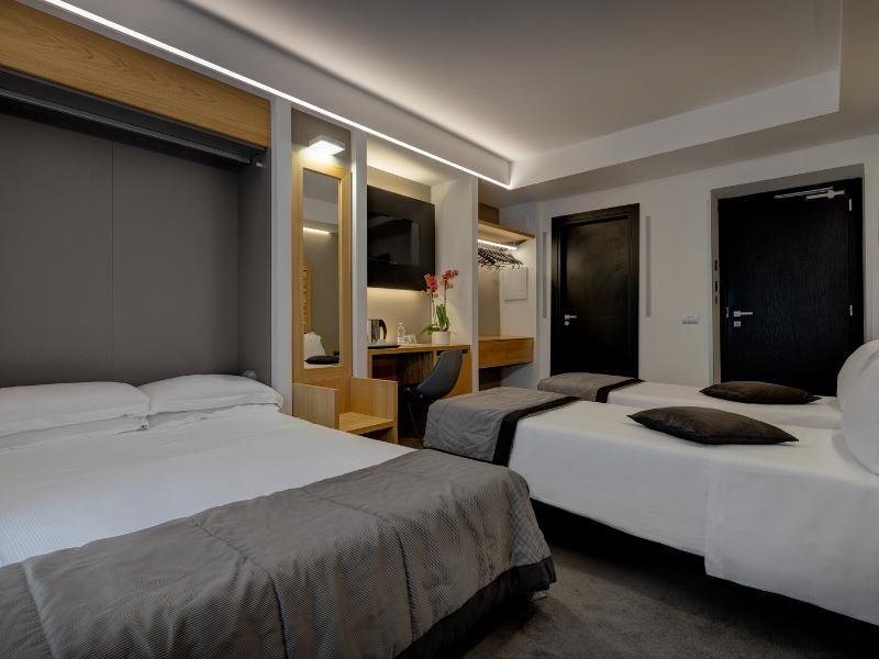 El hotel dispone de habitaciones renovadas, luminosas y decoradas en estilo moderno. Se desarrolla en dos edificios frente a frente: el edificio principal alberga las habitaciones y la recepción 24 horas, mientras que el anexo, situado frente a un edificio histórico, ofrece habitaciones adicionales espaciosas, ideales también para familias, así como la sala de desayunos. El acceso al anexo se realiza mediante algunos escalones, preservando el encanto arquitectónico original.