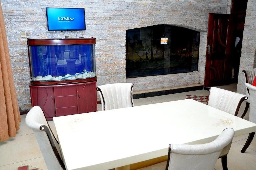 En Ropani Hotel Kajjansi gozarás de una buena ubicación en Kampala, en las afueras, en los alrededores de Catedral de Rubaga y Palacio de Kabaka. Este hotel se encuentra a pocos kilómetros de Parlamento de Buganda y de Embajada de Estados Unidos. Te sentirás como en tu propia casa en cualquiera de las 14 habitaciones con aire acondicionado y televisor de plasma. La conexión a Internet wifi gratis te mantendrá en contacto con los tuyos; también podrás ver tu programa favorito en el televisor con canales por cable. El baño privado con ducha está provisto de artículos de higiene personal gratuitos y zapatillas. Entre las comodidades, se incluyen escritorio y cortinas opacas, además de un servicio de limpieza disponible todos los días. Con gimnasio abierto las 24 horas y muchas otras instalaciones recreativas a tu disposición, no te quedará ni un minuto libre. Tienes también jardín donde sentarte a contemplar el paisaje. Encontrarás también conexión a Internet wifi gratis, asistencia turística y para la compra de entradas y área para parrillas. Si tienes hambre, pasa por el restaurante de este hotel, que ofrece almuerzos y cenas, o llama al servicio de habitaciones con horario limitado. Relájate con un buen refresco en uno de los 2 bares con salón. Se sirve un desayuno inglés gratuito todos los días de 7:00 a 10:00. Tendrás servicio de tintorería, servicio de recepción 24 horas y caja fuerte en recepción a tu disposición. Hay un aparcamiento sin asistencia gratuito disponible.