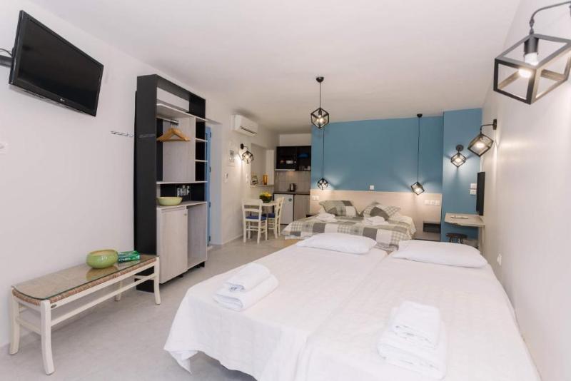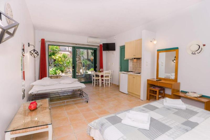 El Hotel Rouda Bay es un hotel de 3 estrellas situado en la playa de Mikros Gialos, Lefkada. Las habitaciones y apartamentos del hotel ofrecen una vista maravillosa del mar y las islas de los alrededores. Ofrecemos cuatro tipos de habitaciones diferentes para dar cabida a todo tipo de huéspedes. Nuestras habitaciones están diseñadas para ser cómodas y prácticas. Todos nuestros huéspedes disfrutan de la vista del hermoso jardín, que está lleno de árboles y flores, mientras que algunas habitaciones tienen una magnífica vista de la bahía de Rouda. Ofrecemos servicio de limpieza diario y también disponemos de una habitación especialmente diseñada para personas con discapacidad.