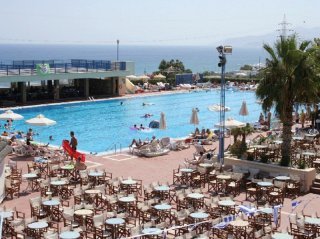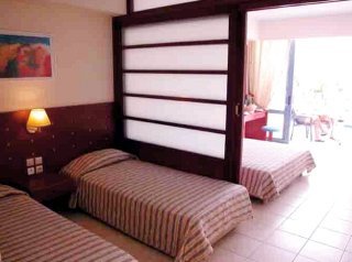 Este hotel se encuentra en una zona elevada, por lo que le ofrece vistas muy bonitas de la bahia de Hersonissos. La playa se encuentra a 400 m y el centro de la ciudad esta a 1,5 km. En los alrededores podra encontrar una amplia cantidad de restaurantes, bares, discotecas, tiendas y comercios. Hay una parada de transporte publico a 150 m. El aeropuerto de Heraclion se encuentra a 25 km y el aeropuerto de Chania a unos 150 km.Este hotel, restaurado en el ano 2004, tiene 5 plantas en las que se reparten un total de 330 habitaciones, 65 de ellas suites junior y 4 habitaciones acondicionadas para minusvalidos. Dispone de un hall de entrada con 3 ascensores y un area de recepcion abierta las 24 horas del dia, asi como servicio de cambio de divisa. En cuanto al aspecto gastronomico, le ofrece una cafeteria, dos bares y un restaurante climatizado con sillas altas para los ninos. Ademas, tiene a su disposicion conexion a Internet, un quiosco, una joyeria, varias tiendas, una sala de juegos, una sala de television, servicio de alquiler de bicicletas y un sotano para guardarlas. Se tiene en cuenta a los mas pequenos, para los cuales hay un parque infantil en el que podran jugar y corretear a sus anchas. Para completar las prestaciones ofrecidas, tendra a su disposicion servicio de habitaciones y de atencion medica. Tambien podra estacionar su vehiculo en el aparcamiento del propio hotel.Las confortables habitaciones disponen de un cuarto de bano con ducha, banera y secador de pelo. Ademas, estan equipadas con telefono de linea directa, television via satelite con 21 canales y radio, una nevera pequena y una cama doble o extra grande. Todas ellas cuentan con aire acondicionado (regulable con cargo extra), calefaccion, caja fuerte de alquiler y un balcon o terraza. Las habitaciones familiares tienen, ademas, un dormitorio independiente y un salon. Pueden reservarse para no fumadores o equipadas para discapacitados