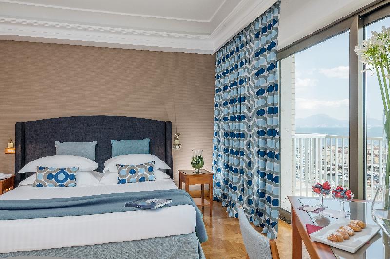 Situado en el vibrante corazón de Nápoles, el Royal Continental Hotel es el punto de partida ideal para explorar las atracciones y calles comerciales de la ciudad, a pocos pasos de la Piazza Plebiscito. El hotel cuenta con amplias zonas comunes, varias salas de reuniones y espacios tranquilos, todos ellos con un encanto vintage gracias a los interiores diseñados por Gio Ponti. La mayoría de las 397 habitaciones, luminosas y espaciosas, disponen de grandes ventanales y balcones con impresionantes vistas al golfo. En la décima planta, los huéspedes pueden disfrutar de unas vistas espectaculares de Castel dell'Ovo desde el restaurante de la azotea y la exclusiva piscina de agua de mar (disponible por 5 € por persona durante un máximo de 2 horas). Entre las comodidades adicionales se incluyen un solárium, un bar, un gimnasio y servicio de masajes (con reserva previa).