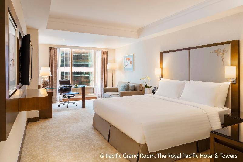 Ubicado en Canton Road, sobre la terminal de ferry China Ferry Terminal, el Royal Pacific Hotel se encuentra a solo 4 minutos a pie de la estación de MTR Austin, a 8 minutos a pie de la estación de MTR Tsim Sha Tsui y a 8 minutos a pie del muelle Star Ferry Pier. Está a tan solo 5 minutos en coche de la estación West Kowloon del tren de alta velocidad y de la estación Kowloon del Airport Express. A solo 20 minutos en MTR (5 estaciones desde la estación Austin hasta la estación Sung Wong Toi) del Kai Tak Sports Park, el Royal Pacific Hotel es el lugar ideal para atletas, árbitros y espectadores de cualquier evento deportivo. China Hong Kong City, donde se encuentra el hotel, instalará una decoración festiva de luces LED en la fachada exterior del hotel que da al puerto, desde diciembre de 2024 hasta febrero de 2025. La vista completa del puerto desde nuestras Towers Harbour Suites se verá parcialmente afectada. La iluminación estará encendida de 18:00 a 23:00 todos los días durante las festividades.