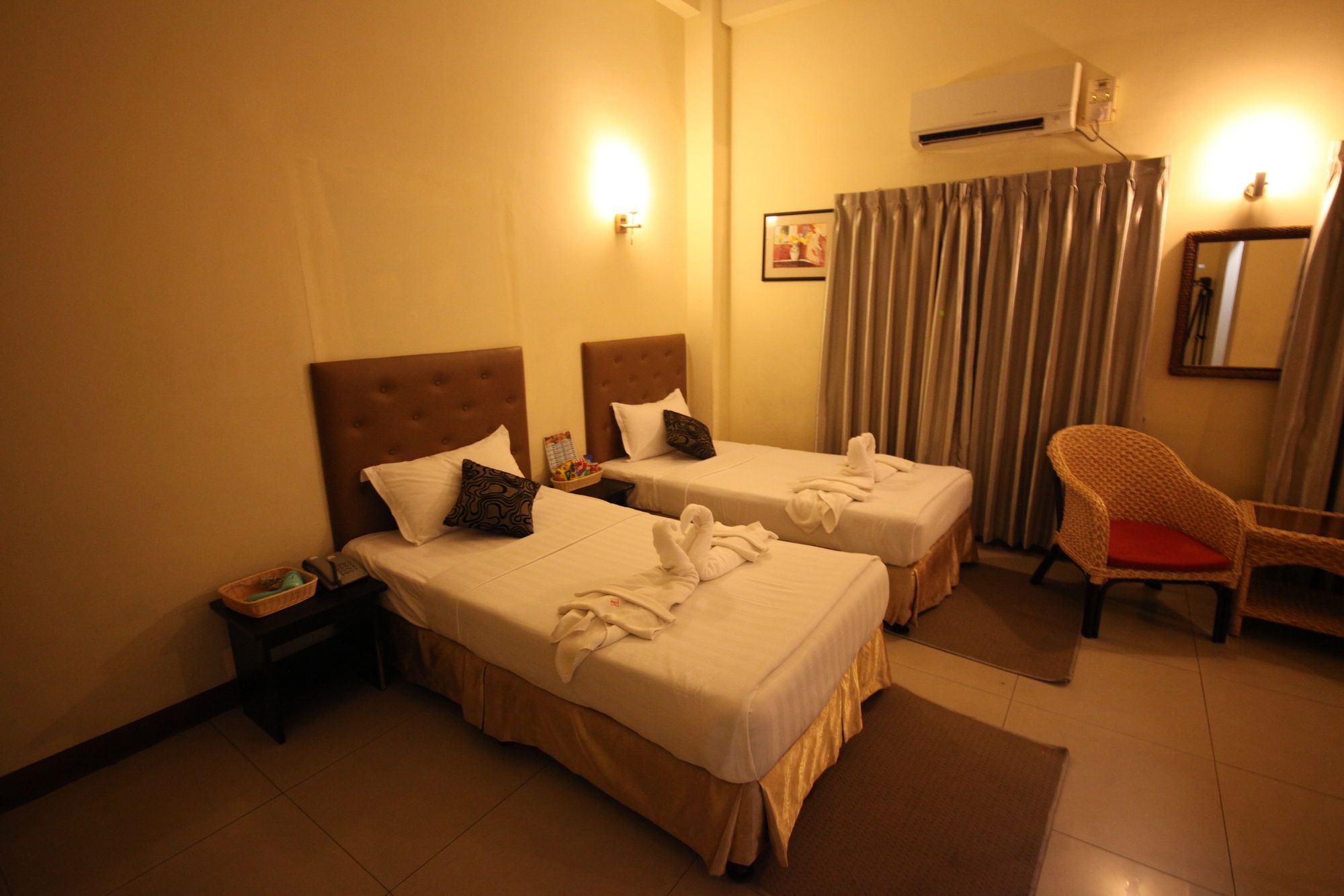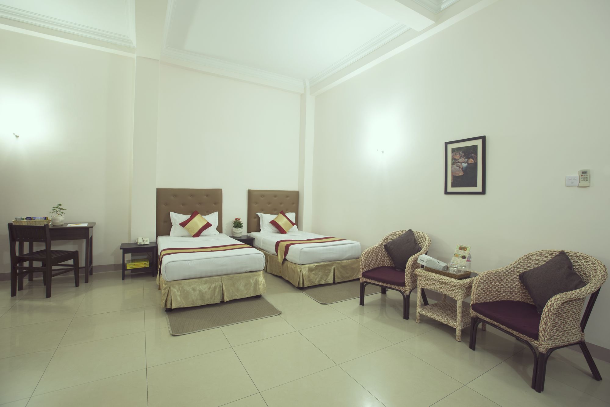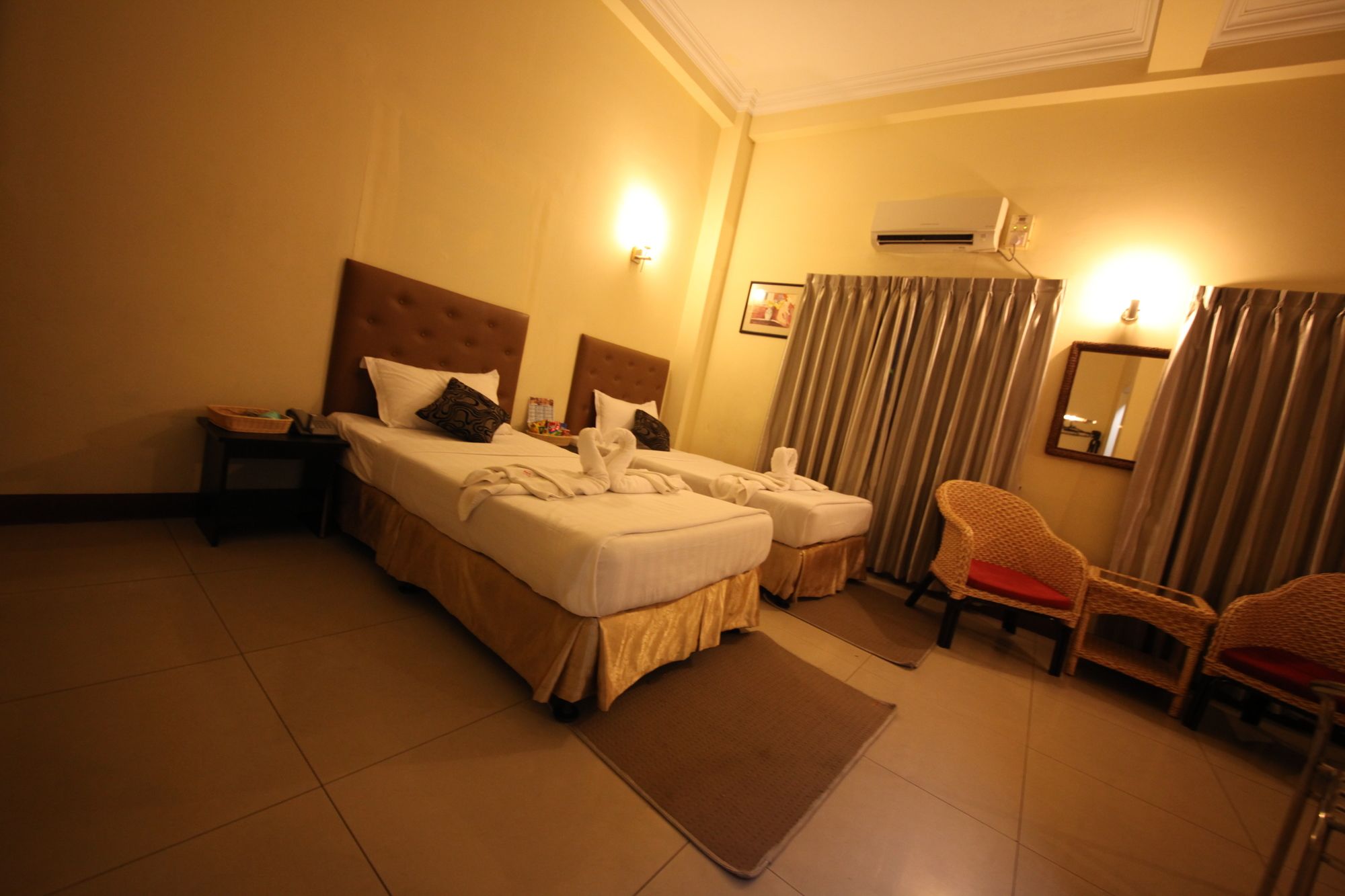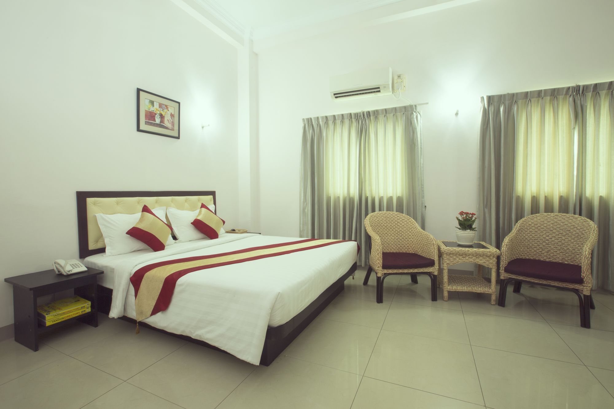 Si decides alojarte en Royal Platinum Hotel, te encontrarás en una fantástica zona de Yangón (Bahan) y apenas te separarán diez minutos en coche de Parque Natural Kandawgyi y Pagoda de Chaukhtatgyi. Además, este hotel se encuentra a 2 km de People's Park y a 2 km de Plaza del Pueblo. Te sentirás como en tu propia casa en cualquiera de las 37 habitaciones con aire acondicionado. La conexión a Internet wifi gratis te mantendrá en contacto con los tuyos; también podrás ver tu programa favorito en el televisor con canales por cable. El cuarto de baño está provisto de ducha y secador de pelo. Entre las comodidades, se incluyen caja fuerte y hervidor eléctrico, además de un servicio de limpieza disponible todos los días. Con jardín donde descansar y comodidades como conexión a Internet wifi gratis y servicios de conserjería, ¡no te faltará de nada! En Royal Platinum Hotel tienes un restaurante a tu disposición para comer algo. Tendrás servicio de recepción 24 horas y ascensor a tu disposición. Hay un aparcamiento sin asistencia gratuito disponible.
