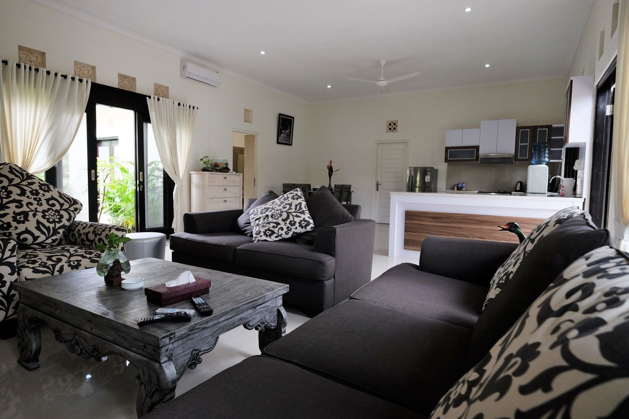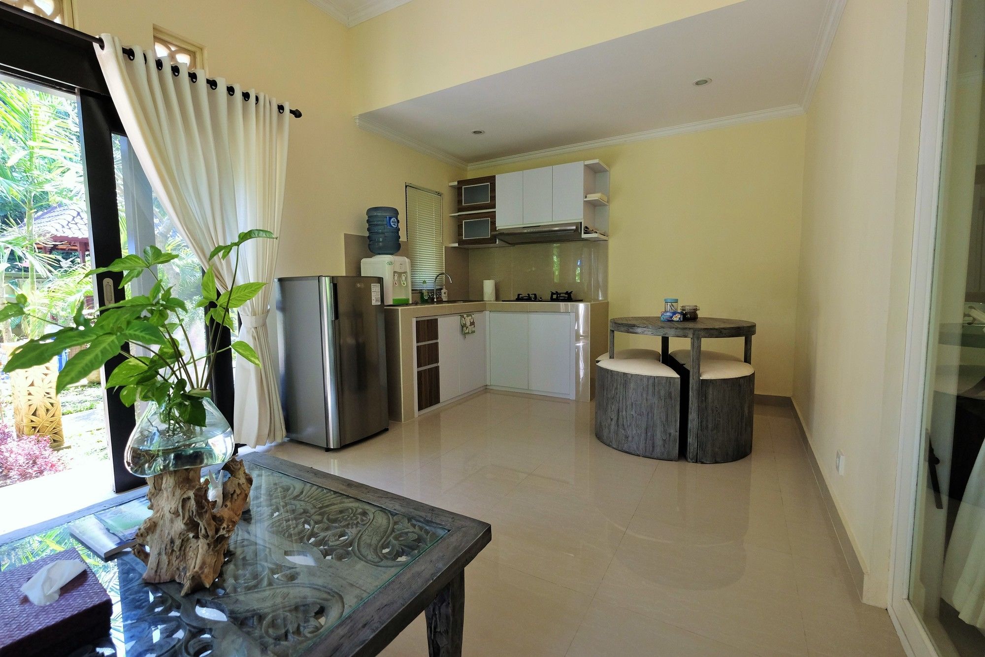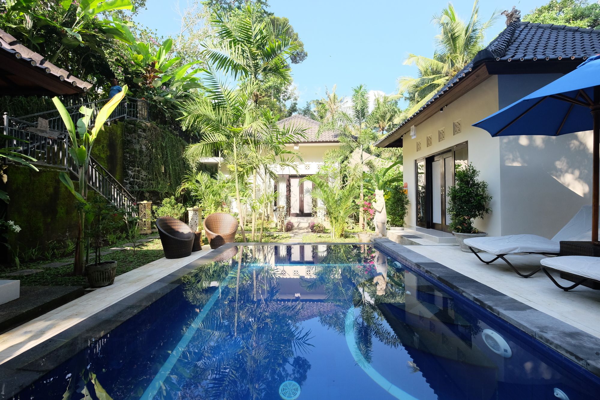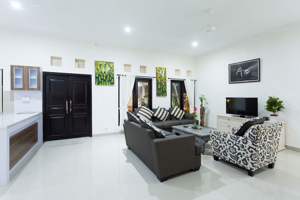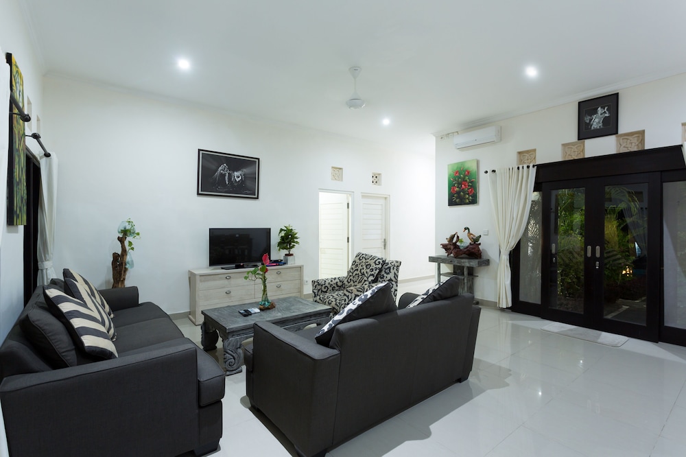 En Peliatan, Rumah Bakti ofrece una espléndida ubicación en el casco histórico, a poca distancia de Museum Purbakala y Museo Rudana. Esta villa de lujo se encuentra cerca de Agung Rai Gallery y de Cueva del Elefante.Habitaciones Reserva una de las 3 habitaciones climatizadas, todas dotadas de cocina con frigorífico/congelador grande y placa de cocina. La conexión a Internet wifi gratis te permite comunicarte con los tuyos, y en tus ratos libres podrás entretenerte con el televisor LED de 32 pulgadas con canales por cable. Las comodidades incluyen caja fuerte y escritorio, además de un servicio de limpieza disponible todos los días.Servicios Con bicicletas de alquiler y muchas otras instalaciones recreativas a tu disposición, no te quedará ni un minuto libre. Tienes también jardín donde sentarte a contemplar el paisaje. Otros servicios de esta villa de estilo art decó incluyen conexión a Internet wifi gratis, servicios de conserjería y servicio de canguro (de pago). Podrás aprovechar el servicio de transporte gratuito, que te llevará hasta a 4.00 km de distancia.Para comer Aprovecha el servicio de habitaciones las 24 horas de esta villa. Disfruta de un cóctel gratuito de bienvenida todos los días, donde podrás conocer a otros huéspedes mientras tomas un bocado.Servicios de negocios y otros Tendrás servicio de tintorería, servicio de recepción 24 horas y depósito de equipaje a tu disposición. Pagando un pequeño suplemento podrás aprovechar prestaciones como servicio de transporte al aeropuerto (ida y vuelta) a petición y aparcamiento sin asistencia gratuito.