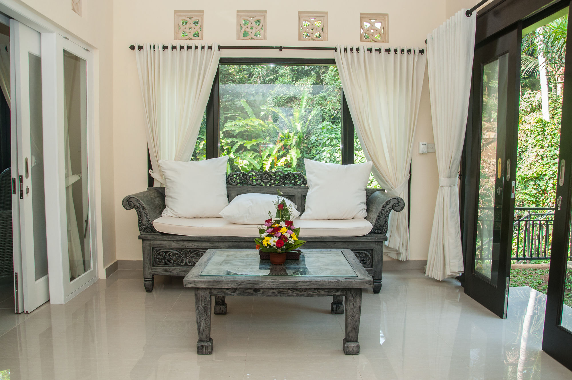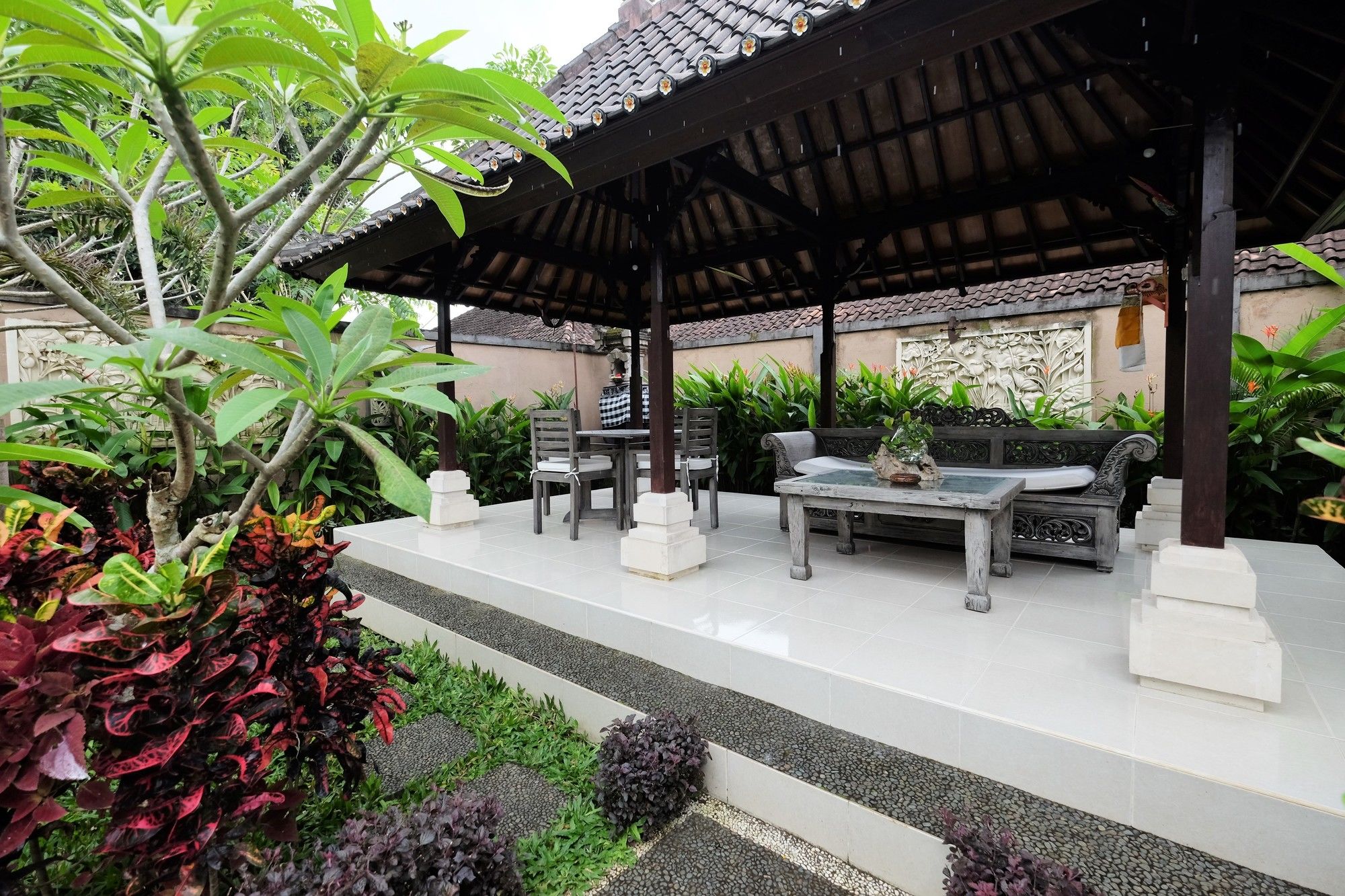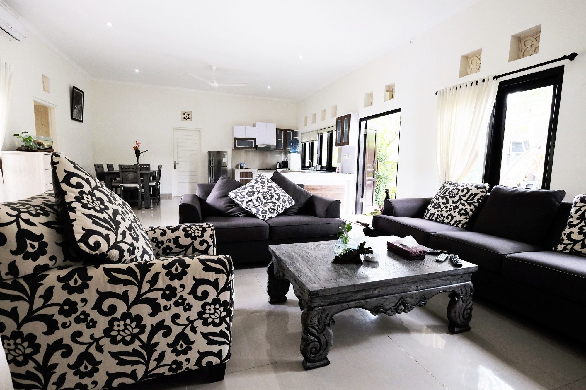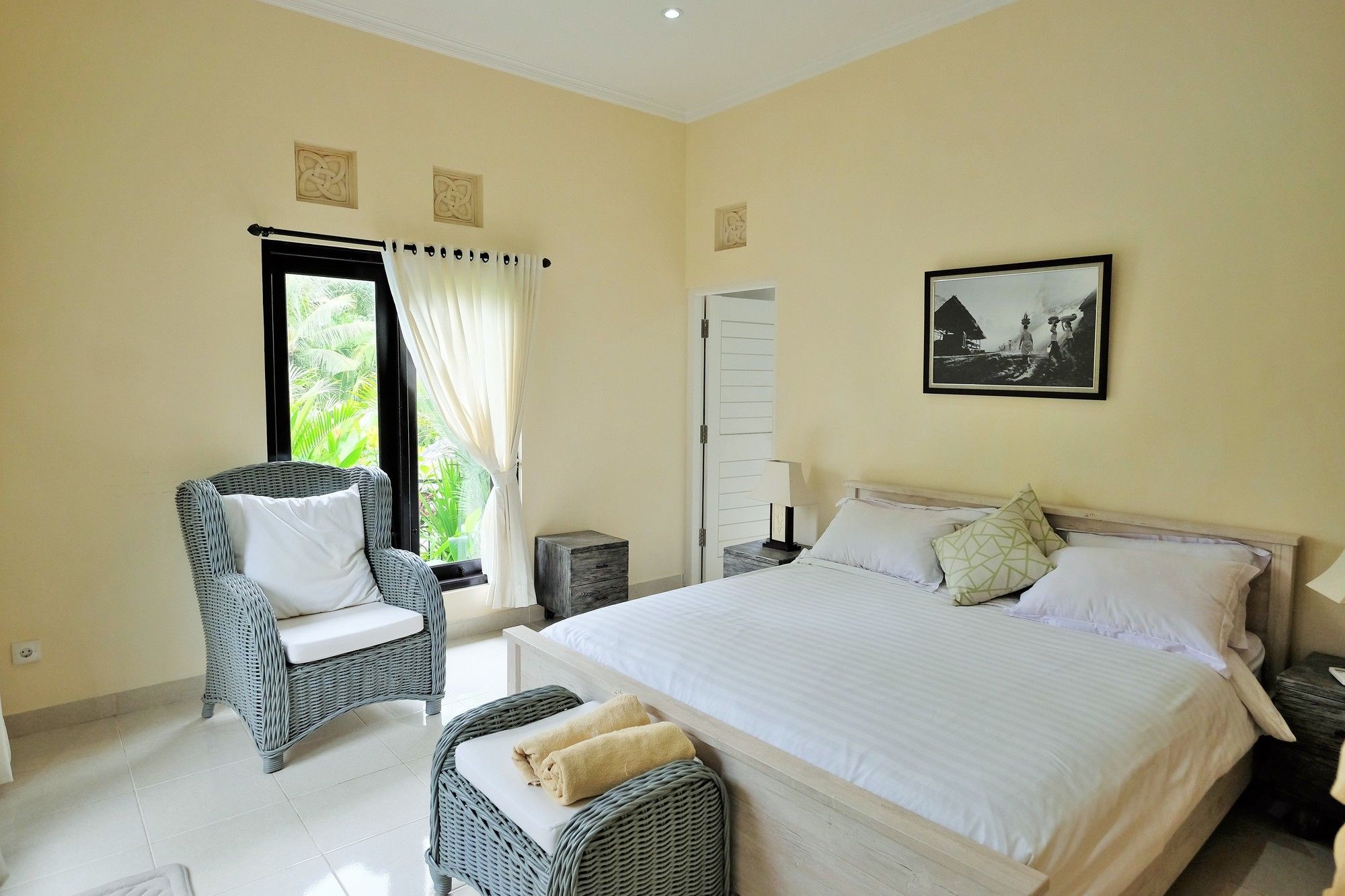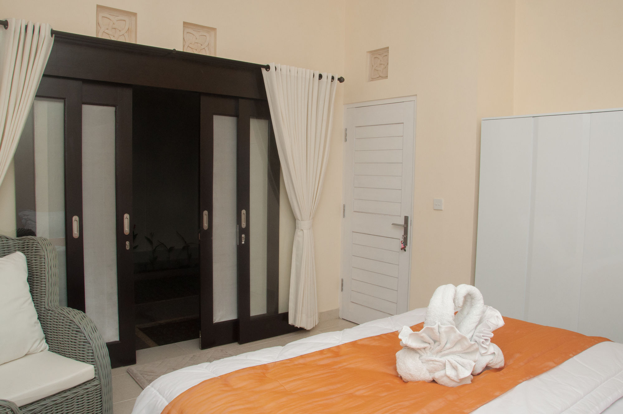 En Peliatan, Rumah Bakti ofrece una espléndida ubicación en el casco histórico, a poca distancia de Museum Purbakala y Museo Rudana. Esta villa de lujo se encuentra cerca de Agung Rai Gallery y de Cueva del Elefante.Habitaciones Reserva una de las 3 habitaciones climatizadas, todas dotadas de cocina con frigorífico/congelador grande y placa de cocina. La conexión a Internet wifi gratis te permite comunicarte con los tuyos, y en tus ratos libres podrás entretenerte con el televisor LED de 32 pulgadas con canales por cable. Las comodidades incluyen caja fuerte y escritorio, además de un servicio de limpieza disponible todos los días.Servicios Con bicicletas de alquiler y muchas otras instalaciones recreativas a tu disposición, no te quedará ni un minuto libre. Tienes también jardín donde sentarte a contemplar el paisaje. Otros servicios de esta villa de estilo art decó incluyen conexión a Internet wifi gratis, servicios de conserjería y servicio de canguro (de pago). Podrás aprovechar el servicio de transporte gratuito, que te llevará hasta a 4.00 km de distancia.Para comer Aprovecha el servicio de habitaciones las 24 horas de esta villa. Disfruta de un cóctel gratuito de bienvenida todos los días, donde podrás conocer a otros huéspedes mientras tomas un bocado.Servicios de negocios y otros Tendrás servicio de tintorería, servicio de recepción 24 horas y depósito de equipaje a tu disposición. Pagando un pequeño suplemento podrás aprovechar prestaciones como servicio de transporte al aeropuerto (ida y vuelta) a petición y aparcamiento sin asistencia gratuito.