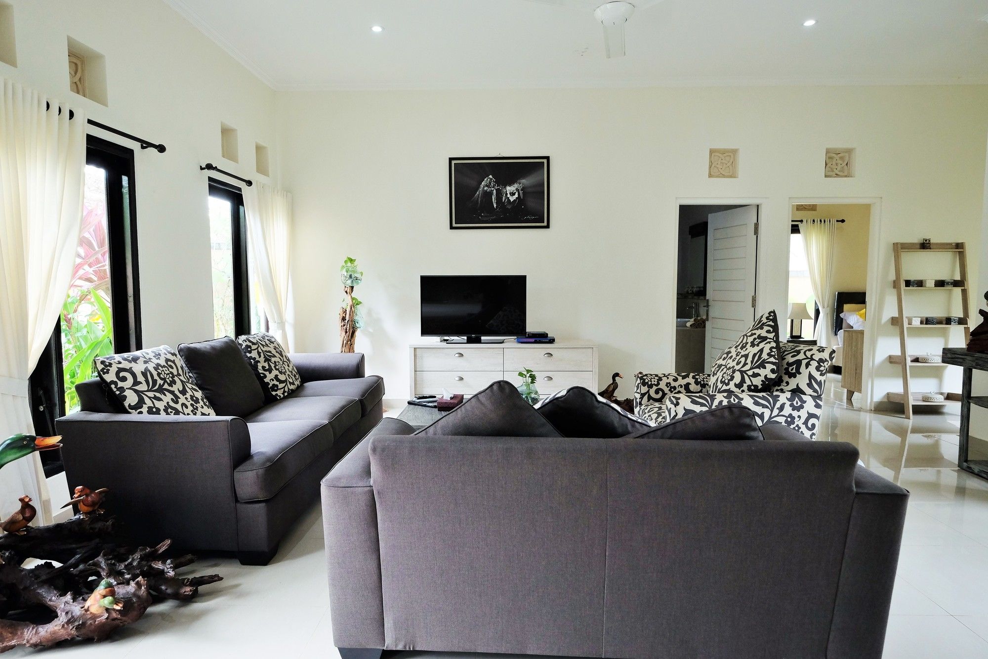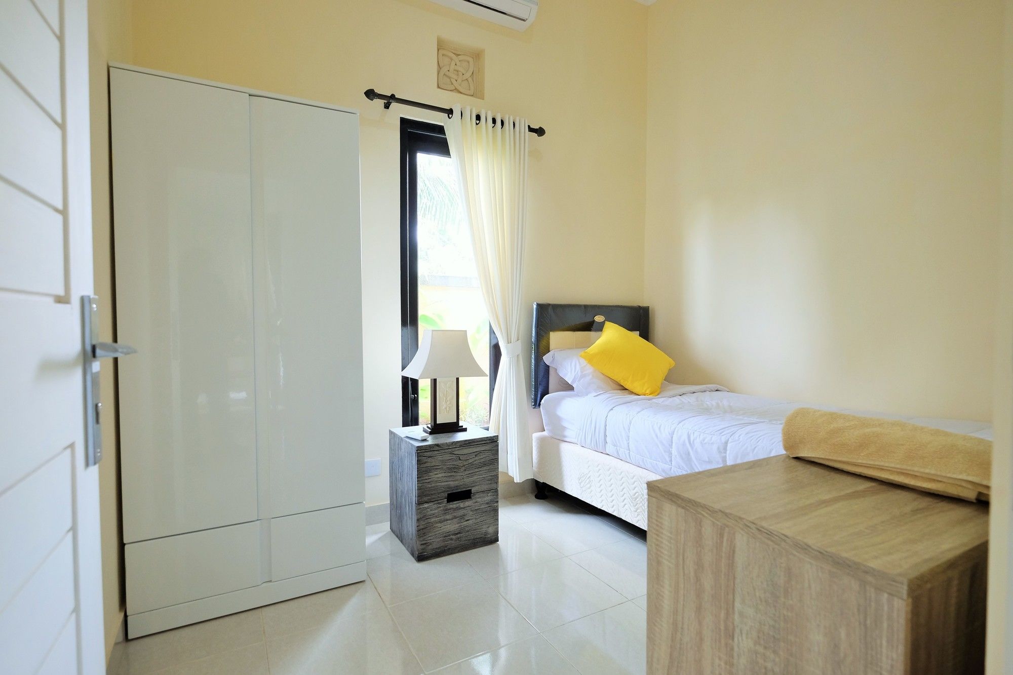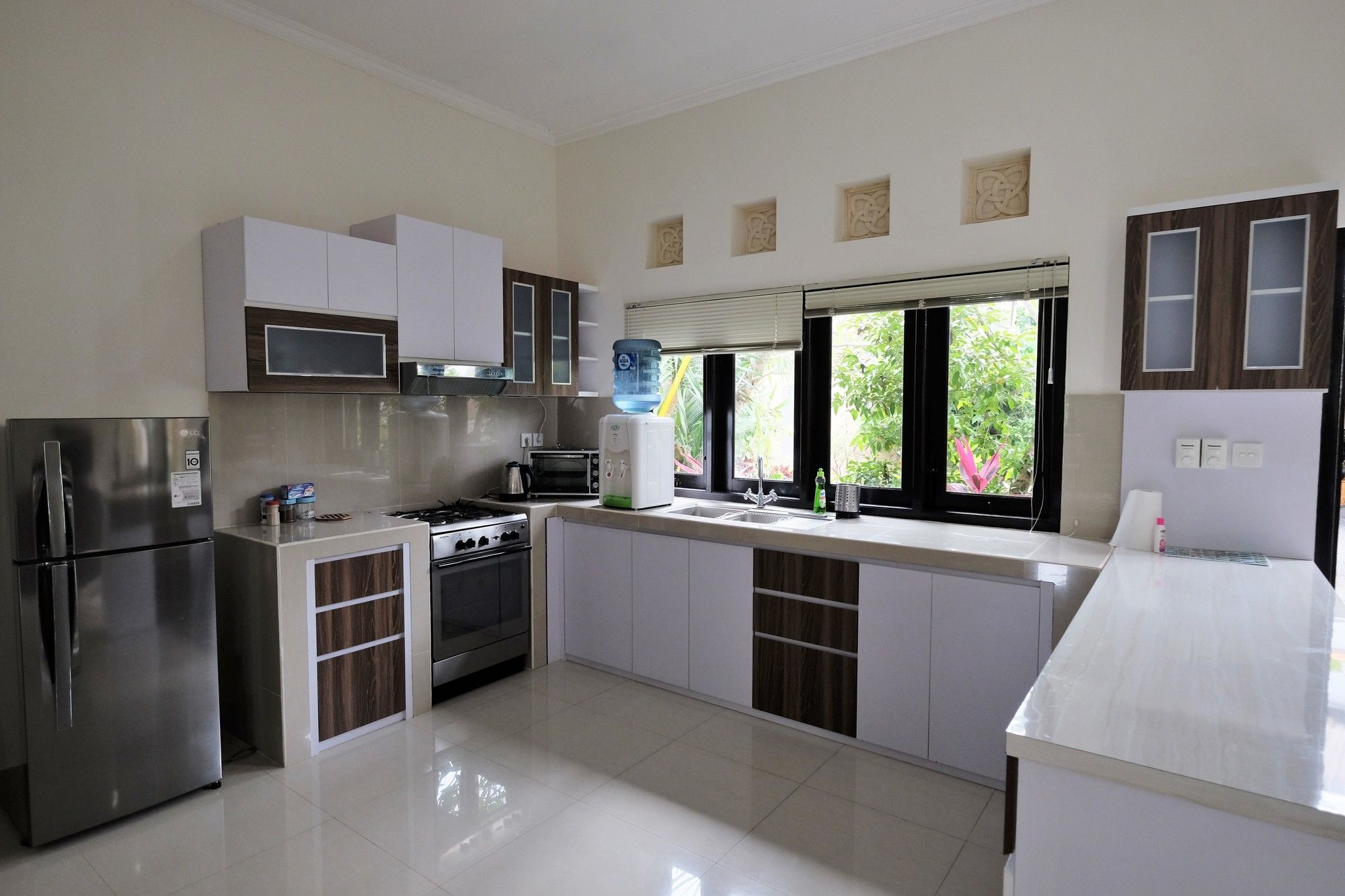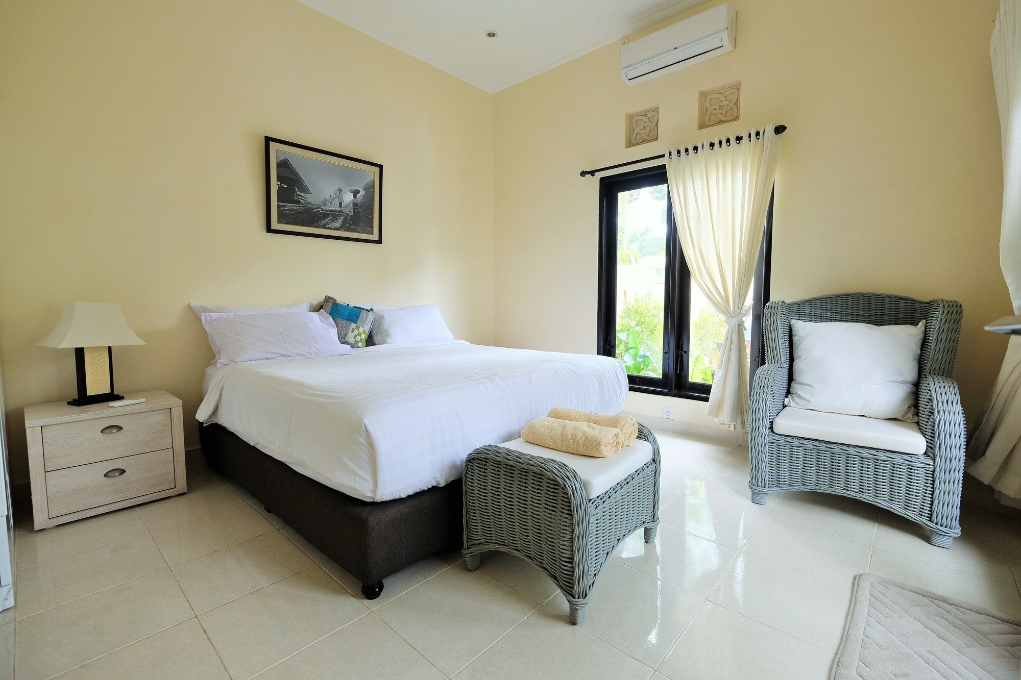 En Peliatan, Rumah Bakti ofrece una espléndida ubicación en el casco histórico, a poca distancia de Museum Purbakala y Museo Rudana. Esta villa de lujo se encuentra cerca de Agung Rai Gallery y de Cueva del Elefante.Habitaciones Reserva una de las 3 habitaciones climatizadas, todas dotadas de cocina con frigorífico/congelador grande y placa de cocina. La conexión a Internet wifi gratis te permite comunicarte con los tuyos, y en tus ratos libres podrás entretenerte con el televisor LED de 32 pulgadas con canales por cable. Las comodidades incluyen caja fuerte y escritorio, además de un servicio de limpieza disponible todos los días.Servicios Con bicicletas de alquiler y muchas otras instalaciones recreativas a tu disposición, no te quedará ni un minuto libre. Tienes también jardín donde sentarte a contemplar el paisaje. Otros servicios de esta villa de estilo art decó incluyen conexión a Internet wifi gratis, servicios de conserjería y servicio de canguro (de pago). Podrás aprovechar el servicio de transporte gratuito, que te llevará hasta a 4.00 km de distancia.Para comer Aprovecha el servicio de habitaciones las 24 horas de esta villa. Disfruta de un cóctel gratuito de bienvenida todos los días, donde podrás conocer a otros huéspedes mientras tomas un bocado.Servicios de negocios y otros Tendrás servicio de tintorería, servicio de recepción 24 horas y depósito de equipaje a tu disposición. Pagando un pequeño suplemento podrás aprovechar prestaciones como servicio de transporte al aeropuerto (ida y vuelta) a petición y aparcamiento sin asistencia gratuito.