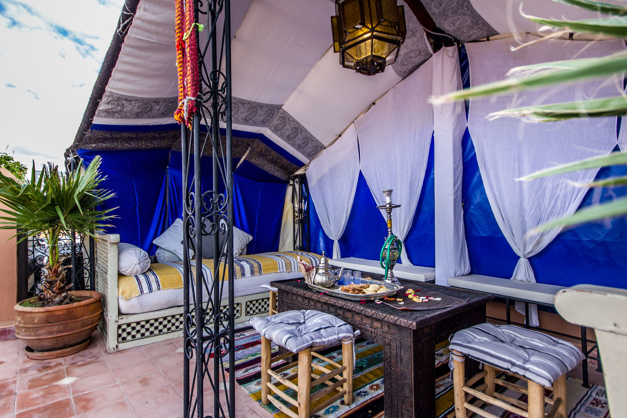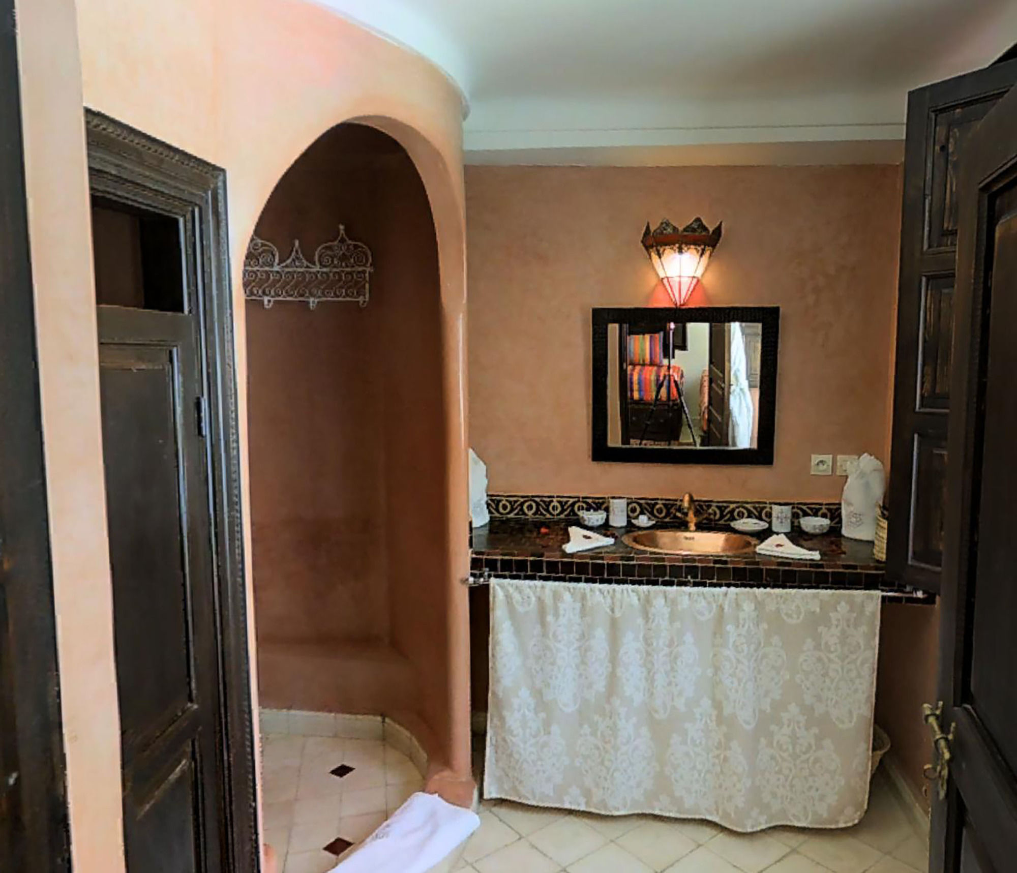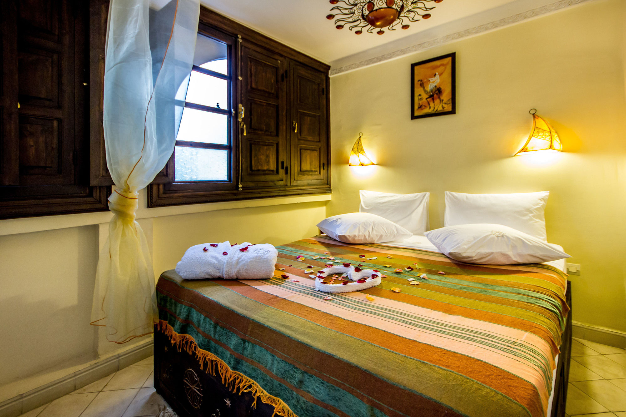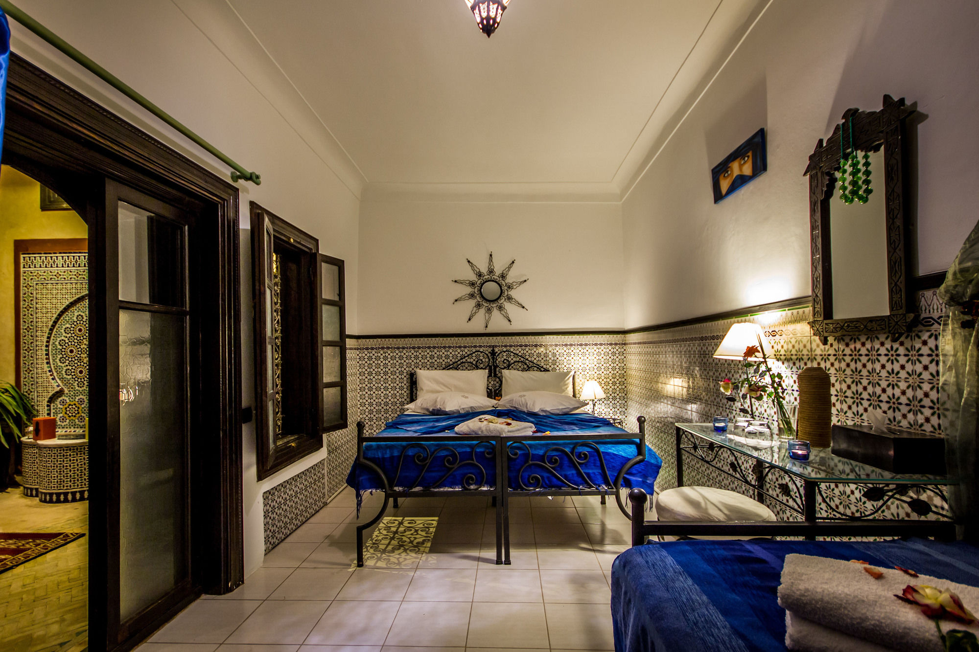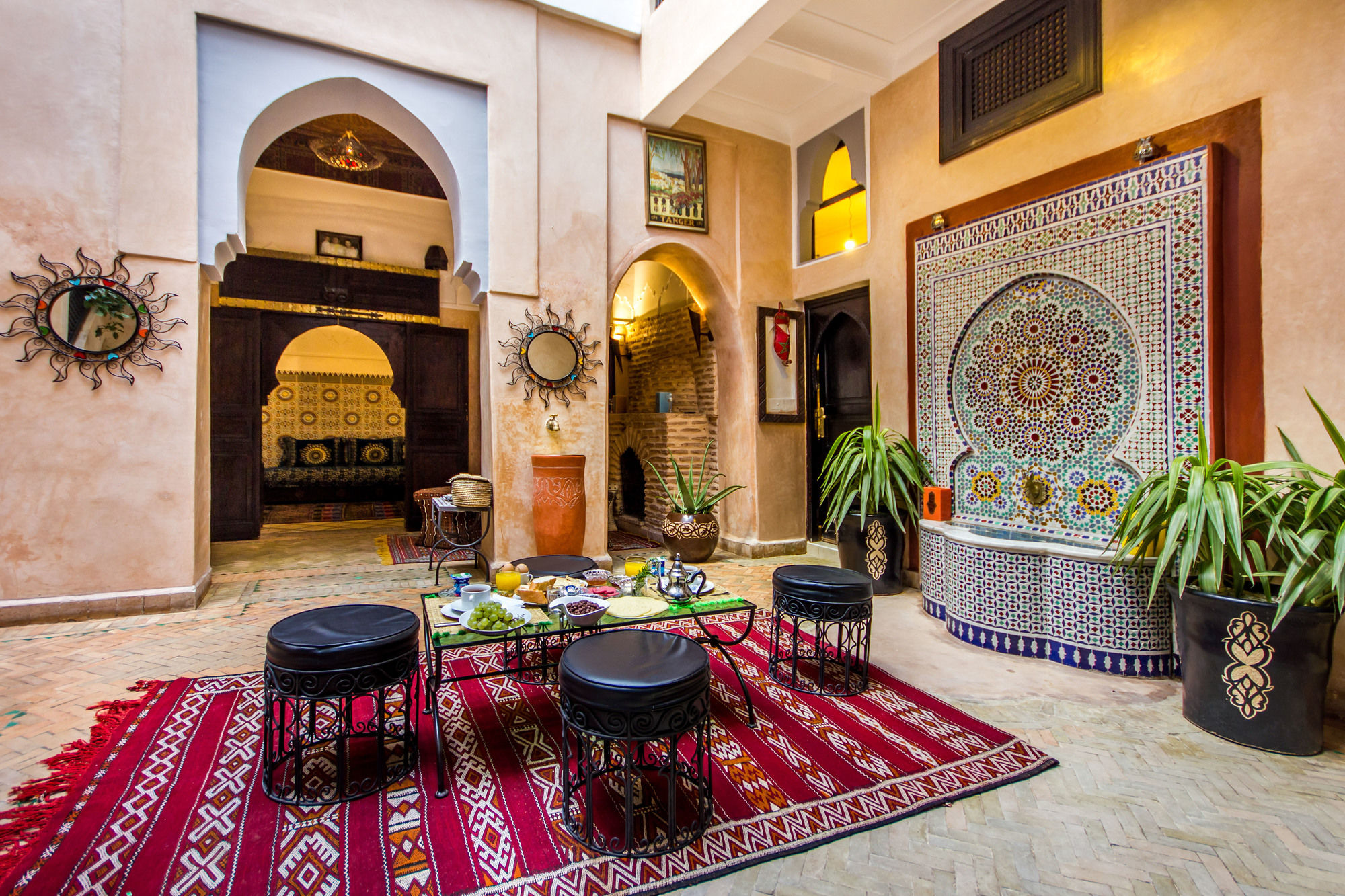 Si te alojas en Ryad Nana, en Marrakech (Medina), podrás llegar fácilmente a Palacio Dar el Bacha y a Plaza Jamaa el Fna. Este riad de ambiente romántico se encuentra cerca de Jardín botánico Majorelle y de Museo de Arte Islámico.Habitaciones Te sentirás como en tu propia casa en una de las 5 habitaciones con aire acondicionado. Mantén el contacto con los tuyos gracias a la conexión a Internet wifi gratis. El baño privado con ducha está provisto de artículos de higiene personal gratuitos y secador de pelo. Las comodidades incluyen escritorio y botella de agua gratuita, además de un servicio de limpieza disponible todos los días.Servicios Con servicios como masajes o tratamientos faciales, te sentirás como nuevo. Si quieres divertirte, aquí tienes baño turco y piscina al aire libre de temporada, entre muchas otras instalaciones. Otros servicios de este riad incluyen conexión a Internet wifi gratis, servicios de conserjería y tienda de recuerdos o quiosco.Para comer Si tienes hambre, pasa por el restaurante de este riad, que ofrece desayunos, almuerzos y cenas o utiliza el servicio de habitaciones con horario limitado.Servicios de negocios y otros Tendrás servicio de recepción 24 horas, atención multilingüe y depósito de equipaje a tu disposición. Pagando un pequeño suplemento podrás aprovechar prestaciones como servicio de transporte al aeropuerto (ida y vuelta) a petición y servicio de traslado desde la estación de trenes.