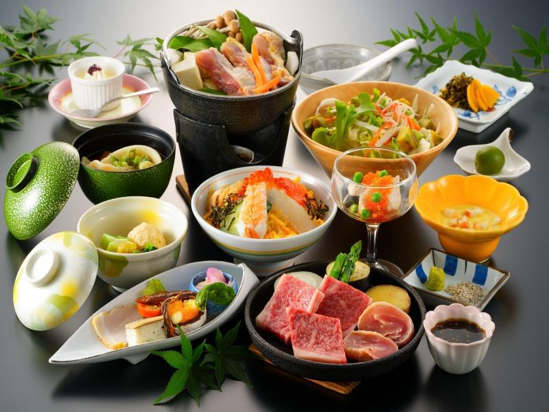 部屋に温泉が付いてましたが、土曜に2人で泊まり、1人27000円は、高い。部屋は一階は八畳間で窓無し。二階は寝室で六畳間で窓空屋根しか見えない。宿の玄関から部屋迄の間も窓無しで暗い。夕食の最後に出た炊き込みご飯の様なおにぎりも冷凍を温めたものの感じ。朝ご飯は、さすがに炊き立てのご飯でしたが、冷たいおかずが殆どでした。