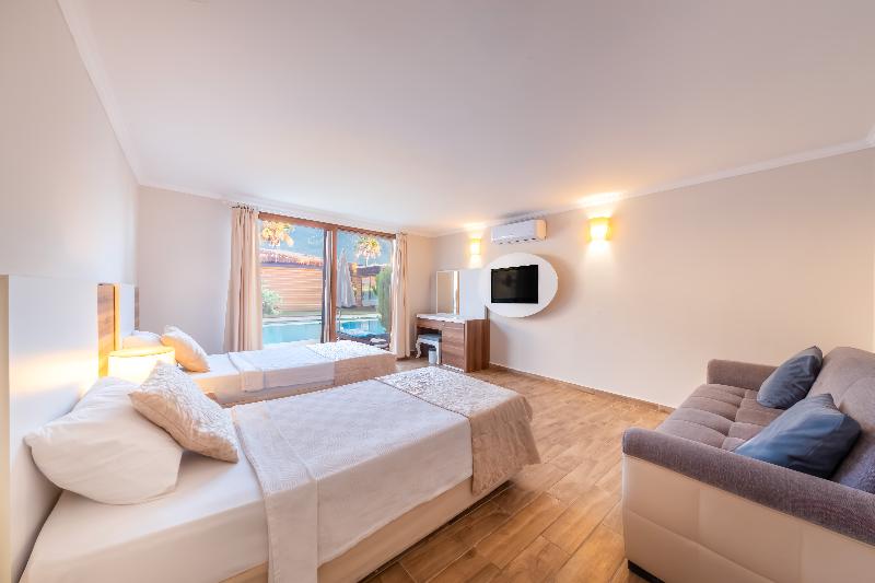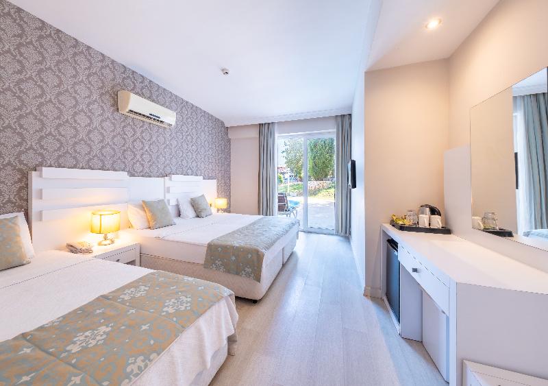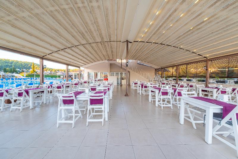 Ideal tanto para parejas como para familias, este extenso complejo consta de modernos bloques de habitaciones de 3 plantas y bungalows de una sola planta con techo de paja. En una ubicación idílica en las afueras del pequeño pueblo de Ovacik, a unos 8 km de la ciudad mercado de Fethiye, está rodeado de colinas cubiertas de pinos y tiene vistas a la montaña Babadag. Con una amplia gama de instalaciones, ofrece un ambiente relajado con animación organizada para quienes la deseen y lugares tranquilos que incluyen un centro de spa y una selección de piscinas al aire libre. El pueblo de Ovacik está a aproximadamente 1 km y el concurrido complejo turístico de Hisaronu, con una gran variedad de tiendas y una animada vida nocturna, a 2 km.