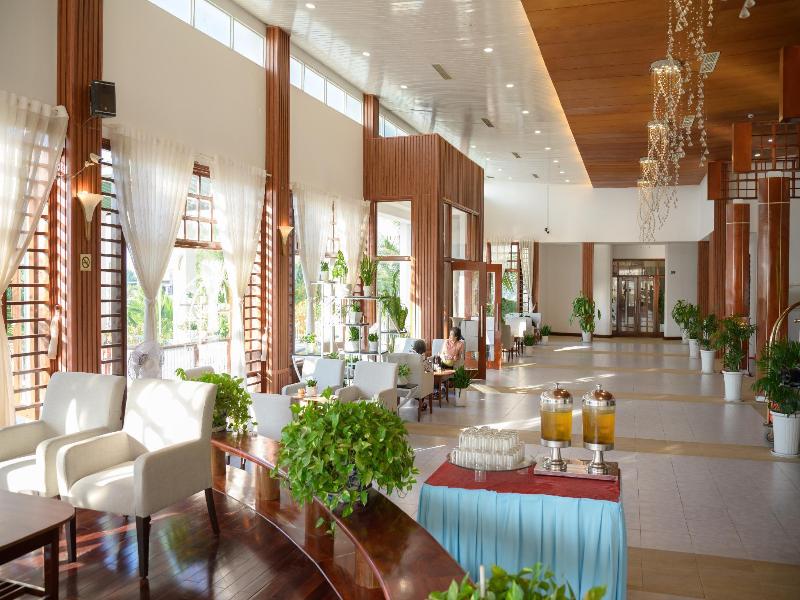 Ubicado en Ninh Hải, el Saigon Ninh Chu Hotel & Resort se encuentra junto al mar, a 2 minutos en coche de la Zona Turística de Ninh Chữ y a 9 minutos del Parque Marino de Bình Sơn. Este resort de 4 estrellas está a 34, 6 km de la Bahía de Cam Ranh y a 7 km del Parque Nacional Núi Chúa. Disfrute de una gran variedad de instalaciones recreativas, como una piscina al aire libre, una pista de tenis al aire libre y un gimnasio. Este resort también ofrece conexión inalámbrica a internet gratuita, servicios de conserjería y organización de bodas. Tendrás a tu disposición un centro de negocios, servicio de limusina o coche con chófer y servicio de tintorería/lavandería. Por un suplemento, los huéspedes pueden utilizar el servicio de traslado al aeropuerto (ida y vuelta) (disponible bajo petición) y el servicio de recogida en la estación de tren. Disfrute de una comida en el restaurante Nhà Hàng Nhà Mát, uno de los 2 restaurantes del resort, o quédese en su habitación y aproveche el servicio de habitaciones las 24 horas. También se ofrecen aperitivos en la cafetería. ¿Necesita relajarse? Tómese un descanso con una bebida refrescante en el bar o lounge, el chiringuito o el bar junto a la piscina. Todos los días se sirve un desayuno buffet gratuito de 6:00 a 9:30. Siéntase como en casa en una de las 114 habitaciones con aire acondicionado y televisor LCD. La conexión inalámbrica a internet gratuita te mantendrá conectado, y la programación por satélite está disponible para su entretenimiento. Los baños cuentan con bañera o ducha, artículos de tocador gratuitos y secador de pelo. Las comodidades incluyen teléfono, caja fuerte y escritorio.