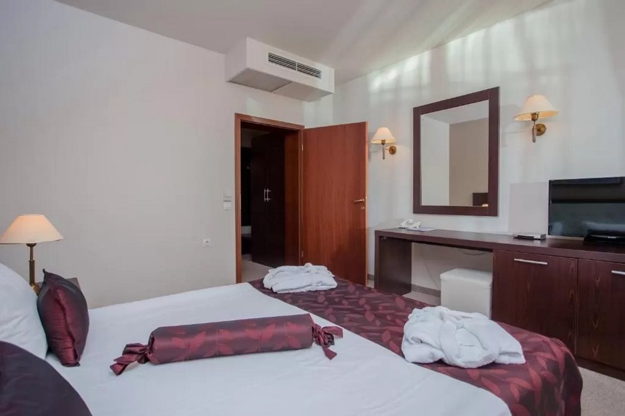 Las instalaciones y servicios incluyen restaurantes, bares, piscinas, piscina infantil, tratamientos de spa (cargo extra), gimnasio, centro de negocios, salas de reuniones, parque infantil, acceso a Internet inalámbrico, aparcamiento y recepción las 24 horas.Las habitaciones de 5 estrellas cuentan con TV, aire acondicionado, acceso a Internet inalámbrico, caja de seguridad (cargo extra), baño y balcón / terraza.Los apartamentos de 3 estrellas también cuentan con cocina y sala de estar independiente.Light All Inclusive (solo en el restaurante principal) incluye:- Desayuno- Almuerzo.- Coffee break (de 15:00 h a 17:00 h): café, té, galletas, cerveza de barril, vino de barril y refrescos.-Cena.El light All Inclusive también incluye cerveza de barril, vino de barril y refrescos durante el almuerzo y la cena.El desayuno, el almuerzo y la cena son en horario fijo.Tenga en cuenta que algunas de las instalaciones mencionadas pueden estar cerradas debido a las condiciones climáticas o estacionales.Dirección: Arkutino, 8130 Sozopol, Bulgaria.
