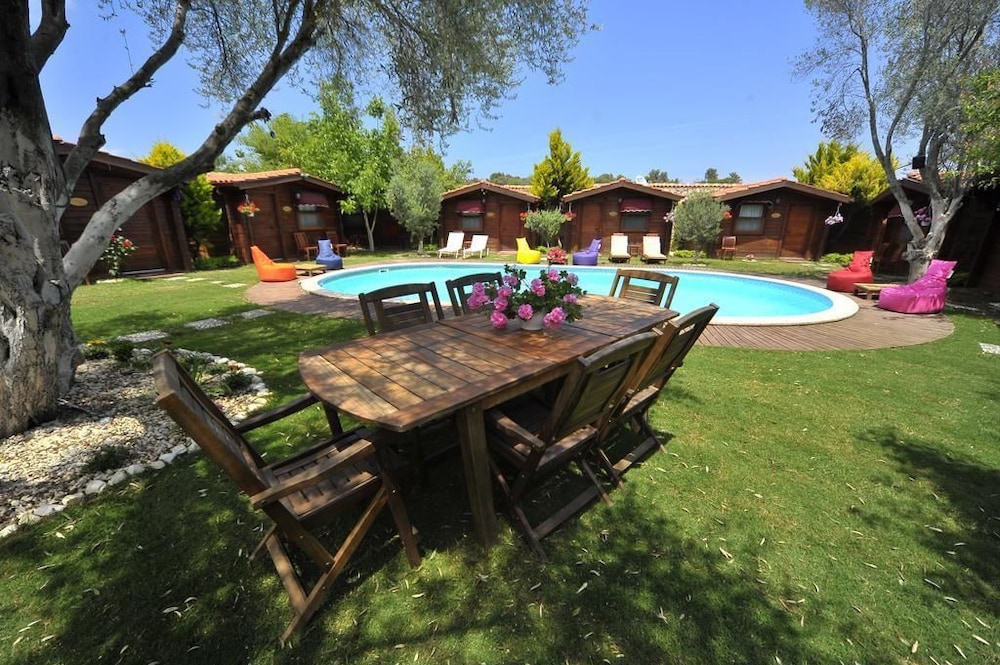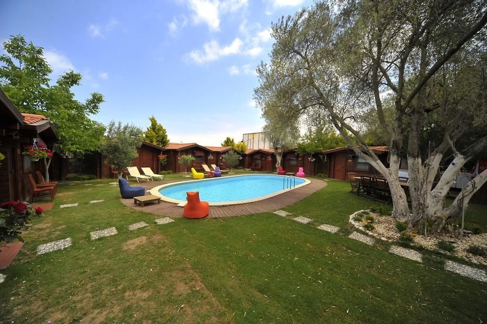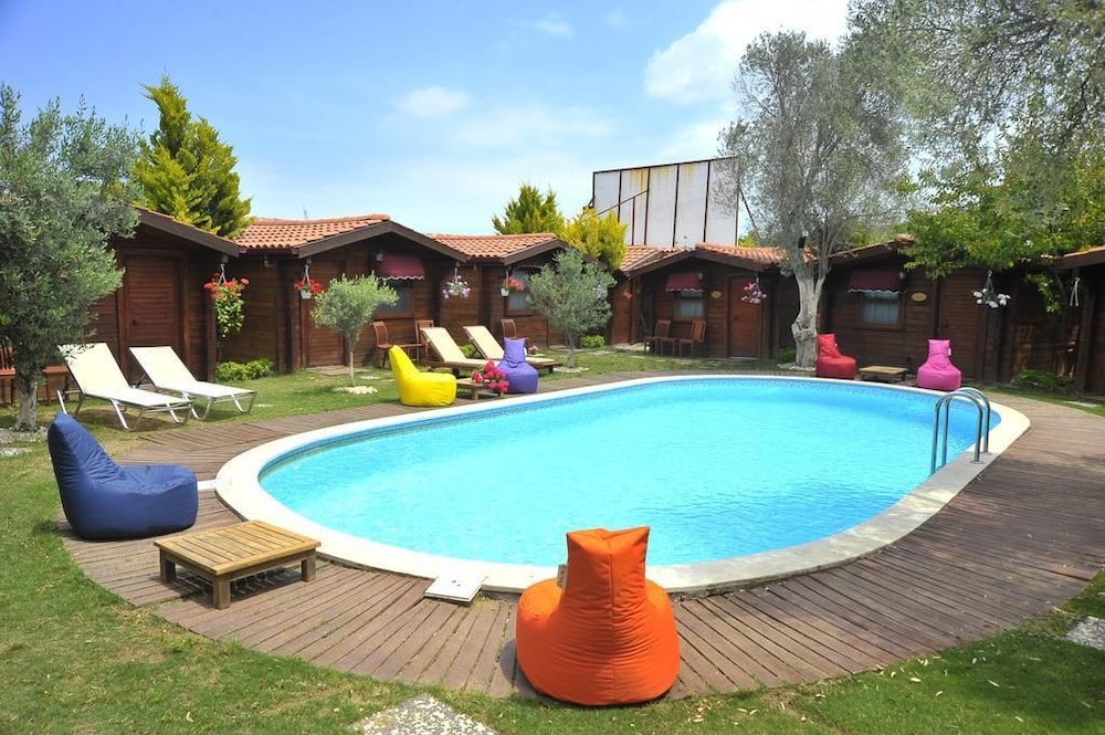 En Çesme (Alacati), Sakizlar Park Bungalows te permite llegar cómodamente a Mezquita de Pazaryeri y Alacati Marina. Este hotel se encuentra cerca de Playa Alacati y de Playa de Ilica.Habitaciones Disfruta de una agradable estancia en una de las 9 habitaciones con televisor LCD. Las habitaciones disponen de patio. La conexión a Internet wifi gratis te mantendrá en contacto con los tuyos; también podrás ver tu programa favorito en el televisor con canales por satélite. El baño privado con ducha está provisto de artículos de higiene personal gratuitos y secador de pelo.Servicios Con piscina al aire libre y muchas otras instalaciones recreativas a tu disposición, no te quedará ni un minuto libre. Tienes también jardín donde sentarte a contemplar el paisaje. Se ofrece además conexión a Internet wifi gratis y servicios de conserjería.Para comer Si tienes hambre, pasa por el restaurante de este hotel, que ofrece desayunos, almuerzos y cenas o utiliza el servicio de habitaciones las 24 horas. Apaga la sed con tu bebida favorita en el bar o lounge.Servicios de negocios y otros Tendrás servicio de recepción 24 horas, caja fuerte en recepción y café en las zonas comunes a tu disposición. Pagando un pequeño suplemento podrás aprovechar prestaciones como servicio de transporte al aeropuerto (ida y vuelta) (disponible las 24 horas) y aparcamiento sin asistencia gratuito.