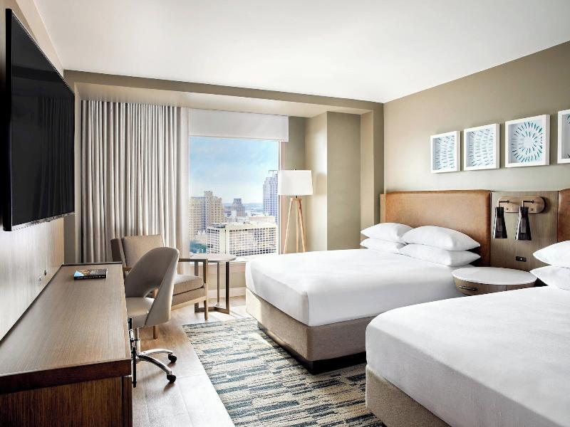 El San Antonio Marriott Rivercenter on the River Walk goza de una ubicación céntrica en San Antonio, a 4 minutos a pie del Henry B. González Convention Center y a 7 minutos a pie del Álamo. Este hotel de primer nivel se encuentra a 1, 6 km del Alamodome y a 1, 8 km del Hemisfair Park. Disfruta de una gran variedad de instalaciones recreativas, que incluyen una piscina al aire libre, una piscina cubierta y un gimnasio abierto las 24 horas. Se ofrece además conexión a internet wifi gratis, servicios de conserjería y tiendas de regalos o quiosco. Te sentirás como en casa en una de las 1001 habitaciones con aire acondicionado y Smart TV. Descansa plácidamente en una cama con pillowtop y ropa de cama de alta calidad. Disfruta de la programación por cable y del acceso a internet por cable y wifi de pago. El baño privado con bañera o ducha está provisto de artículos de tocador gratuitos y secadores de pelo. Pásate por Tributary para almorzar, un restaurante especializado en cocina mexicana. También tienes una cafetería a tu disposición, y el servicio de habitaciones con horario limitado. Disfruta de tu bebida favorita en el bar o lounge. Todos los días se sirve desayuno a la carta de 6:00 a 11:00, con cargo. Tendrás a tu disposición un centro de negocios, check-in exprés y check-out exprés. ¿Estás planificando un evento en San Antonio? Este hotel pone a tu disposición 6363 metros cuadrados de espacio para eventos, entre los que se incluyen zona para conferencias y 42 salas de reuniones. Hay un aparcamiento sin asistencia (de pago) en las instalaciones.
