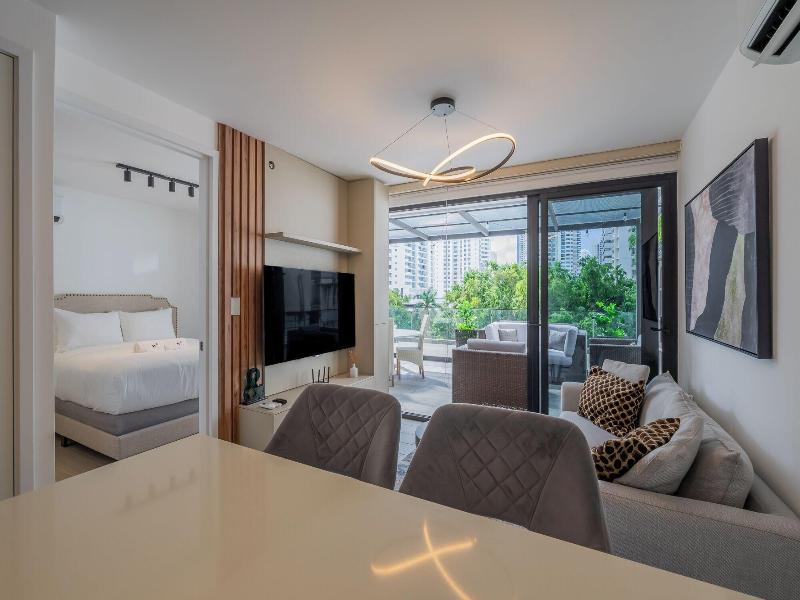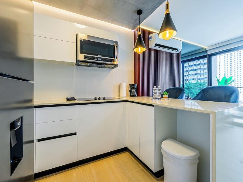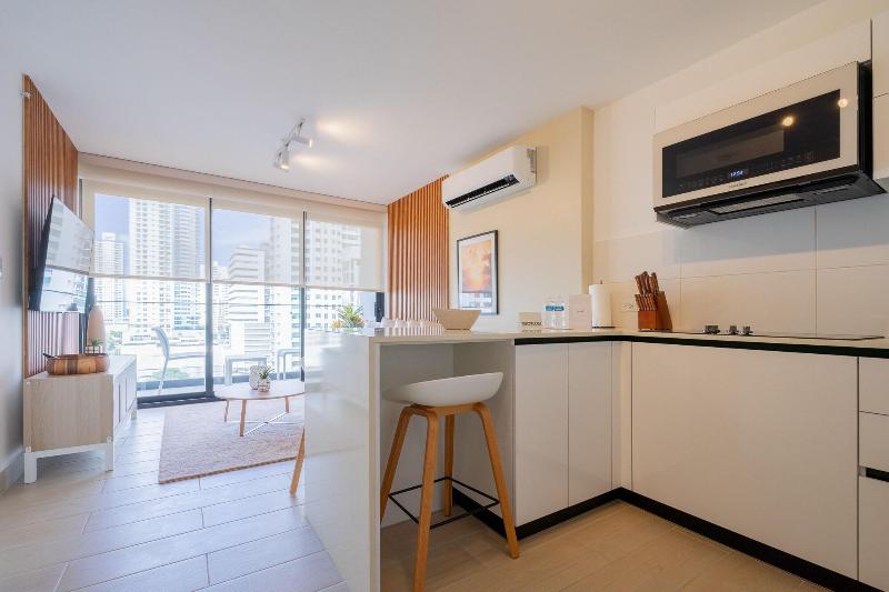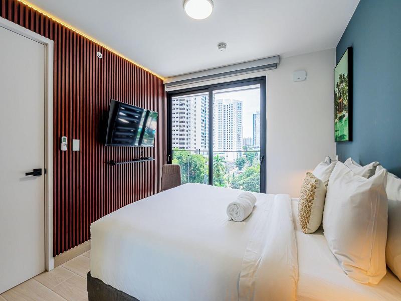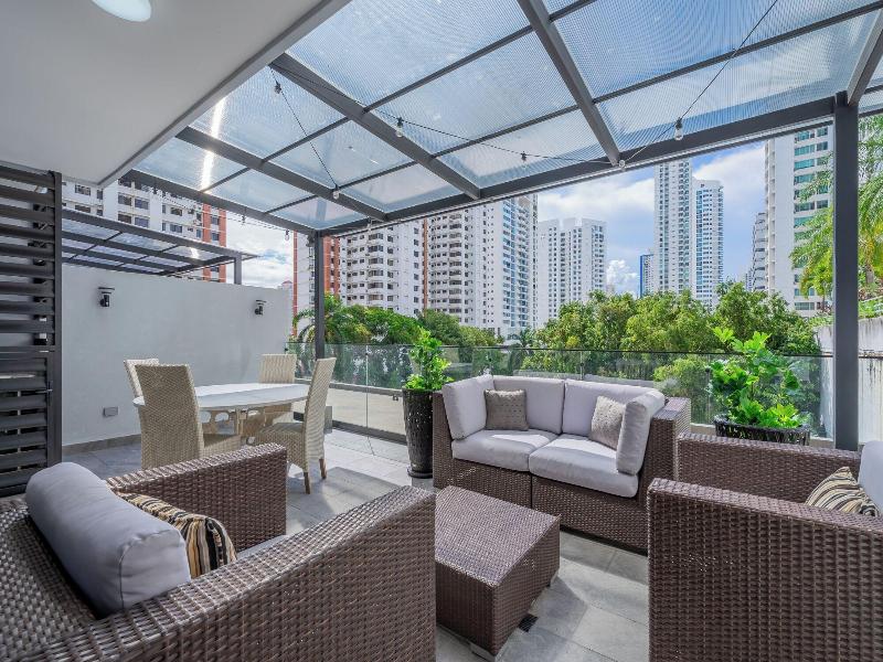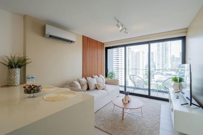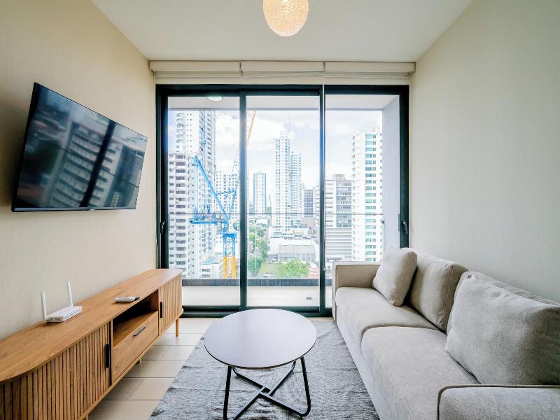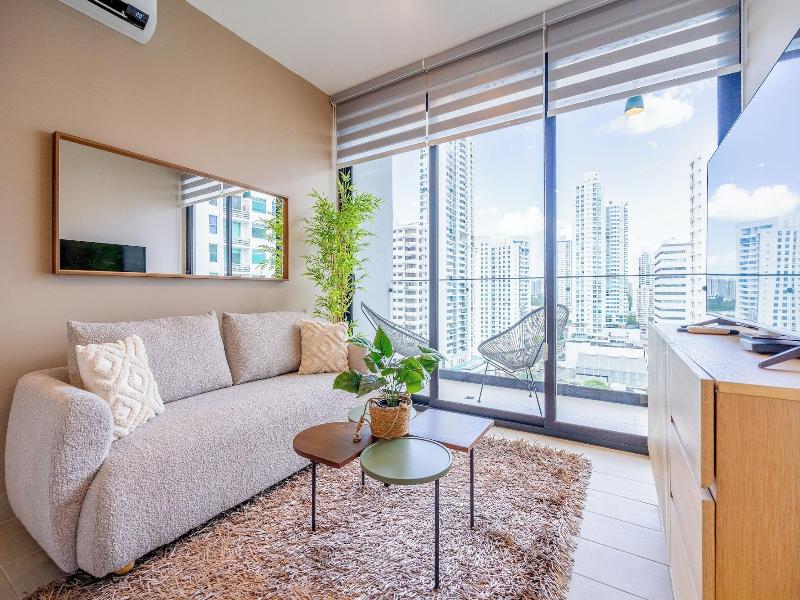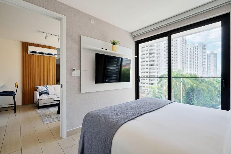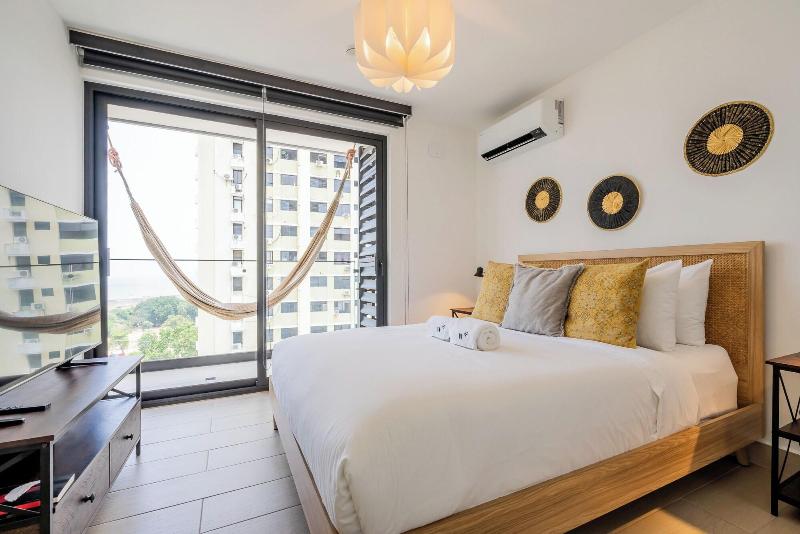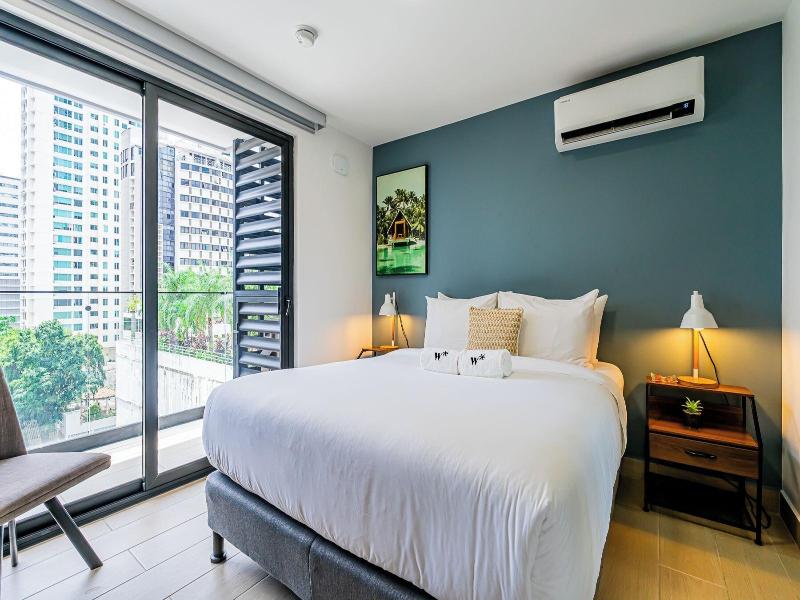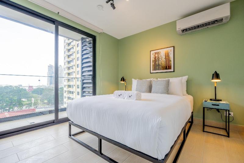 Disfruta de una estancia fabulosa en una de las 13 habitaciones con decoraciones diferentes, todas equipadas con cocina con frigorífico y microondas. Descansa como nunca en una cama con edredón de plumas y ropa de cama de alta calidad. Las habitaciones disponen de balcón. La conexión wifi gratis te permitirá estar al tanto de todo. Para tus momentos de ocio, tendrás una Smart TV de 40 pulgadas con canales por cable. Las distancias se expresan en números redondos. Calle 50: 0, 1 km- Parque recreativo Omar Torrijos: 0, 6 km- Centro de convenciones ATLAPA: 0, 9 km- Centro comercial Multiplaza Pacific: 1 km- Hospital Punta Pacífica: 1, 8 km- Murales del Canal de Panamá: 1, 9 km- Museo de Arte Religioso Colonial: 1, 9 km- Centro comercial Soho City Center: 2, 1 km- Bingo 90: 2, 2 km- Museo Panamá Viejo: 2, 3 km- Avenida Balboa: 2, 5 km- Santuario Nacional del Corazón de María: 2, 6 km- Complejo multipropósito Pacific Center: 2, 6 km- Multicentro Panamá: 2, 6 km- Canopy Tower: 2, 9 km.