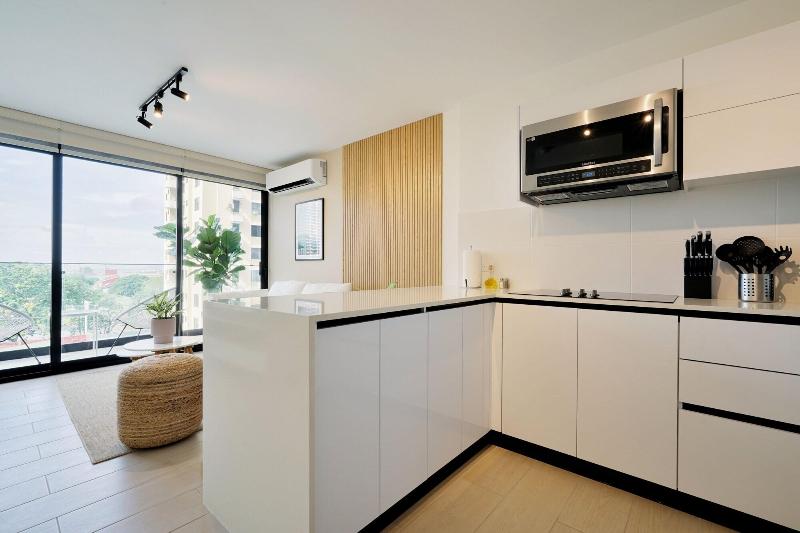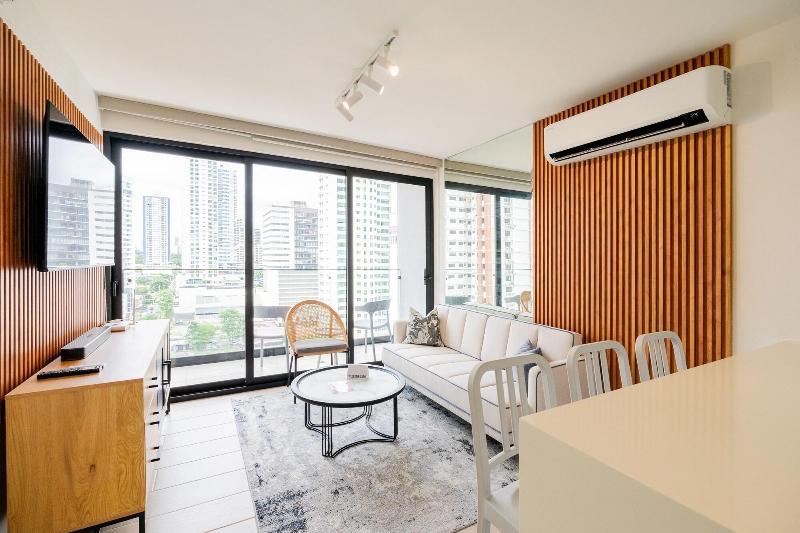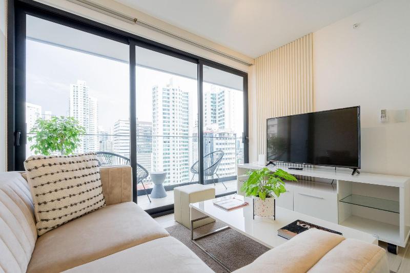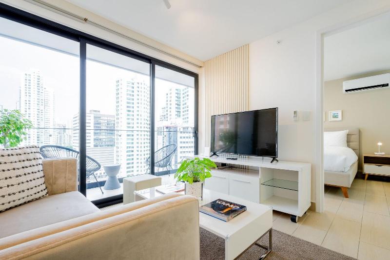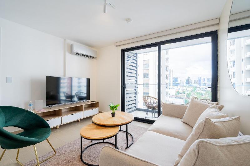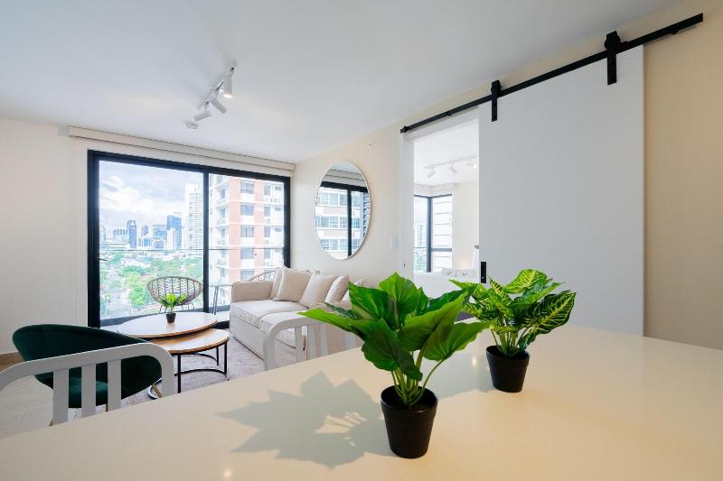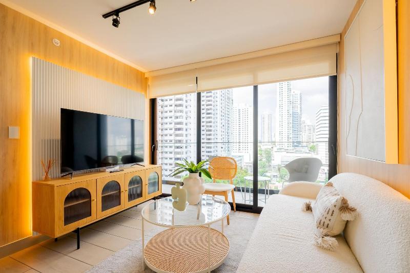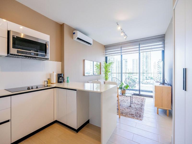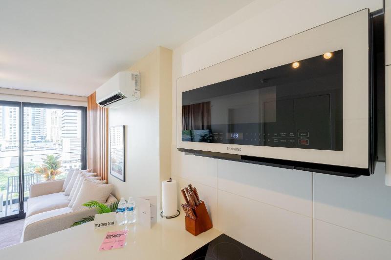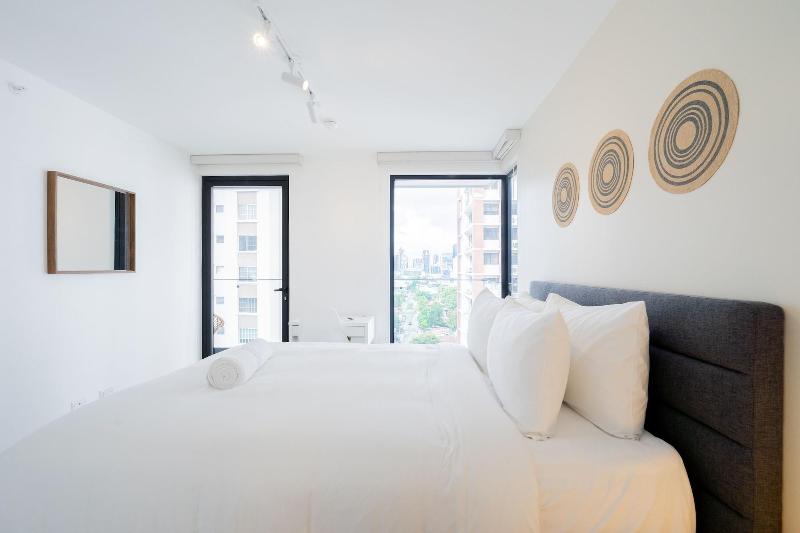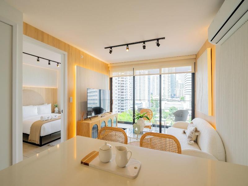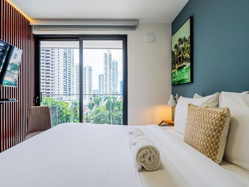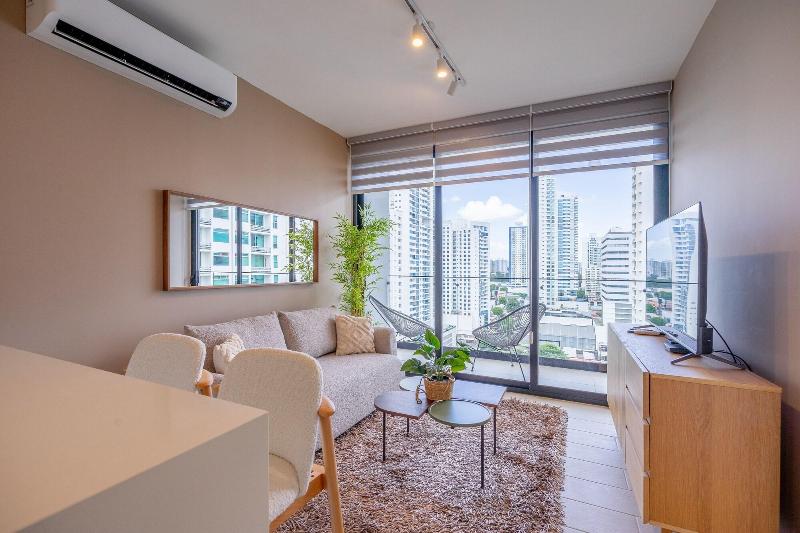 Disfruta de una estancia fabulosa en una de las 13 habitaciones con decoraciones diferentes, todas equipadas con cocina con frigorífico y microondas. Descansa como nunca en una cama con edredón de plumas y ropa de cama de alta calidad. Las habitaciones disponen de balcón. La conexión wifi gratis te permitirá estar al tanto de todo. Para tus momentos de ocio, tendrás una Smart TV de 40 pulgadas con canales por cable. Las distancias se expresan en números redondos. Calle 50: 0, 1 km- Parque recreativo Omar Torrijos: 0, 6 km- Centro de convenciones ATLAPA: 0, 9 km- Centro comercial Multiplaza Pacific: 1 km- Hospital Punta Pacífica: 1, 8 km- Murales del Canal de Panamá: 1, 9 km- Museo de Arte Religioso Colonial: 1, 9 km- Centro comercial Soho City Center: 2, 1 km- Bingo 90: 2, 2 km- Museo Panamá Viejo: 2, 3 km- Avenida Balboa: 2, 5 km- Santuario Nacional del Corazón de María: 2, 6 km- Complejo multipropósito Pacific Center: 2, 6 km- Multicentro Panamá: 2, 6 km- Canopy Tower: 2, 9 km.